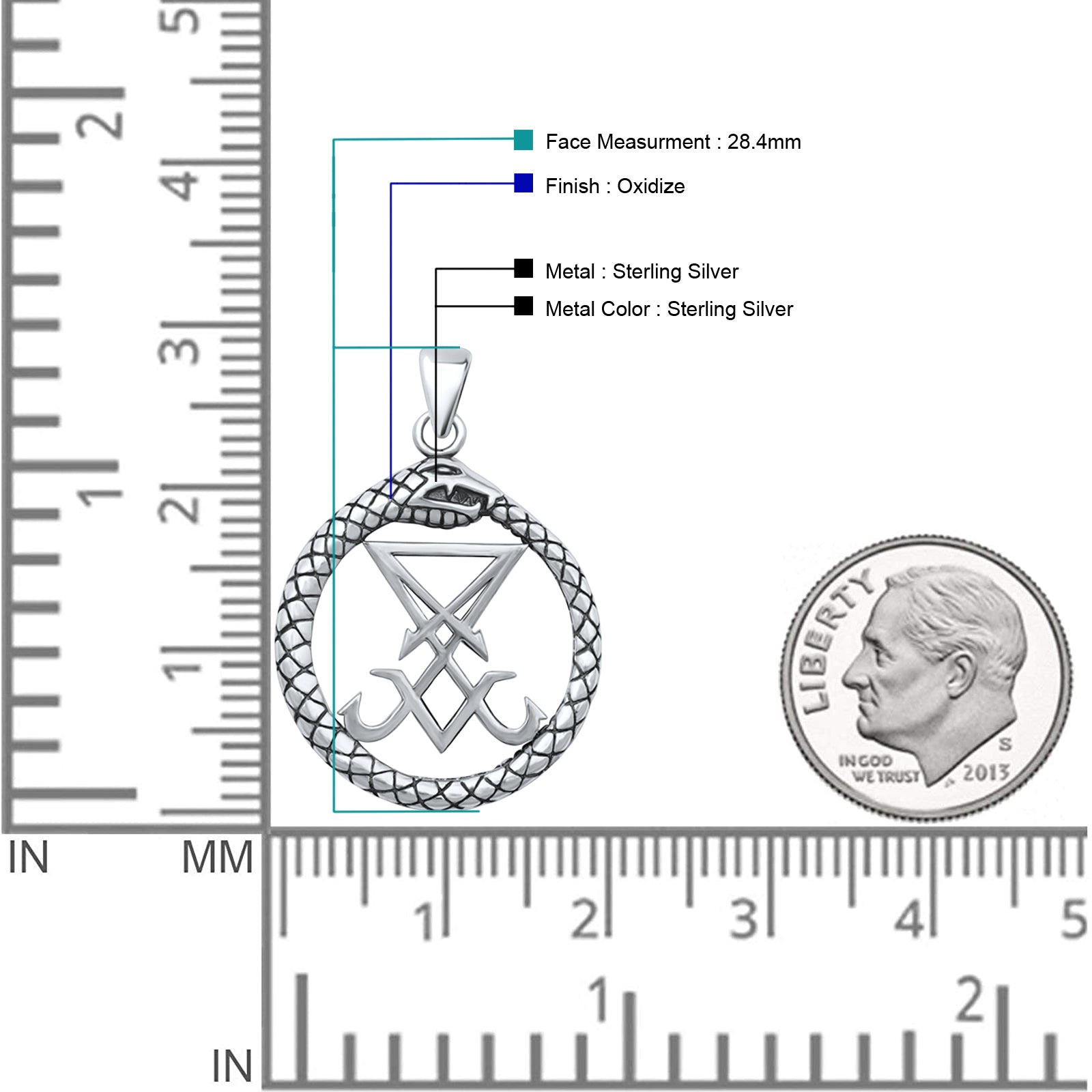 Pendant Length: 28.4mm(1.11 inch)
