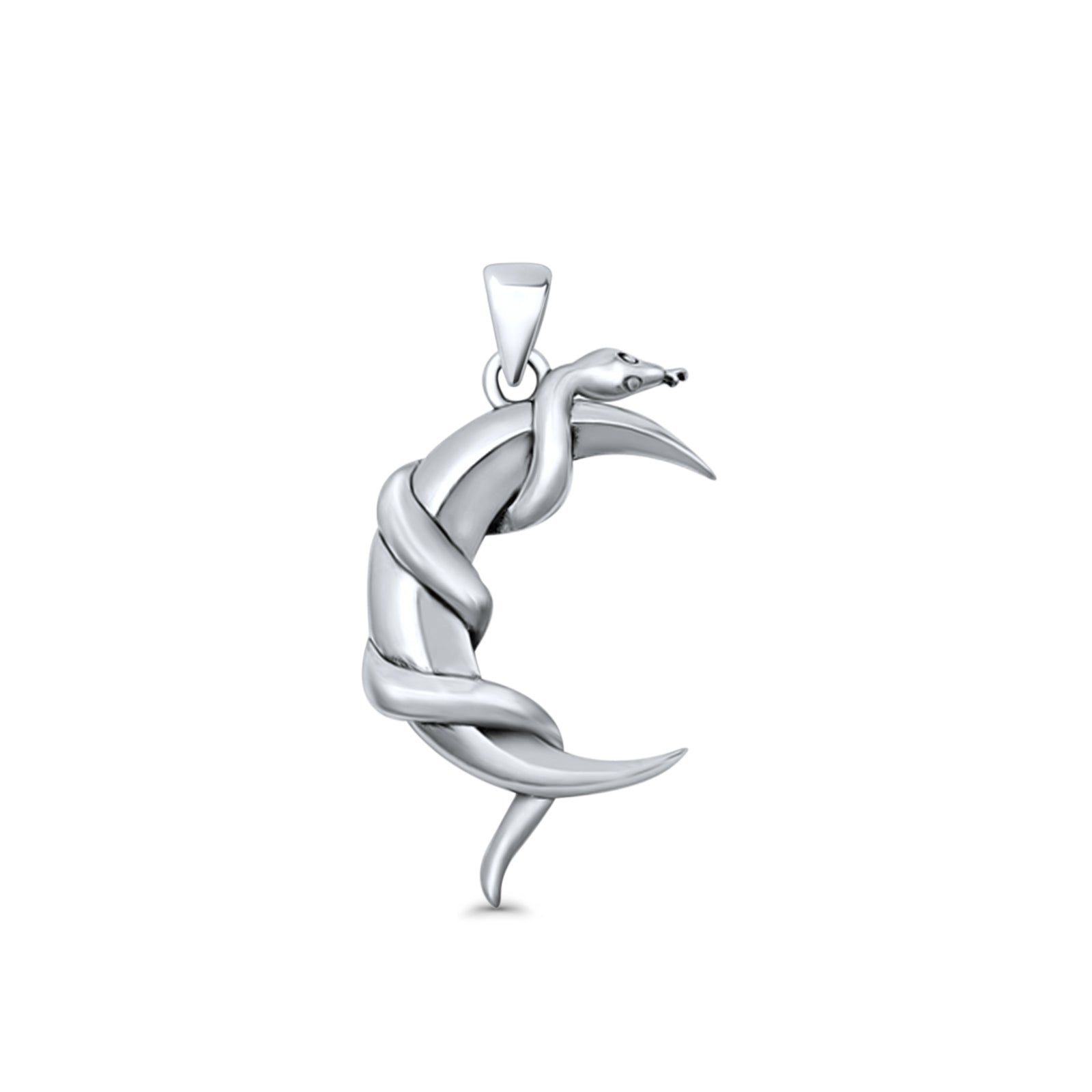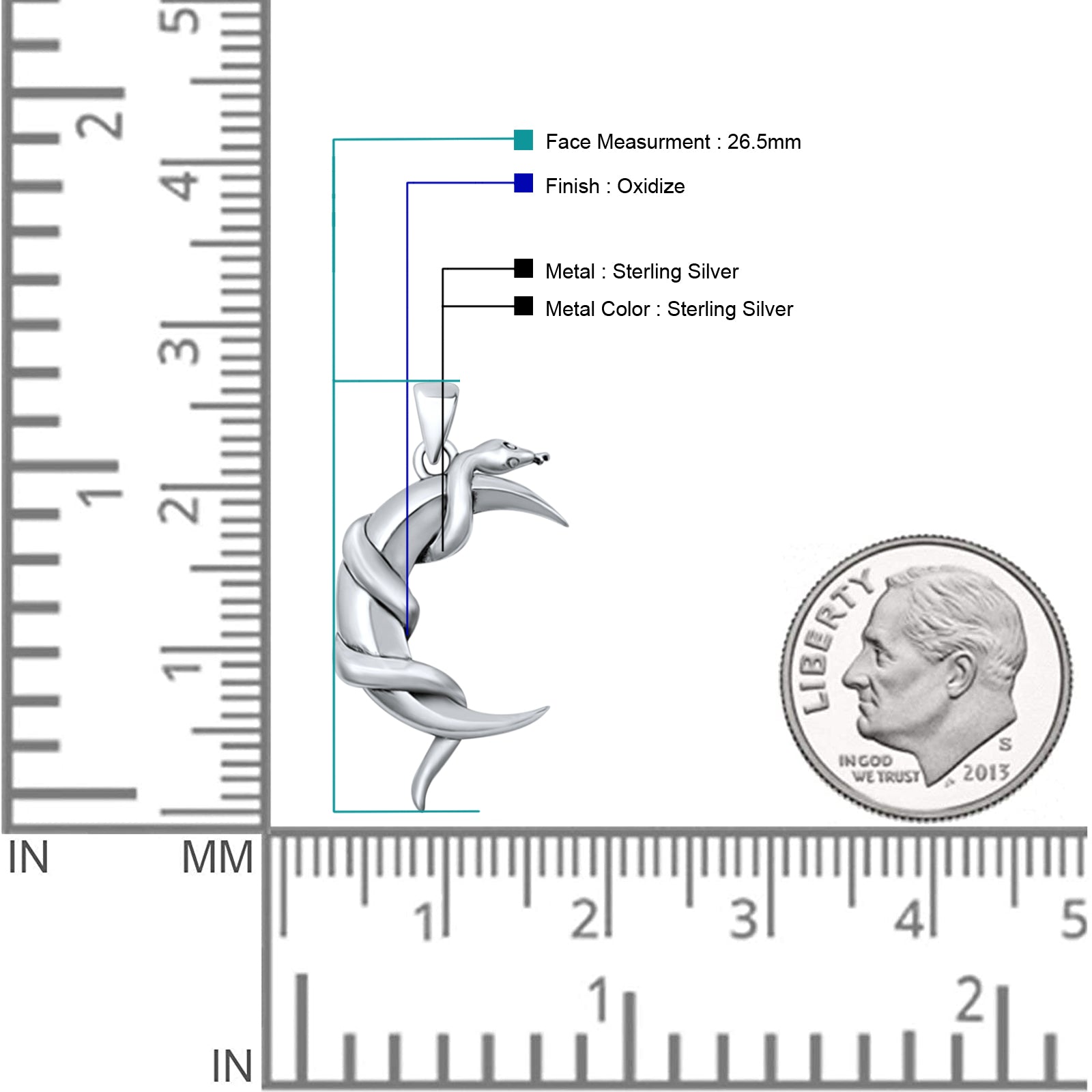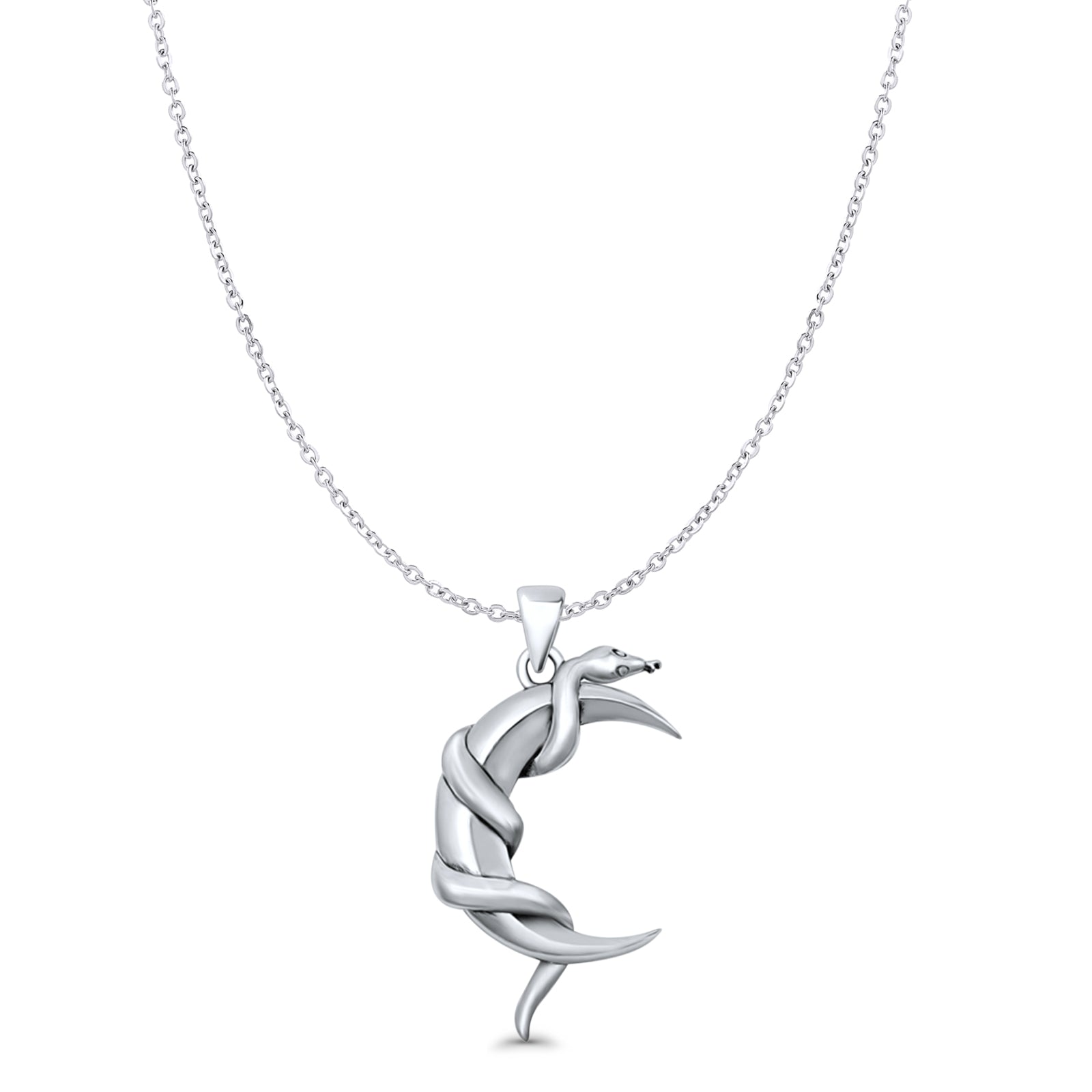 Moon & Snake Pendant Oxidized Cable Chain Necklace 925 Sterling Silver