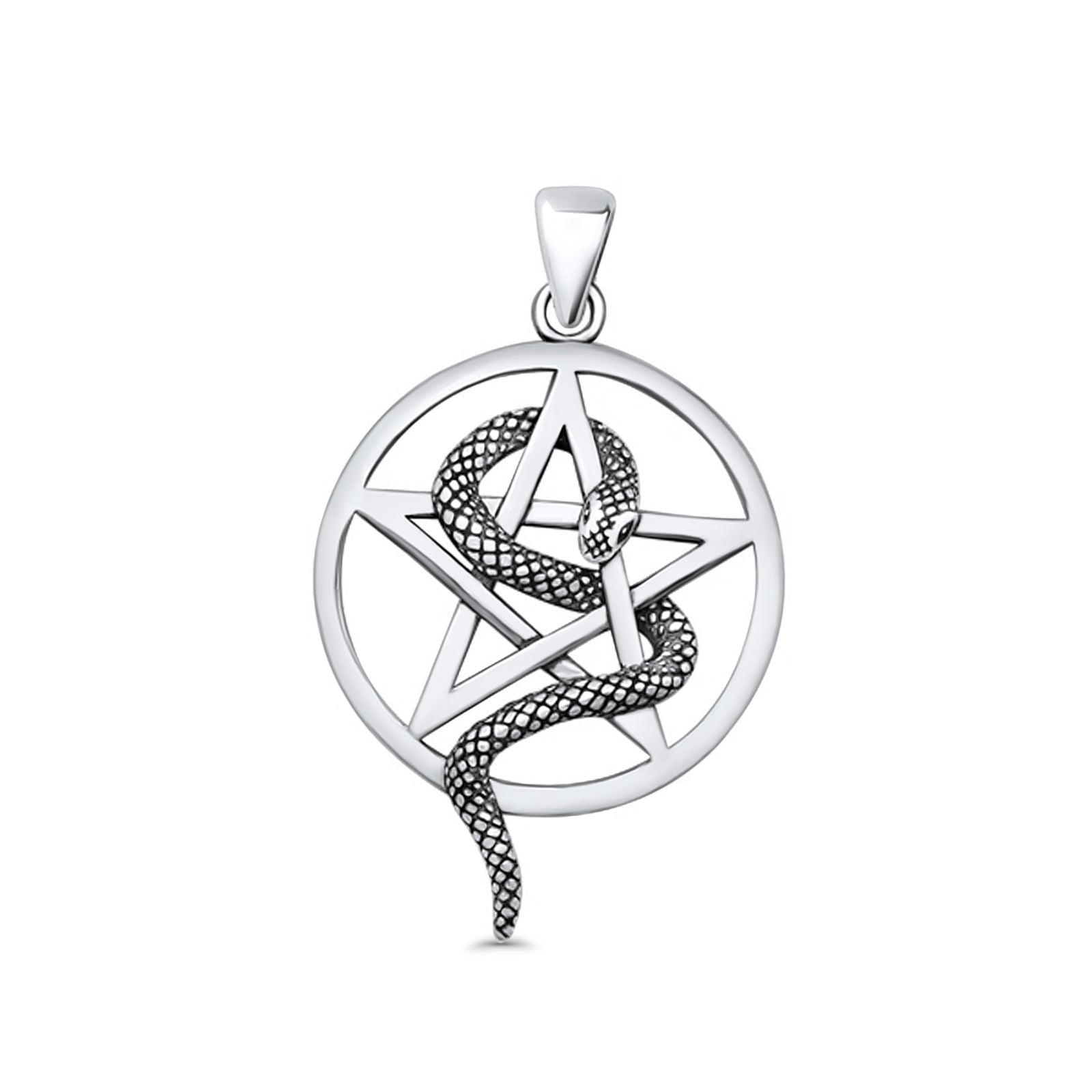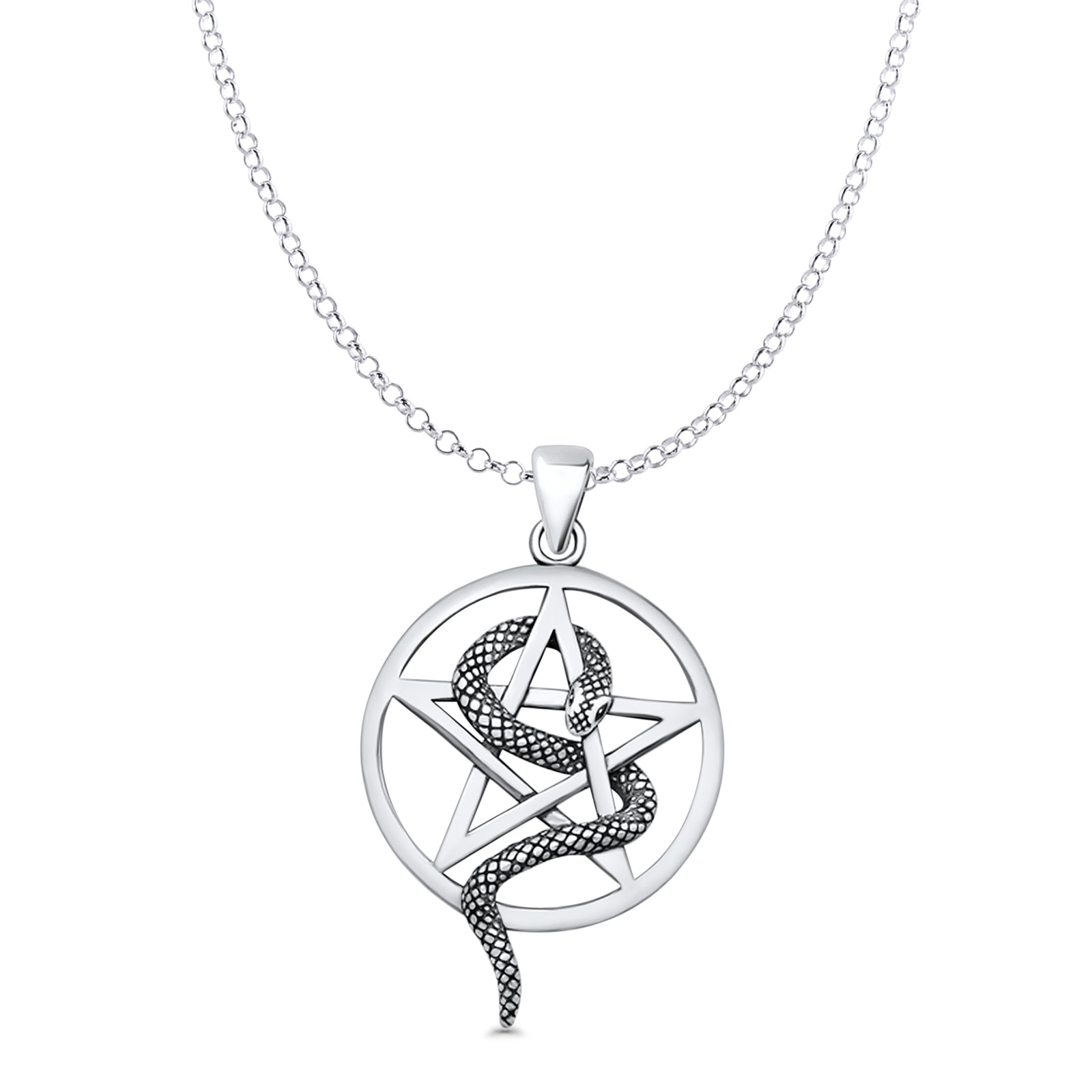 Pentagram & Snake Pendant Oxidized Rolo Chain Necklace 925 Sterling Silver