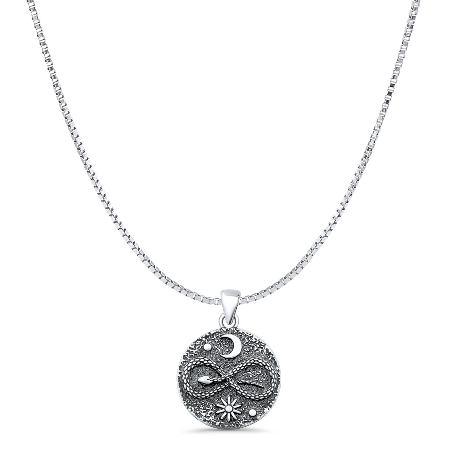 Sun, Moon & Snake Pendant Oxidized Box Chain Necklace 925 Sterling Silver
