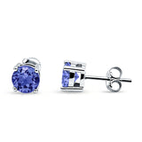 Solitaire Stud Earring Round Cubic Zirconia 925 Sterling Silver