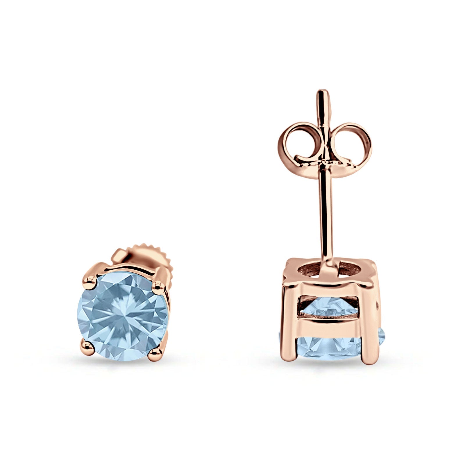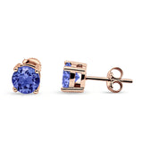 CZ & Blue Sapphire CZ Rose Tone Silver