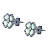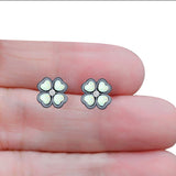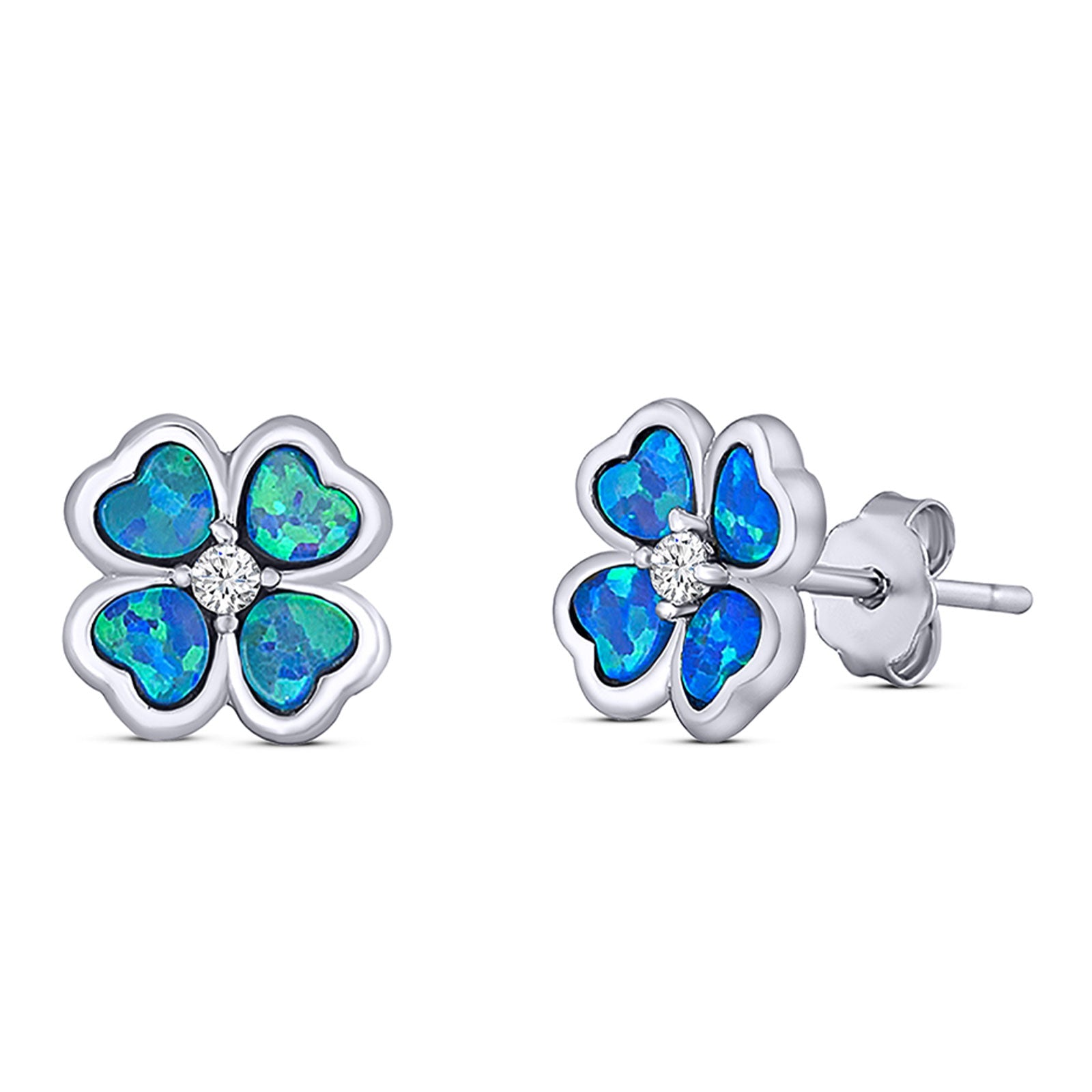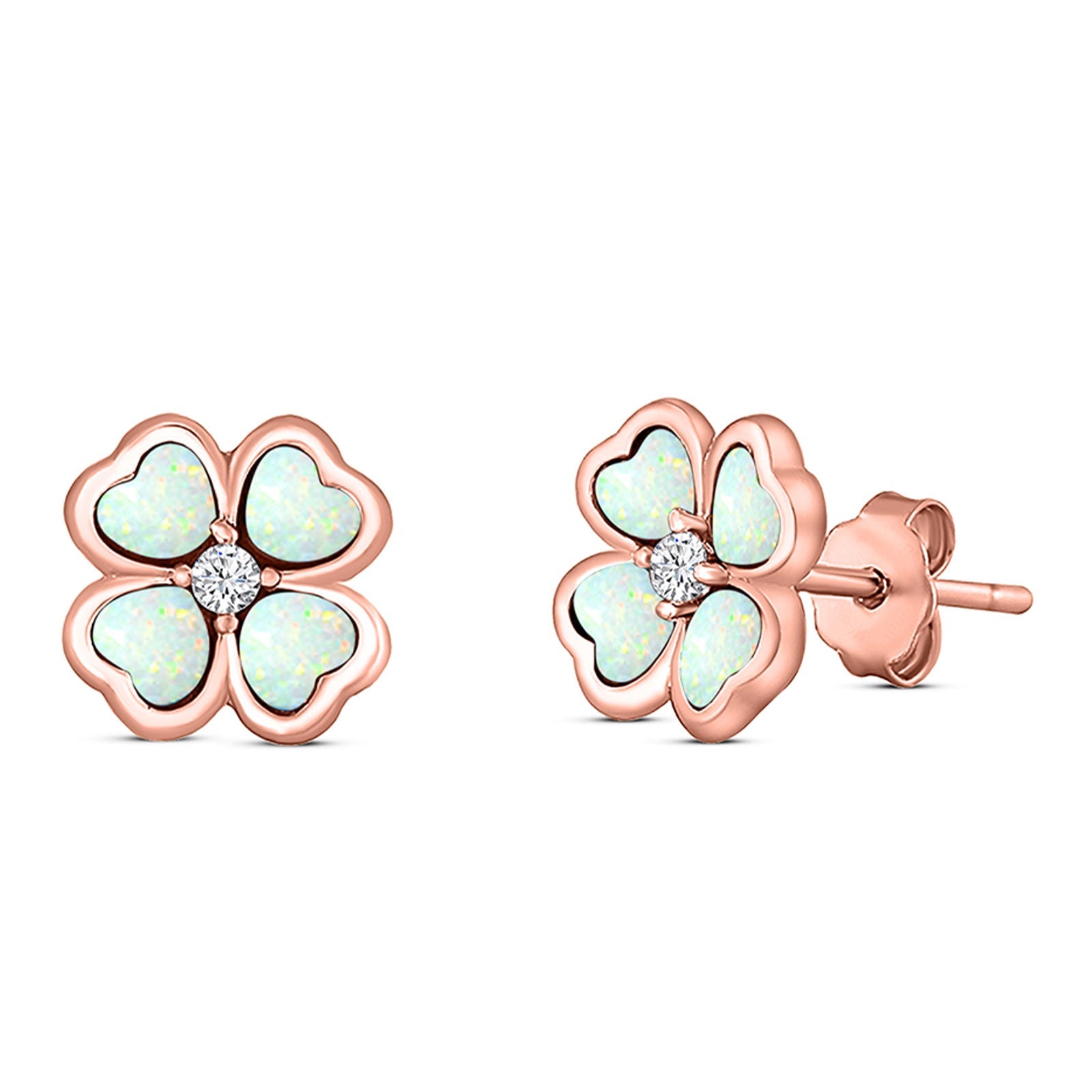 Plumeria Stud Earring Simulated Cubic Zirconia Created Opal Solid 925 Sterling Silver (9mm)