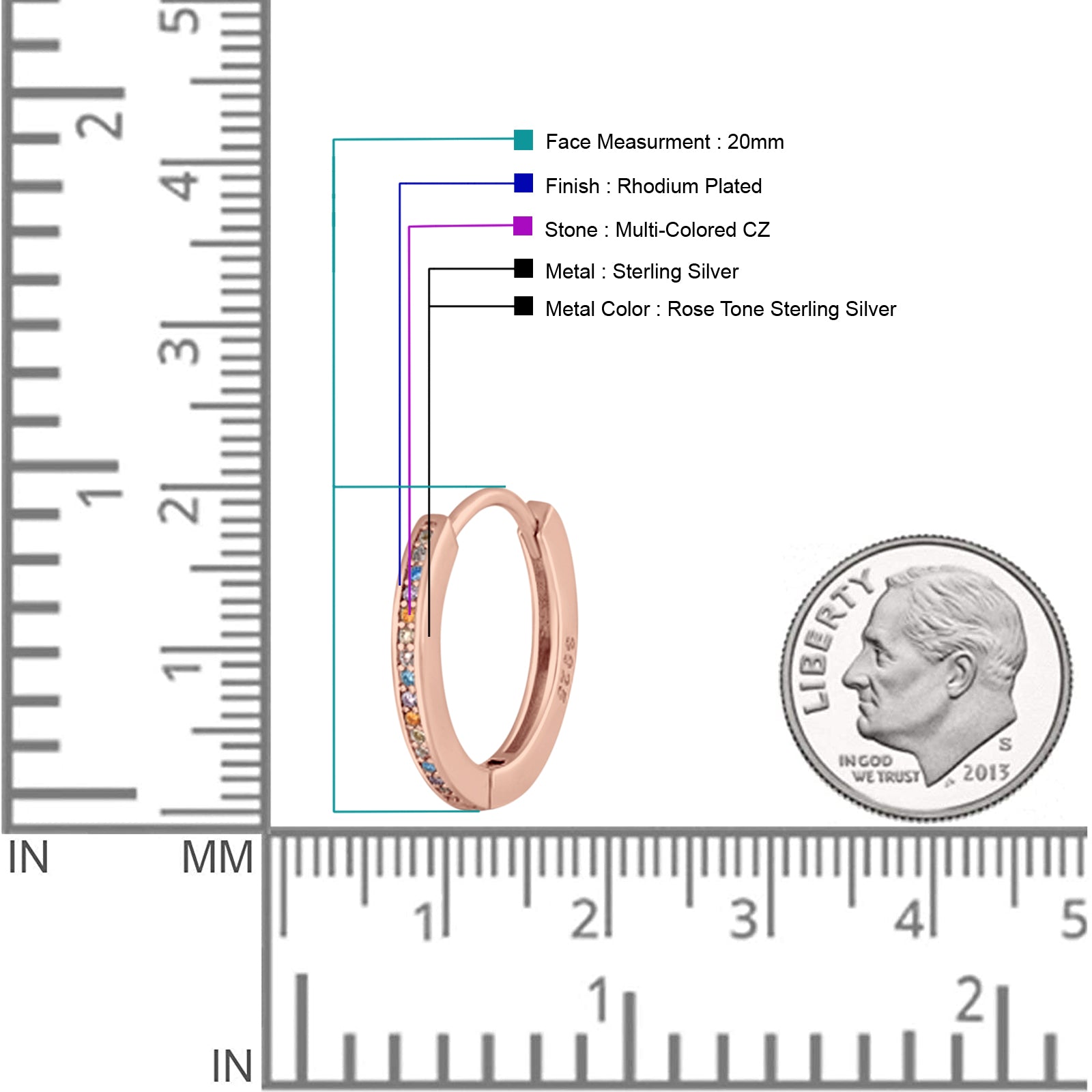 Round 20mm Multicolor Cubic Zirconia Huggie Hoop Earrings 925 Sterling Silver