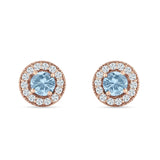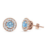 CZ & Blue Sapphire CZ Rose Tone Silver