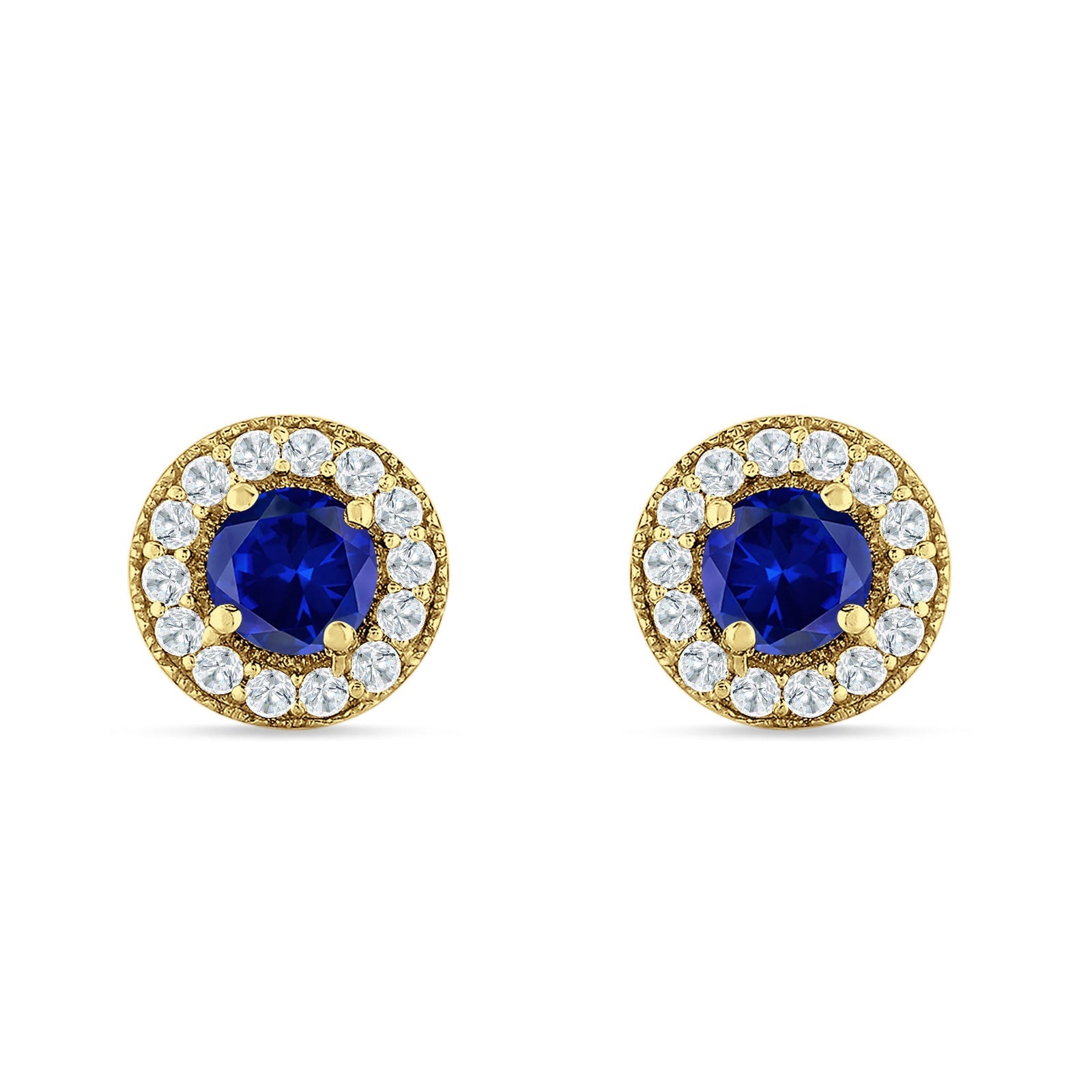 CZ & Blue Sapphire CZ Yellow Tone Silver
