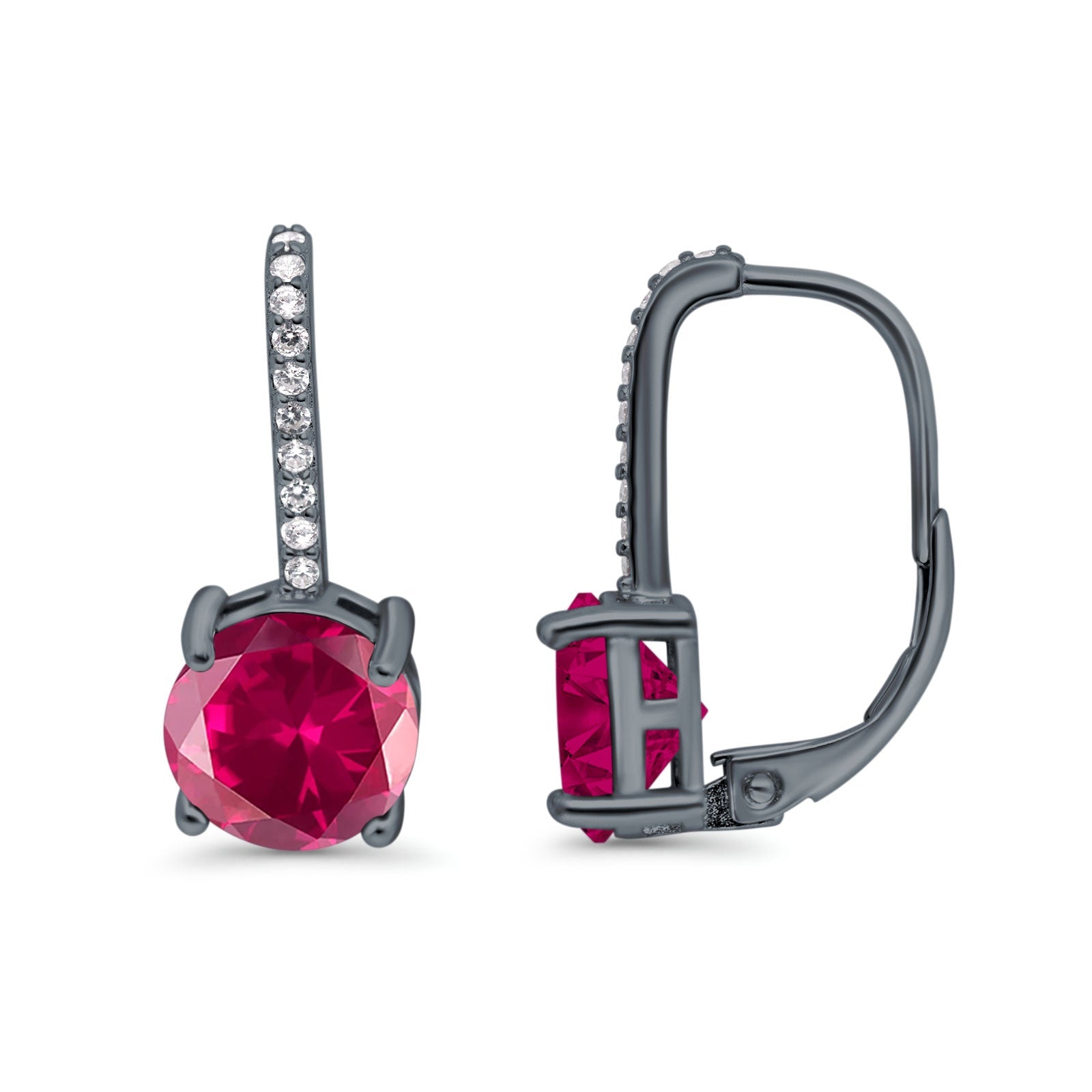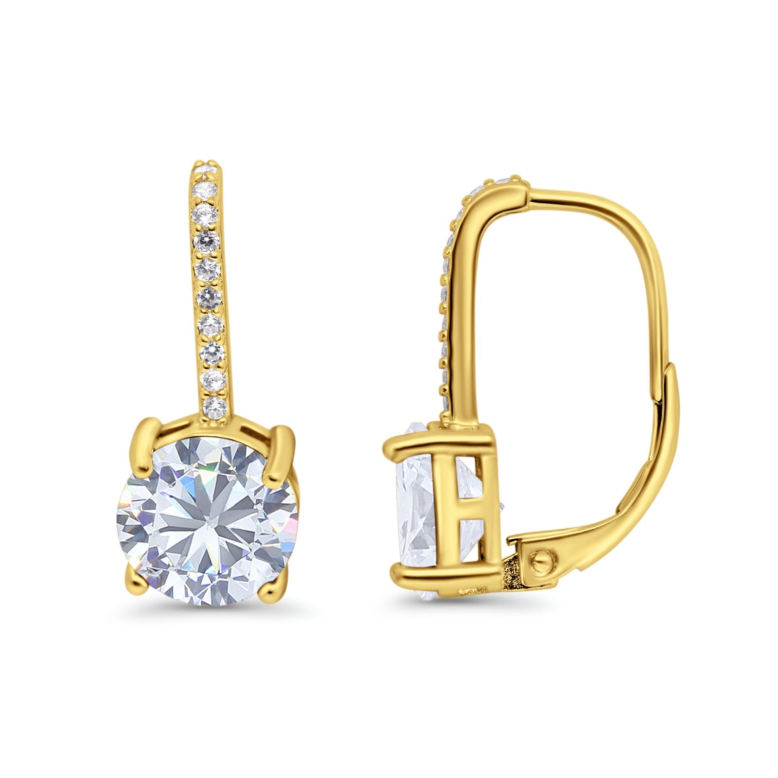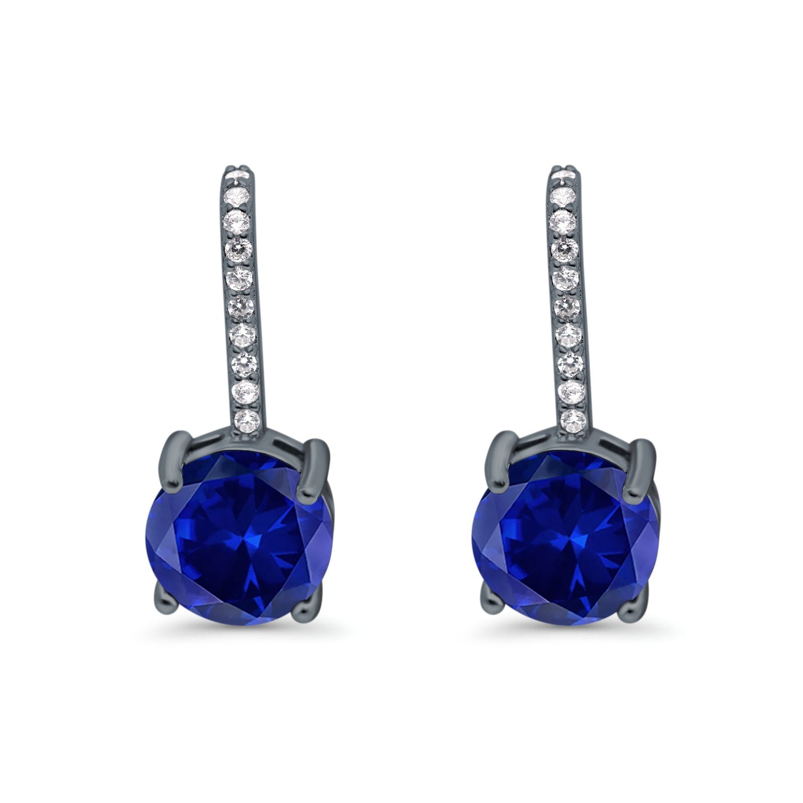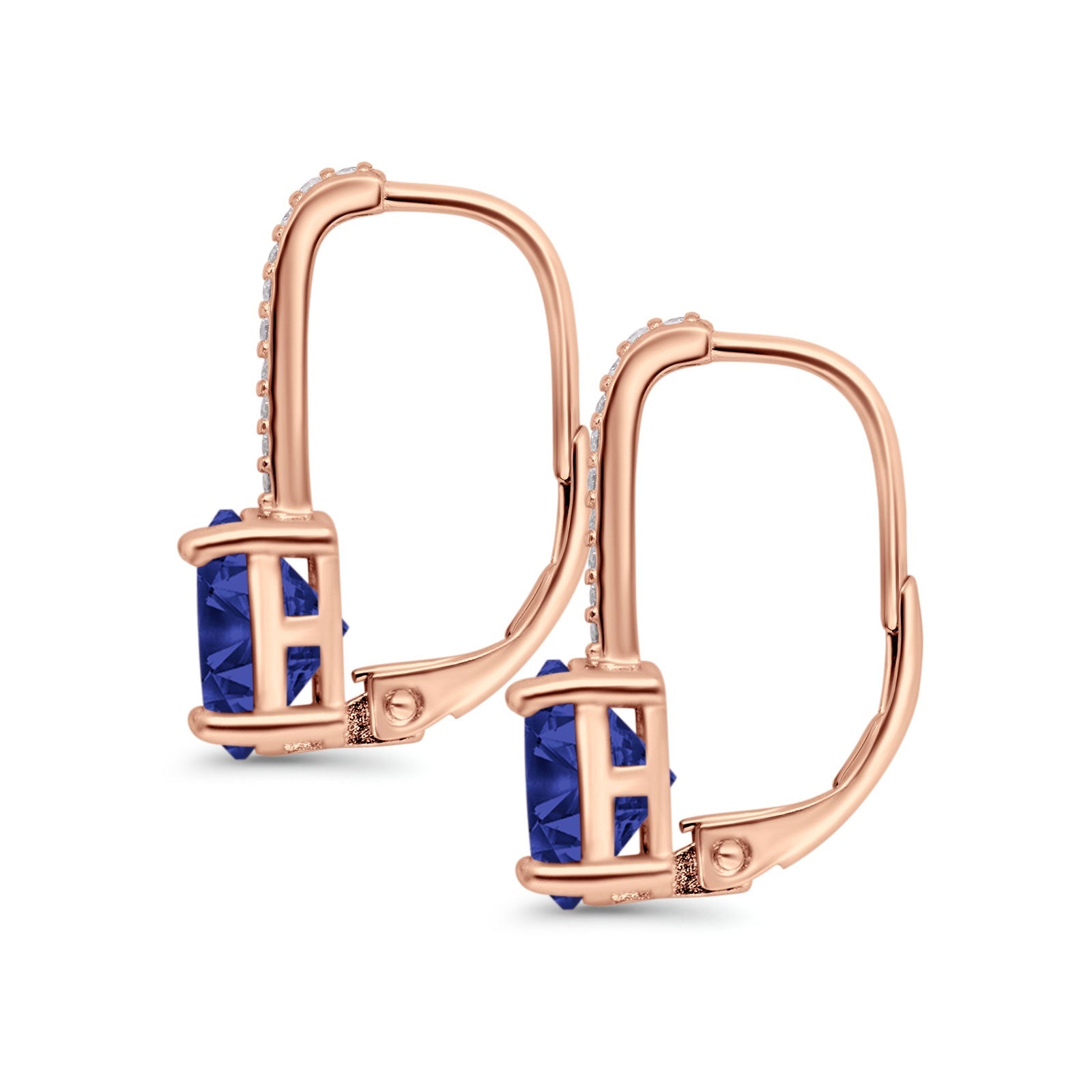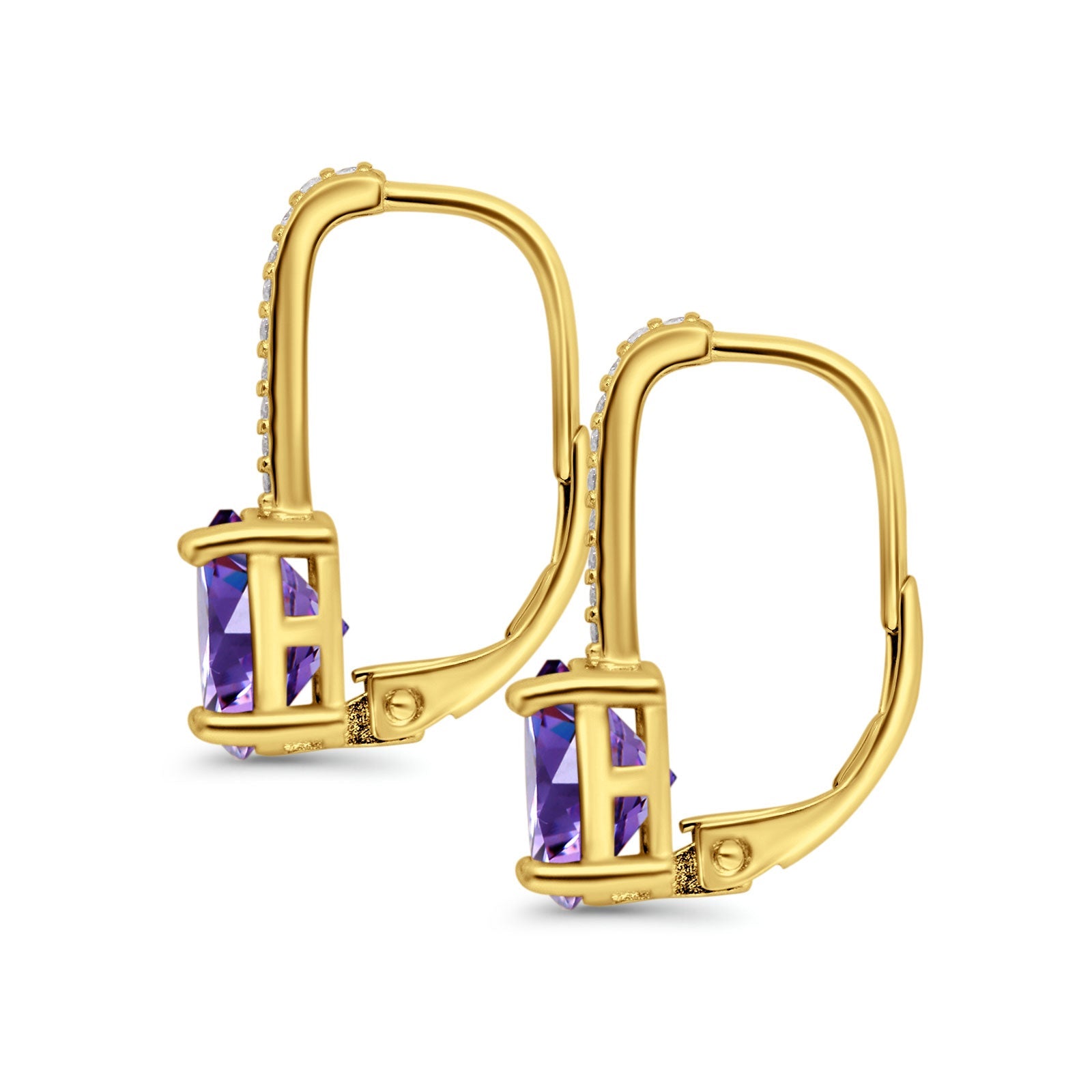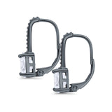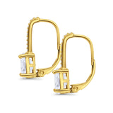 Round LeverBack Earrings Hoop Huggie Design Simulated Cubic Zirconia 925 Sterling Silver (22mm)