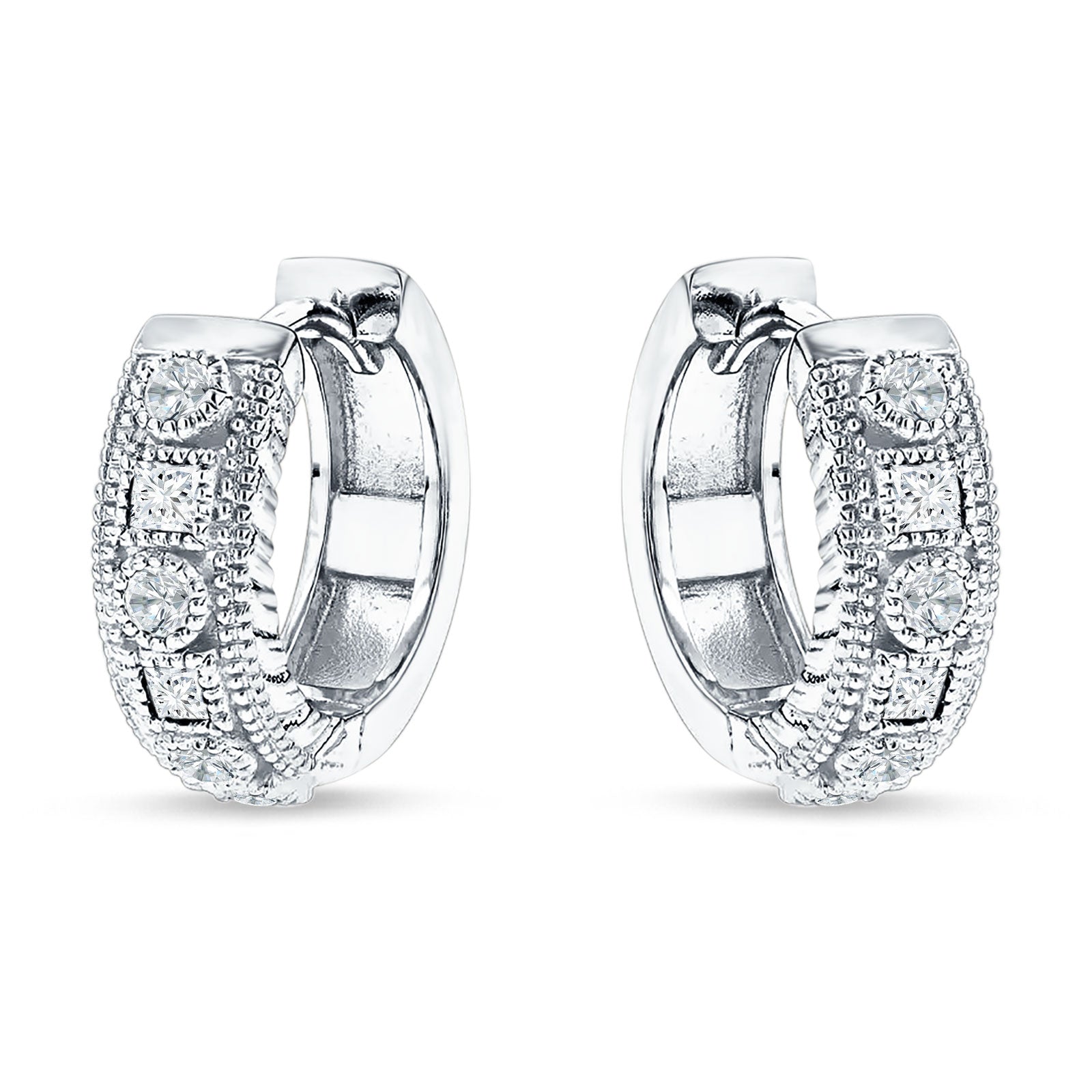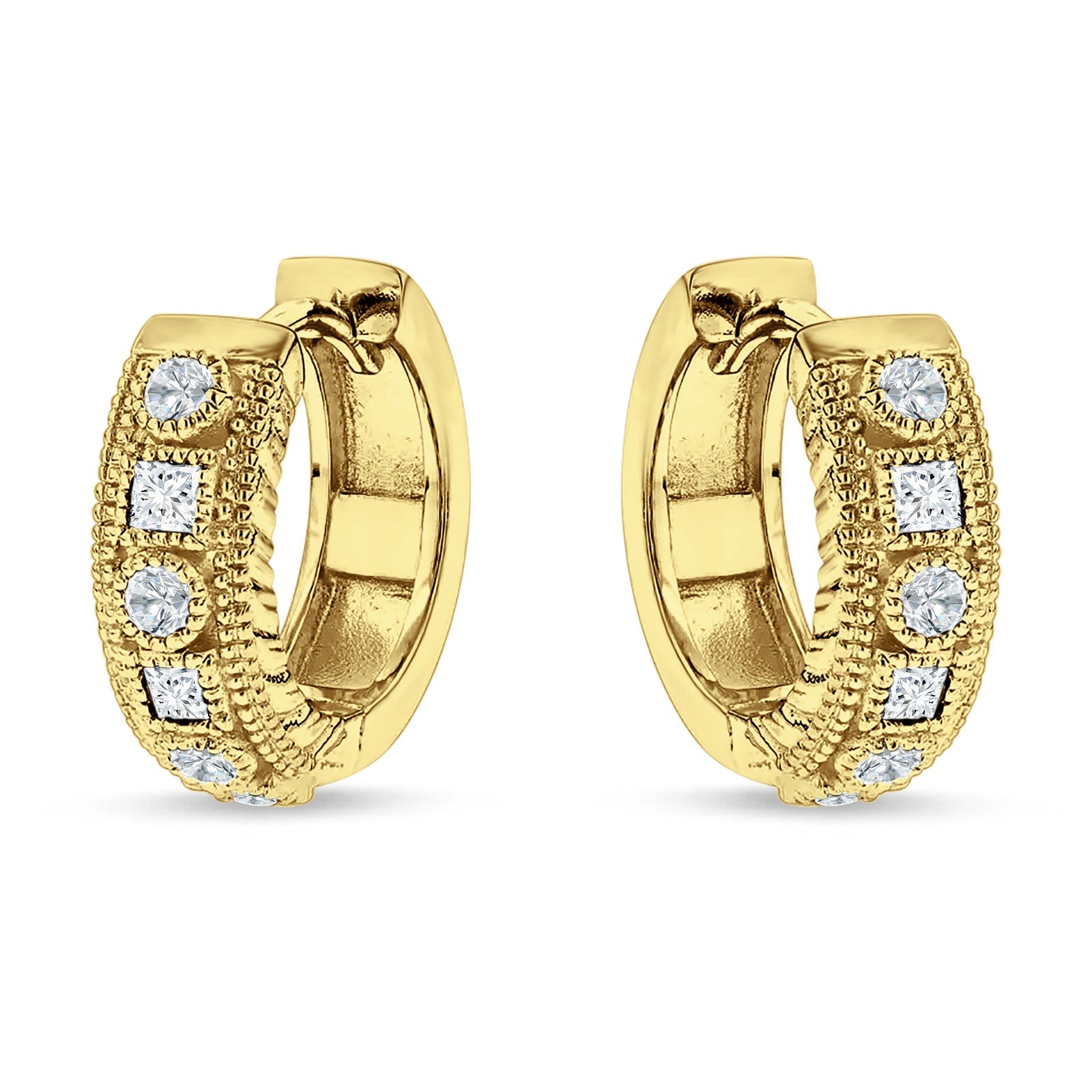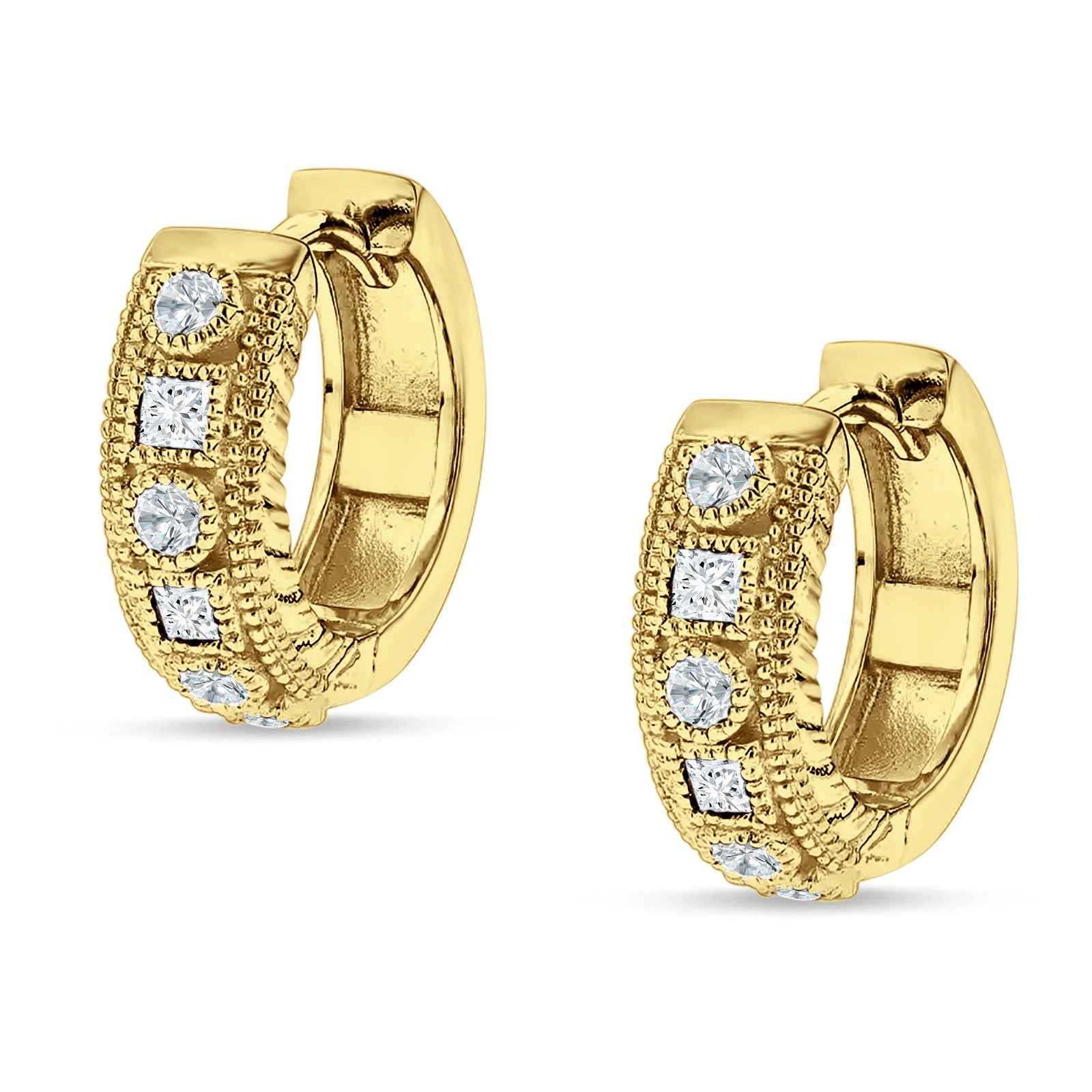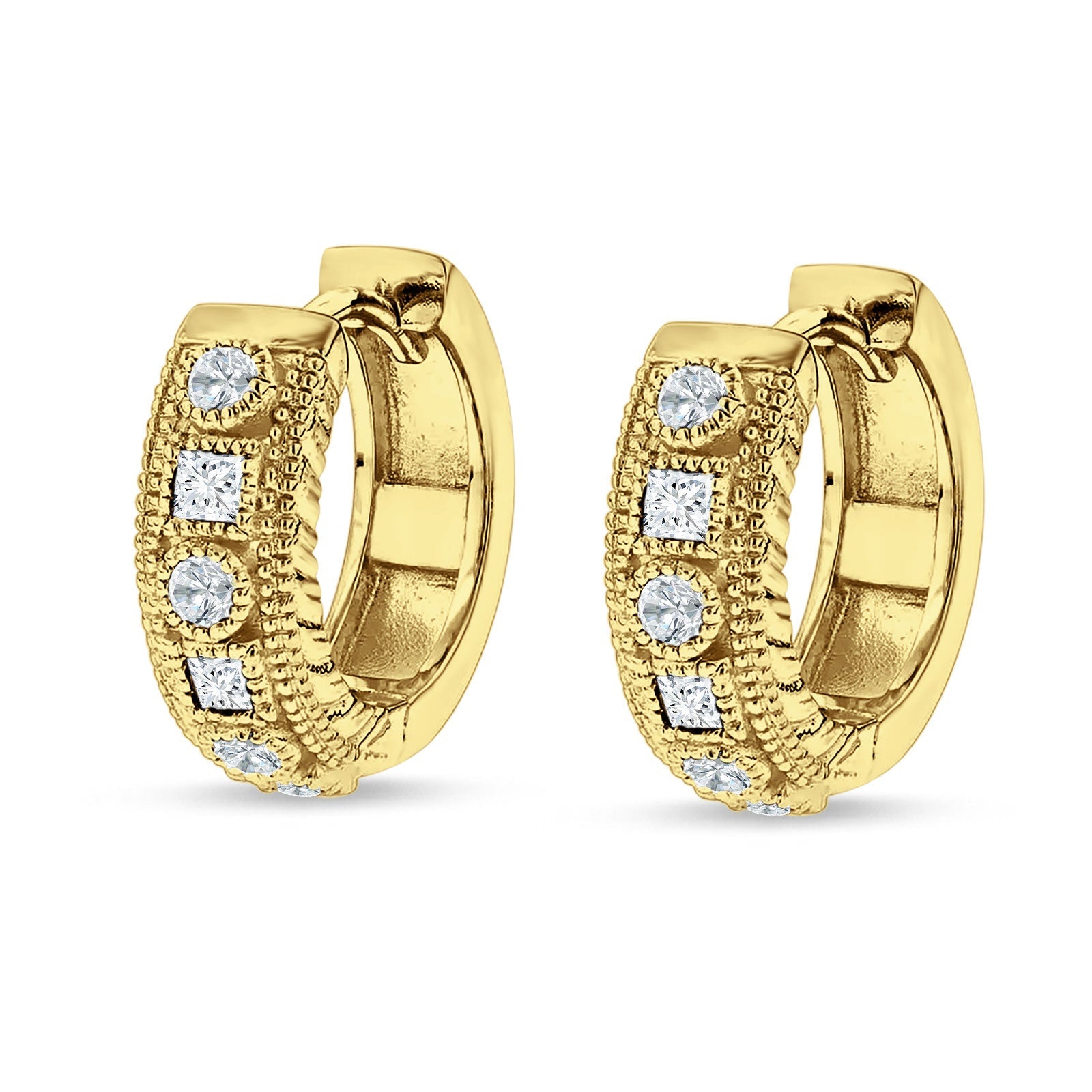 Style: Round & Princess Cut CZ Beaded Huggie Hoop Earring.