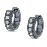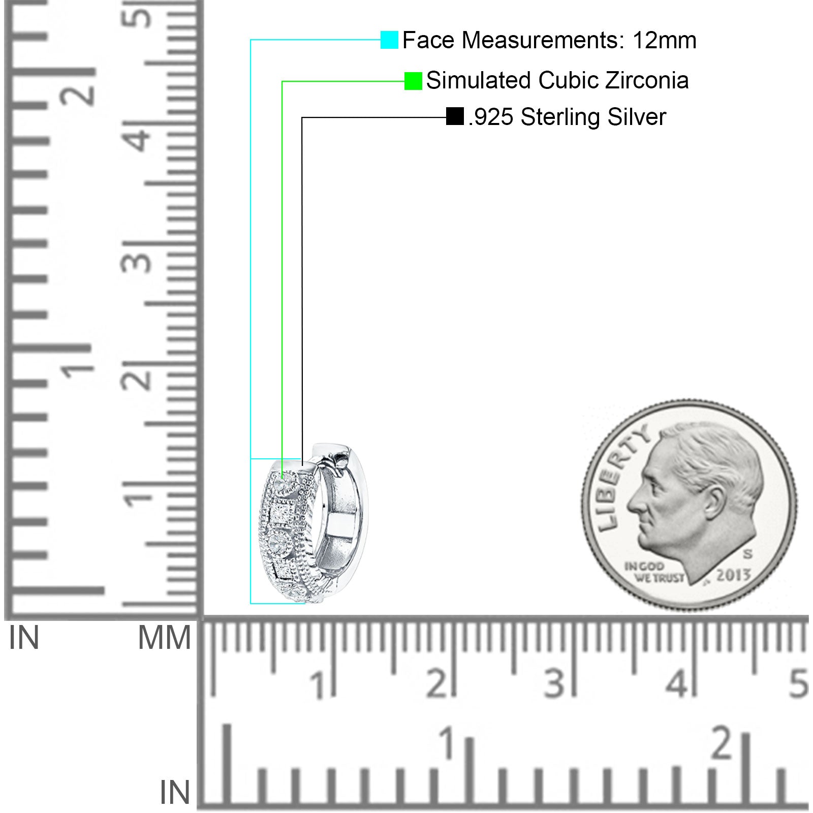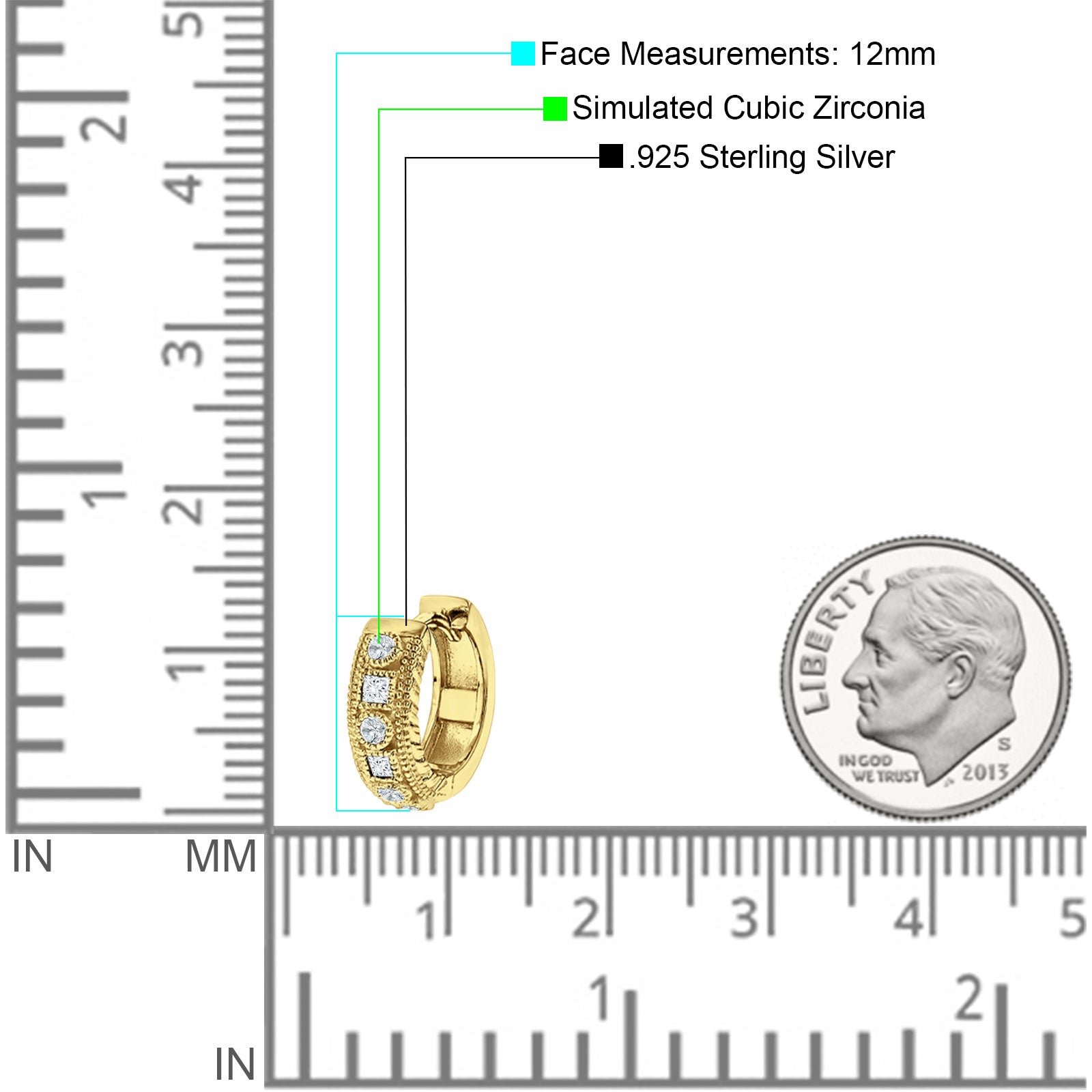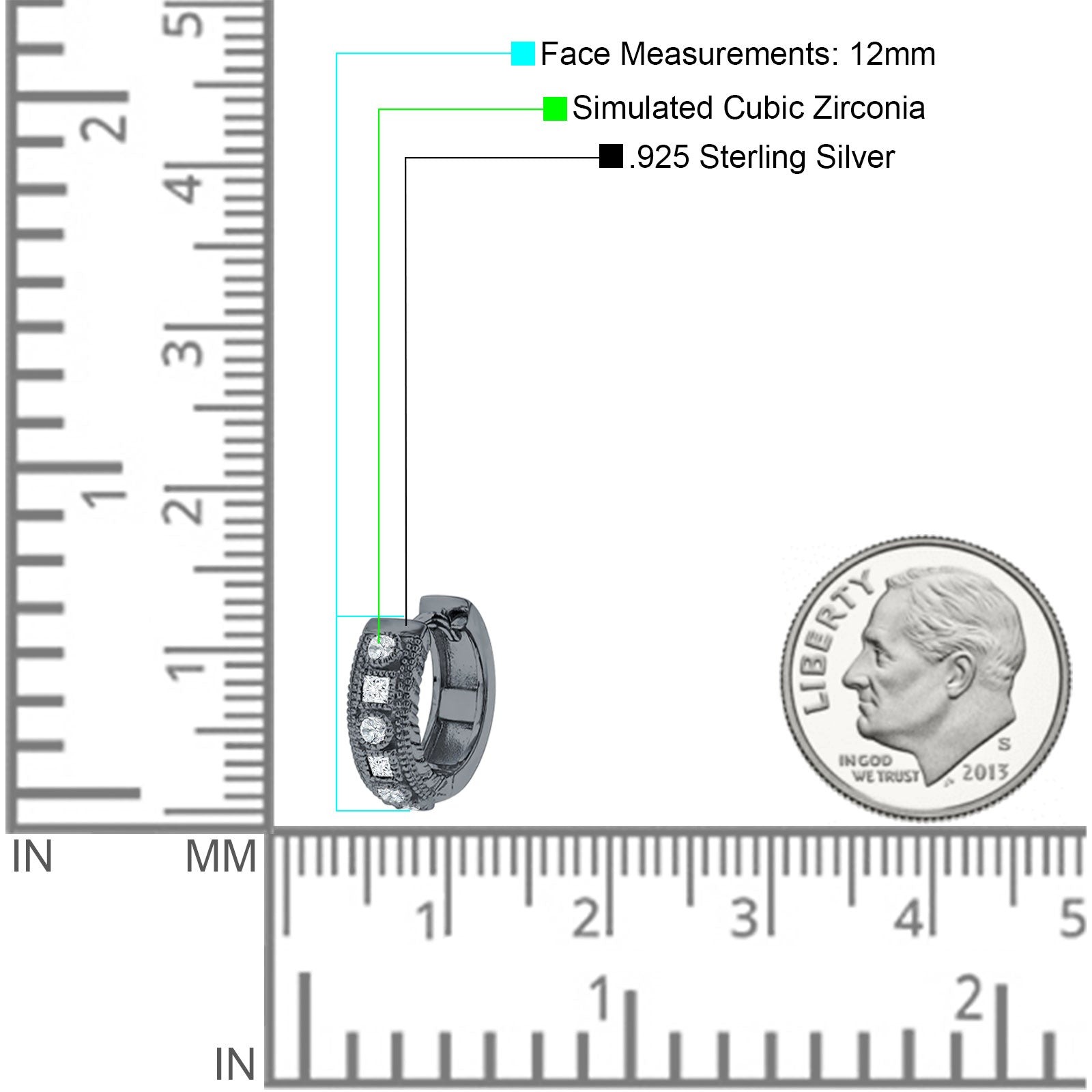 Round & Princess Cut Cubic Zirconia Huggie Hoop Earring 925 Sterling Silver