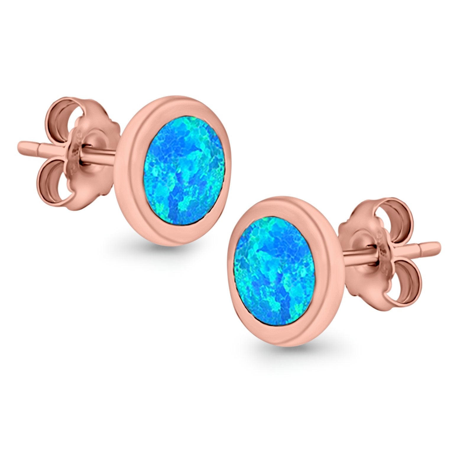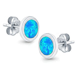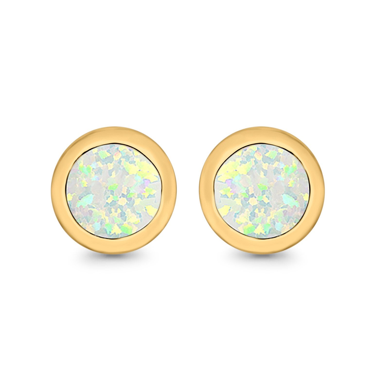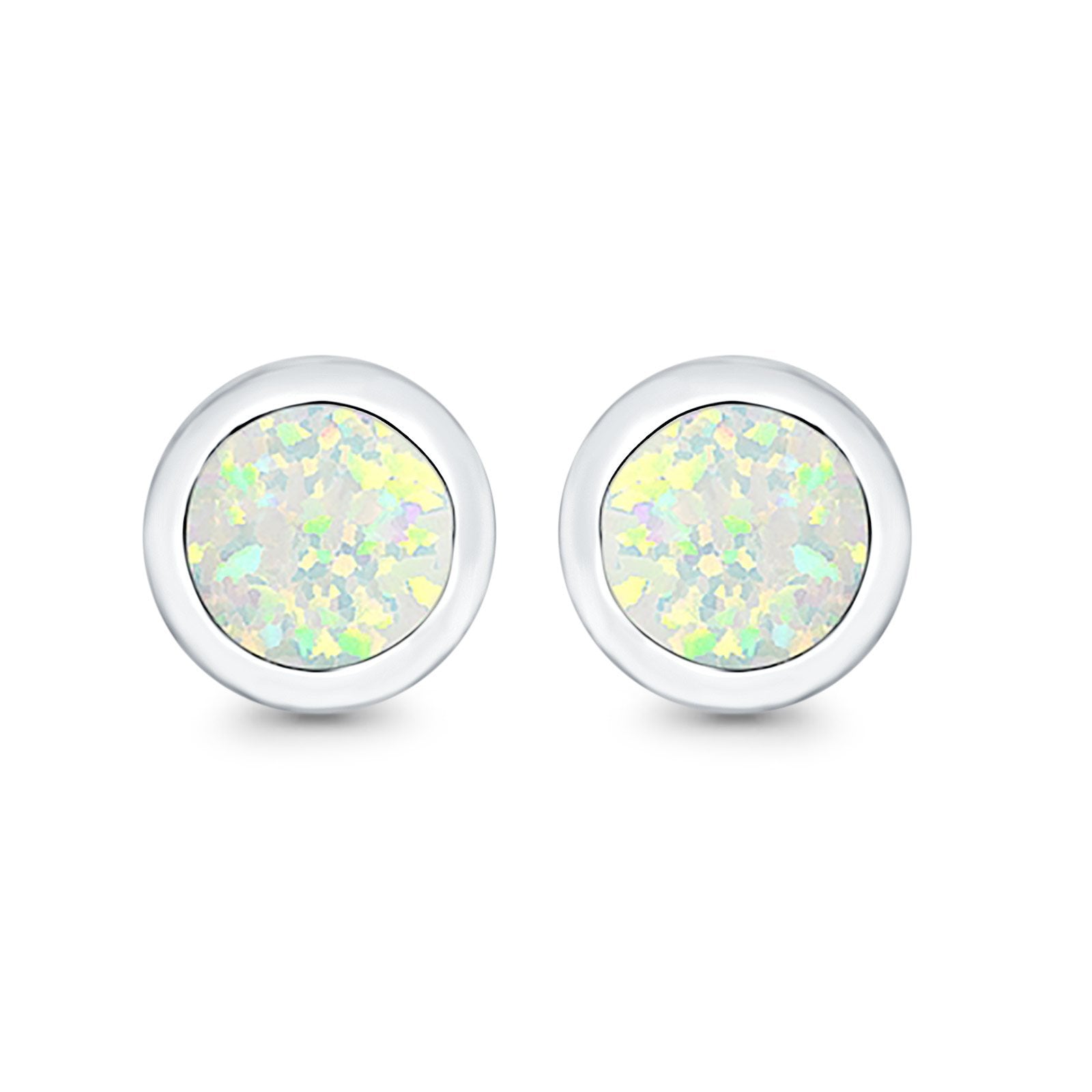 Round Stud Earrings Lab Created Opal 925 Sterling Silver (7mm)