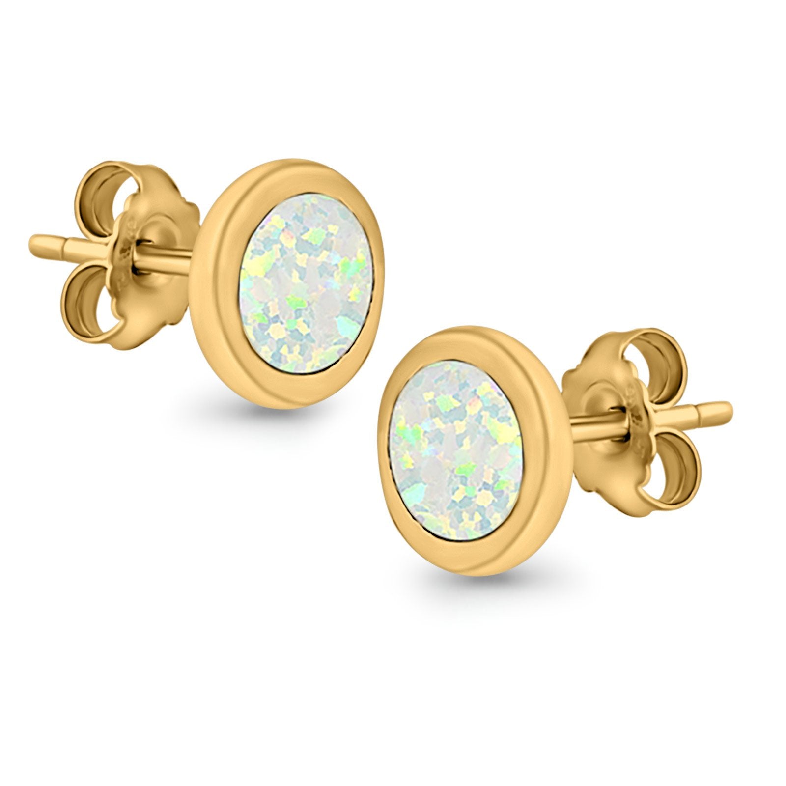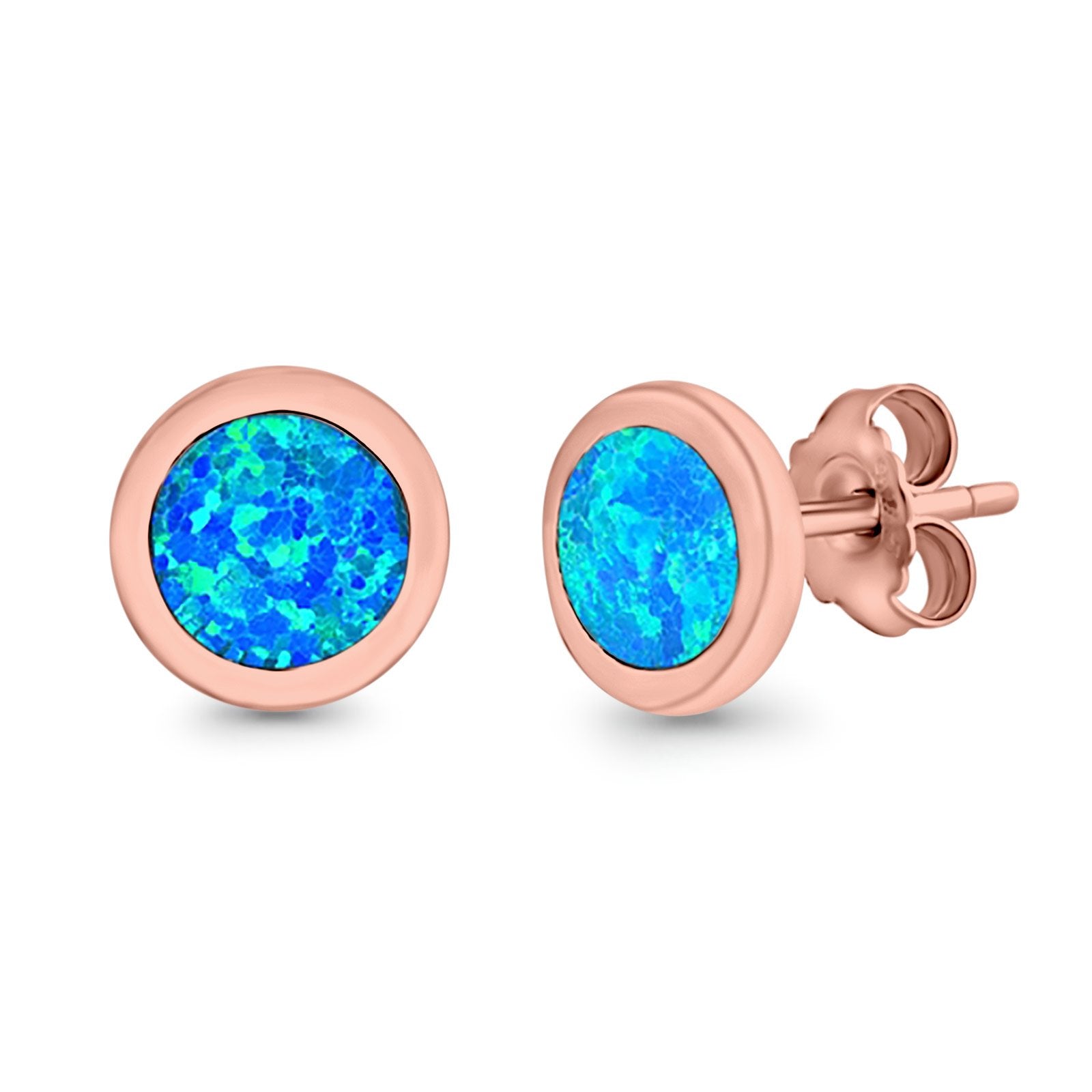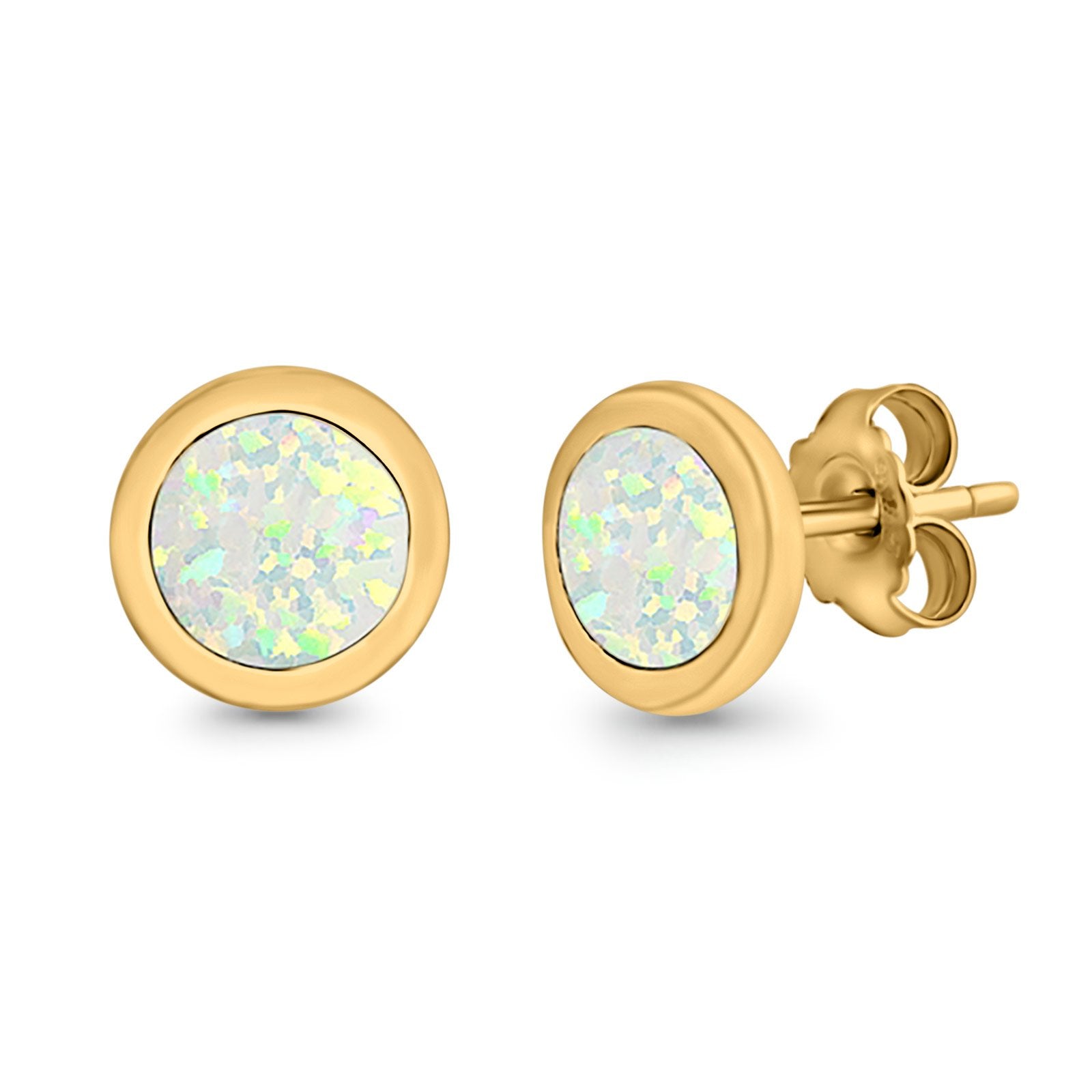 Round Stud Earrings Lab Created Opal 925 Sterling Silver (7mm)