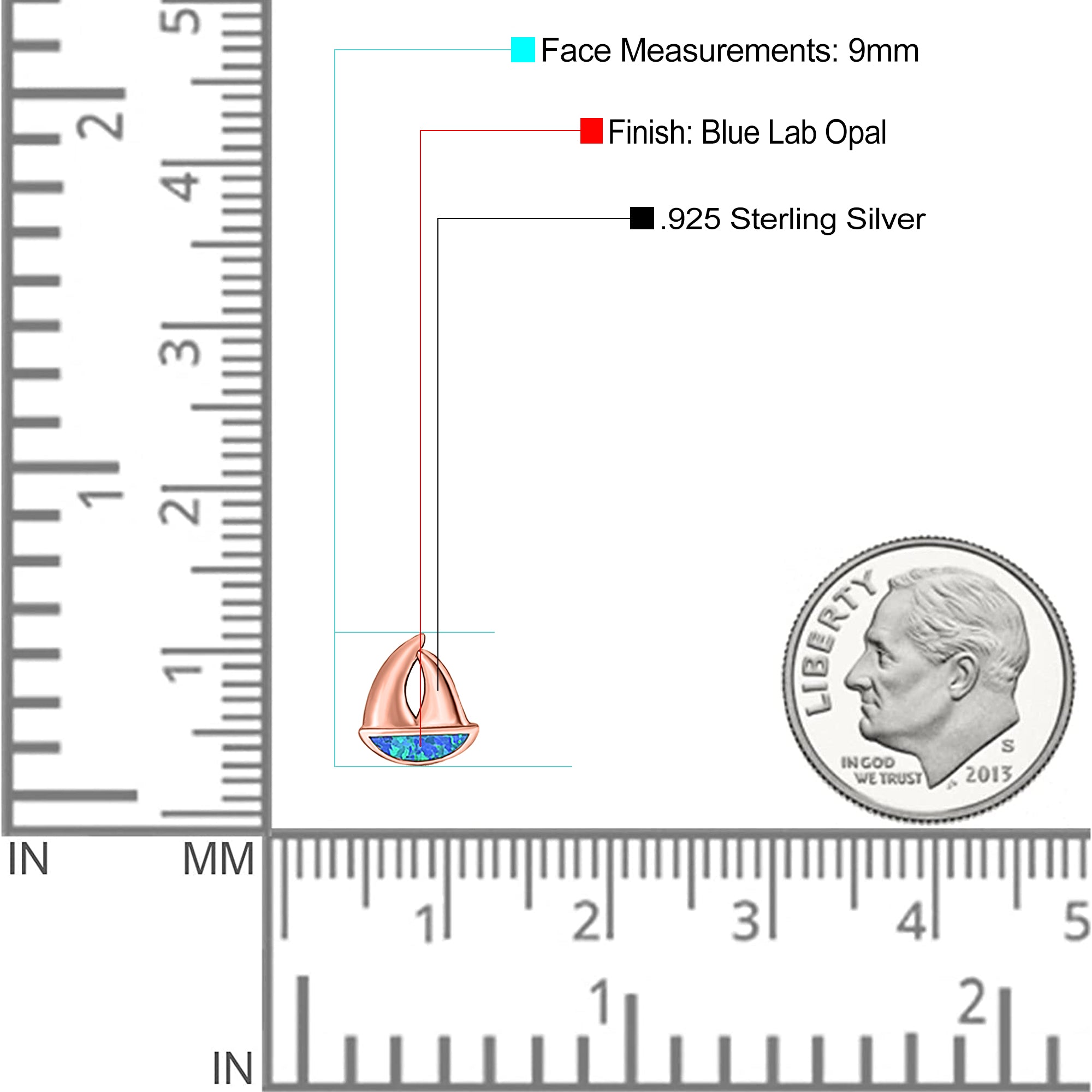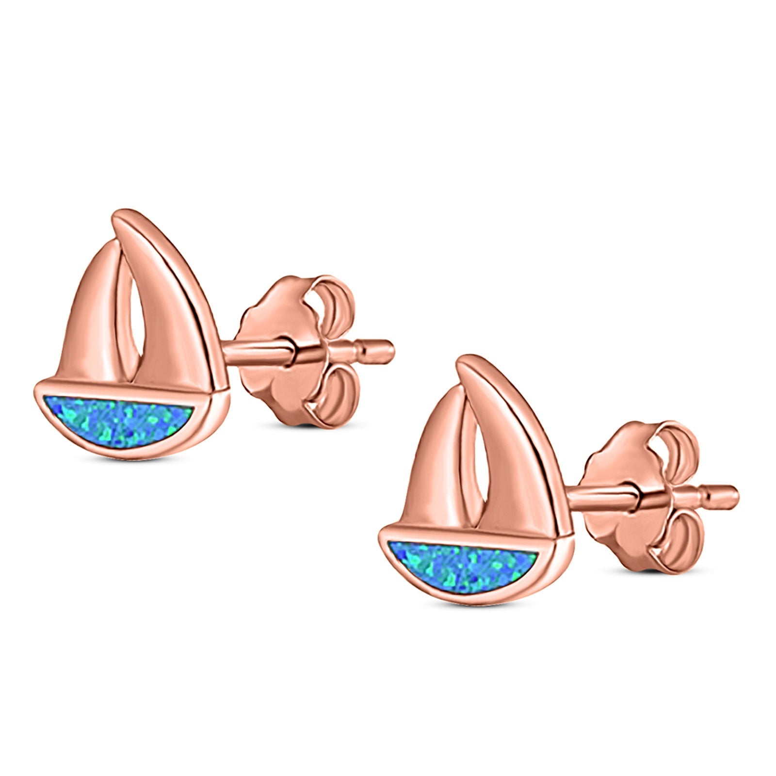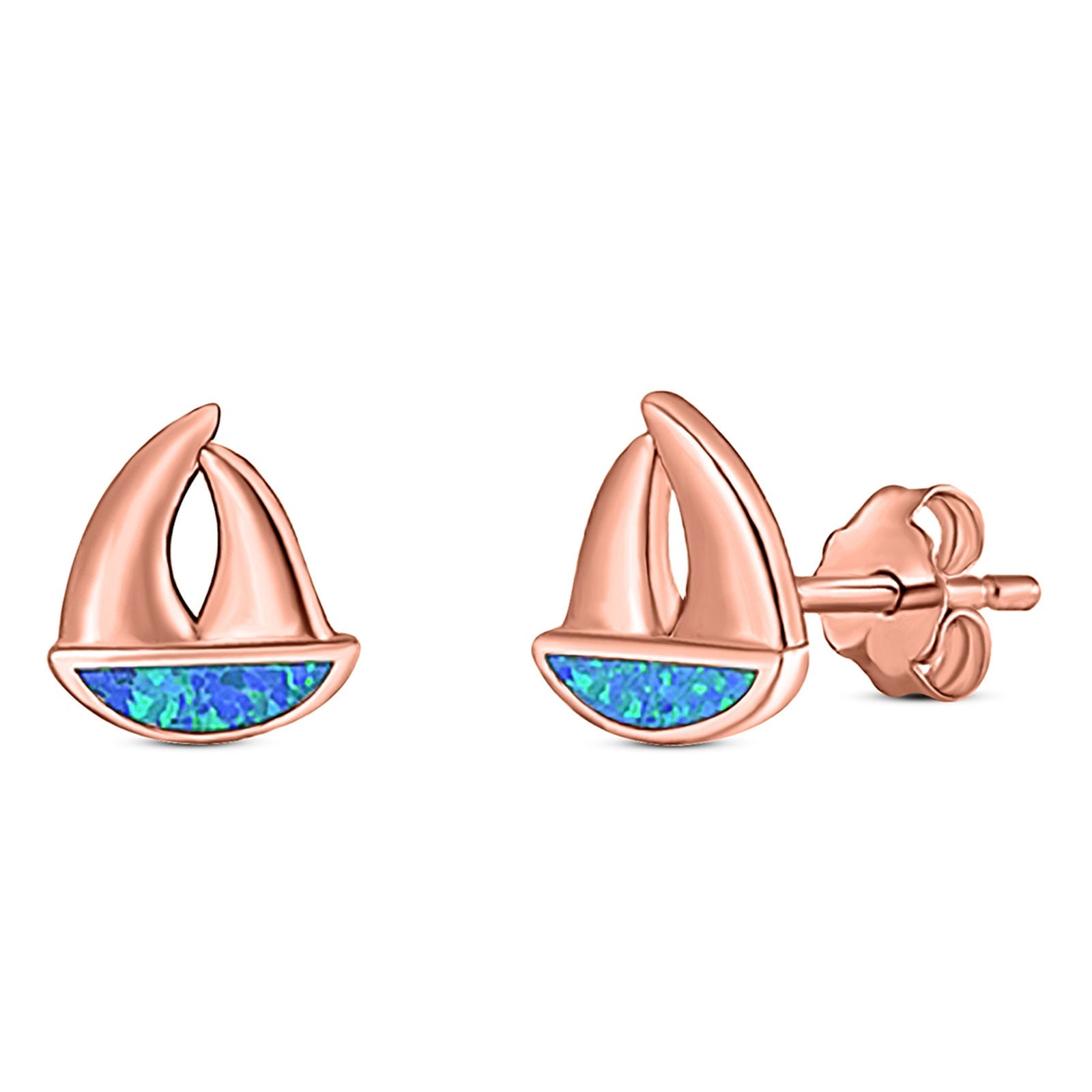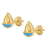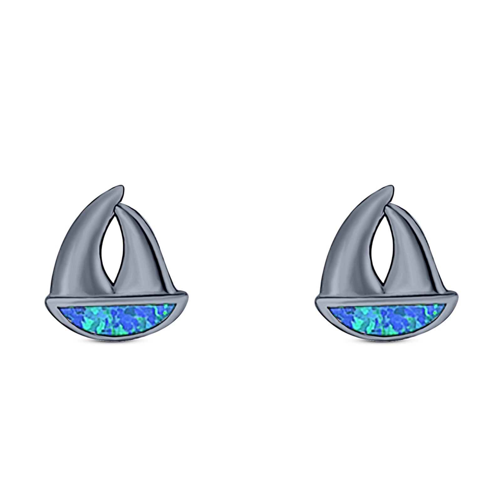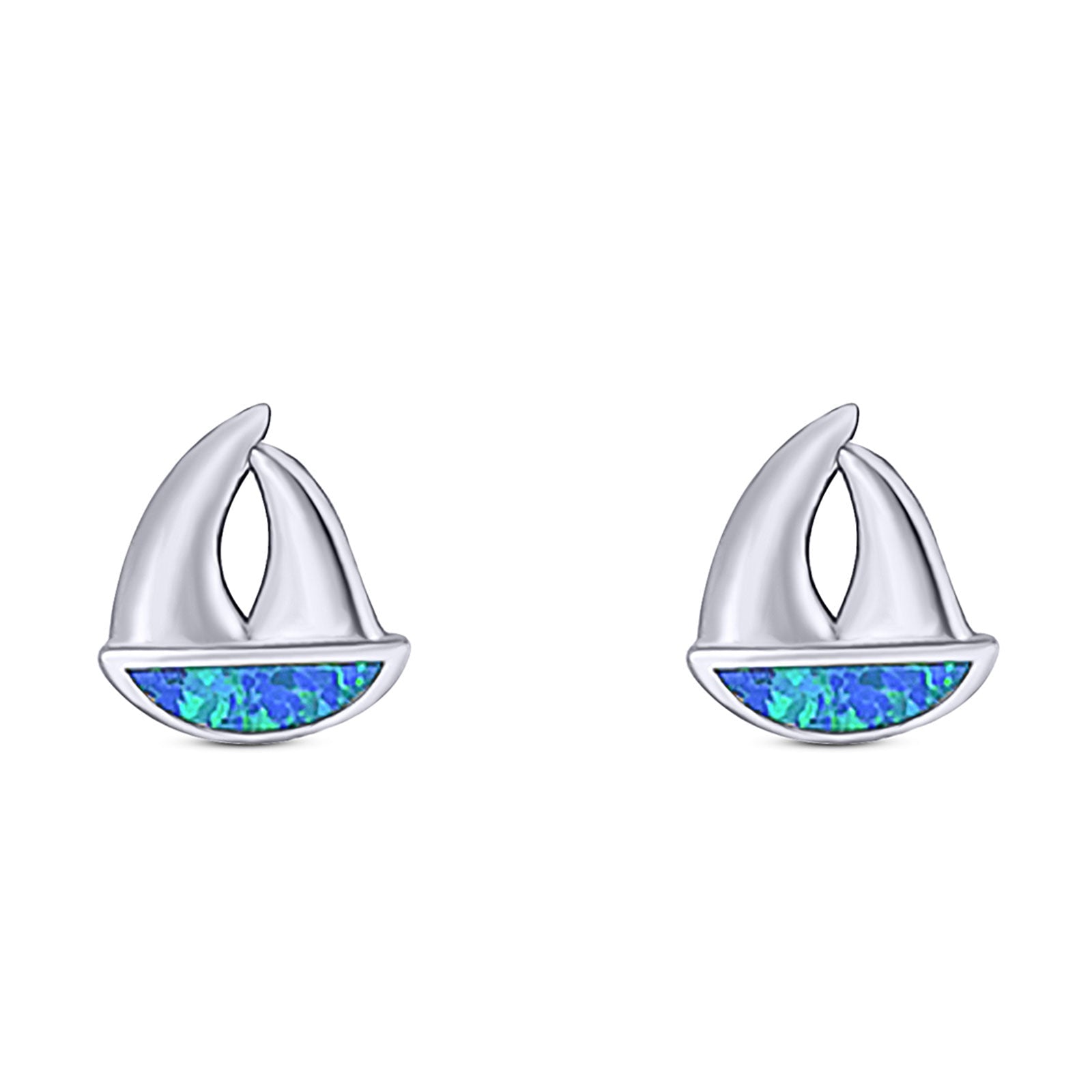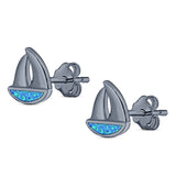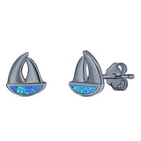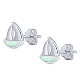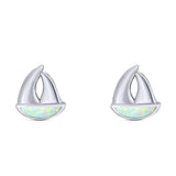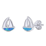 Sail Boat Stud Earring Created Opal Solid 925 Sterling Silver (9mm)