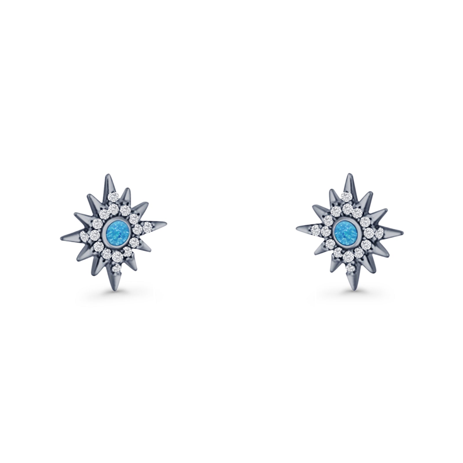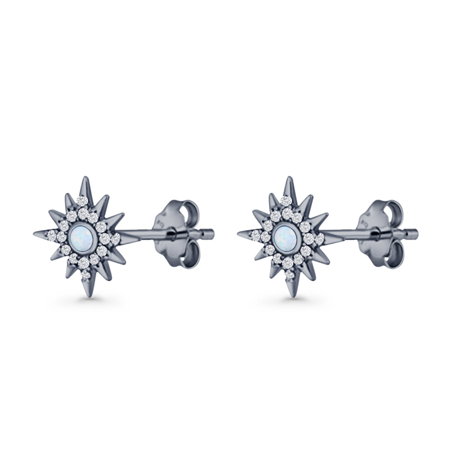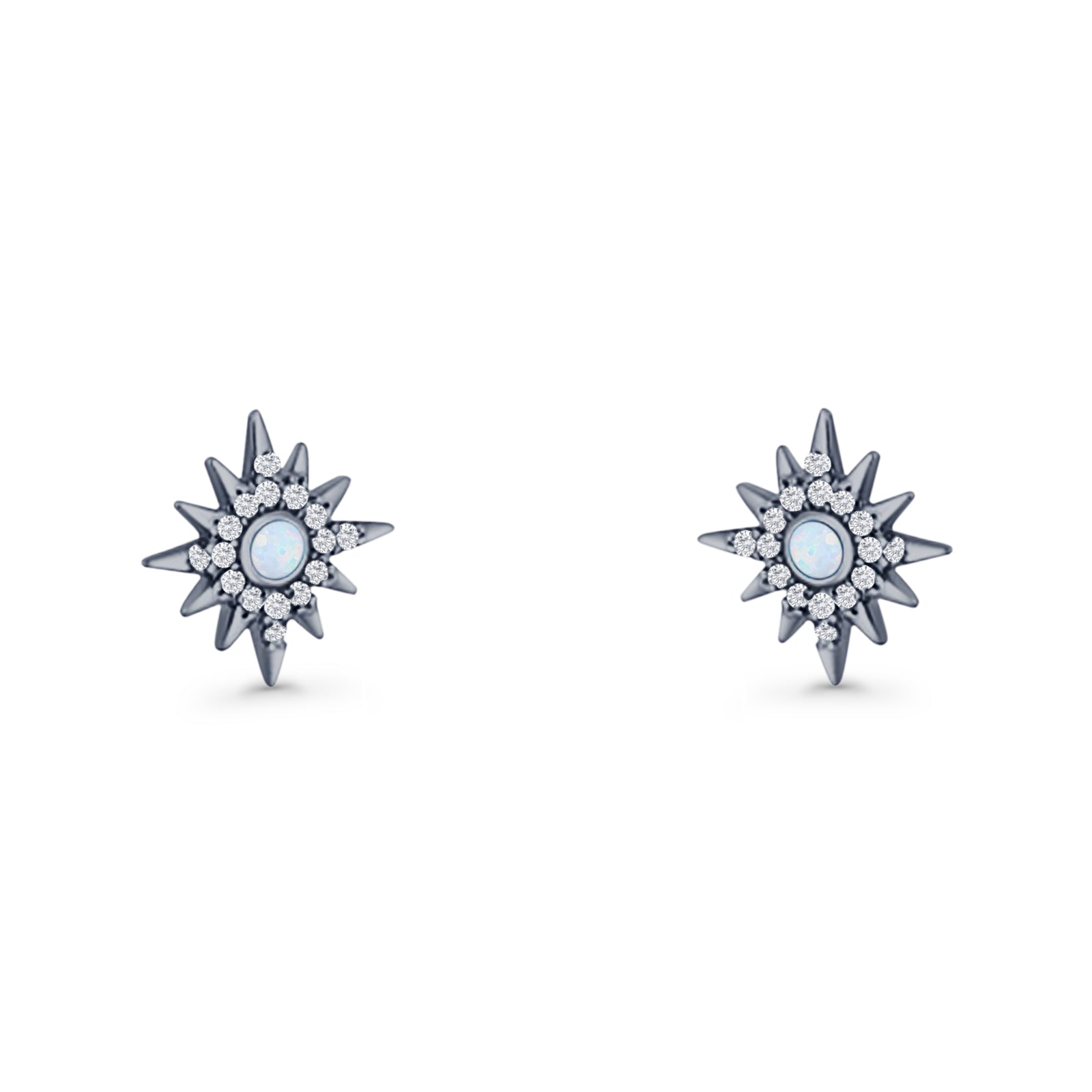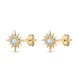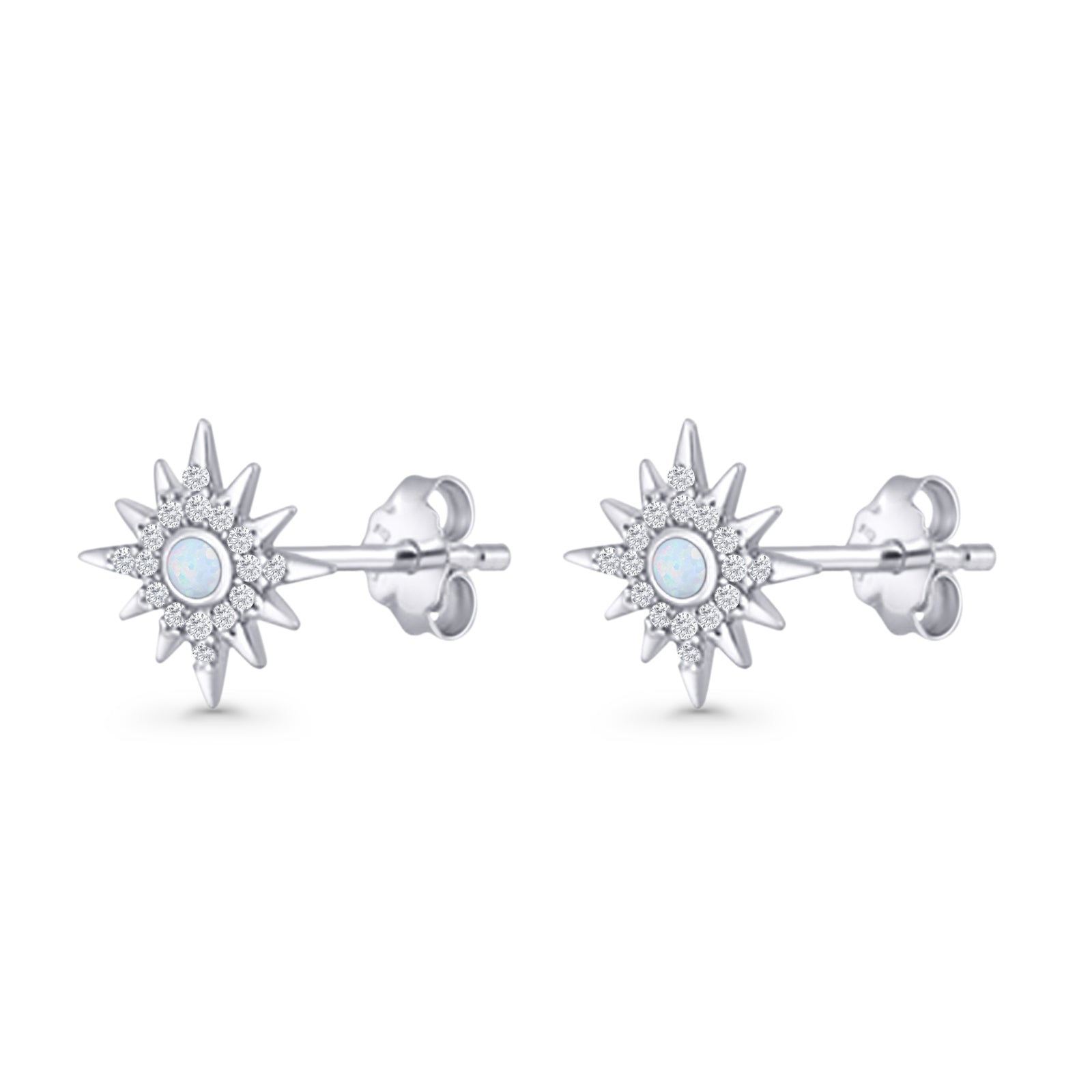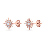Starburst Stud Earring 10.7mm Lab Created Opal & Cubic Zirconia 925 Sterling Silver
