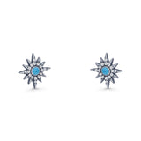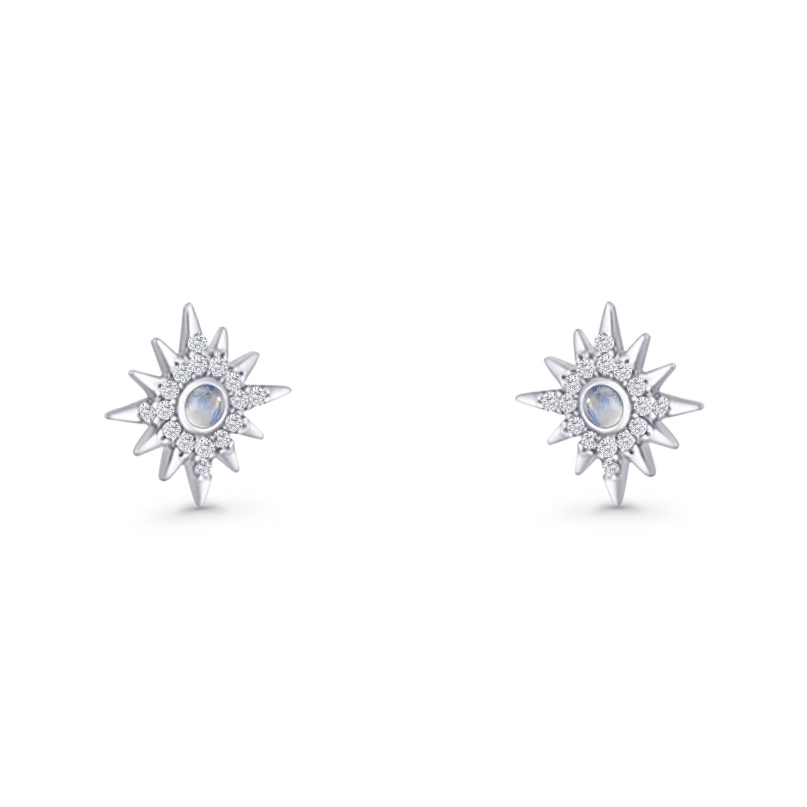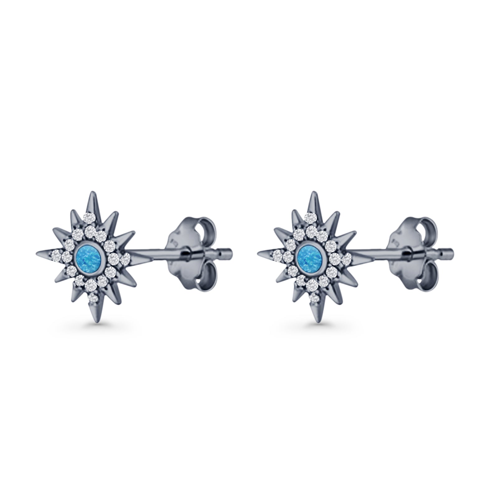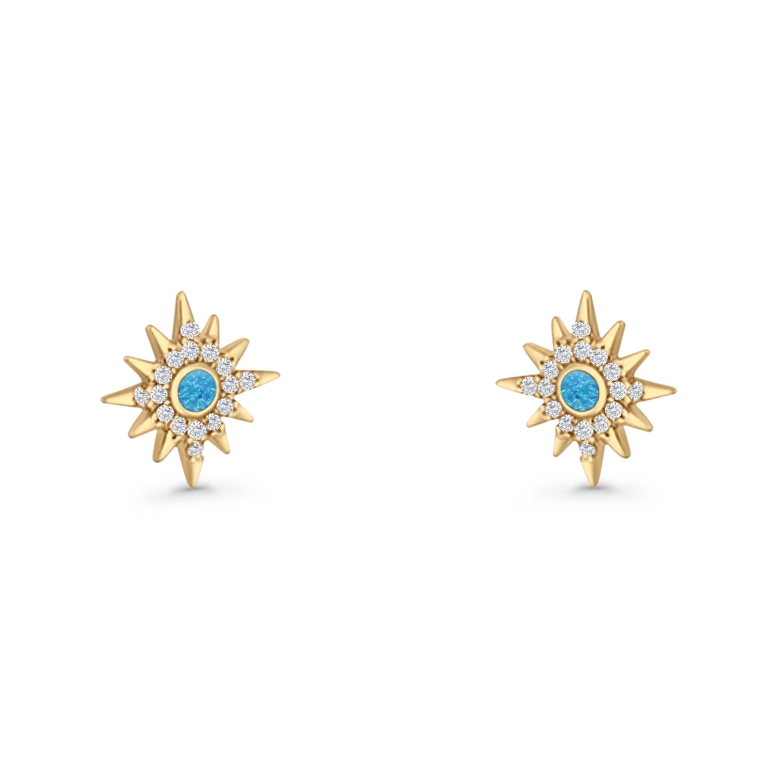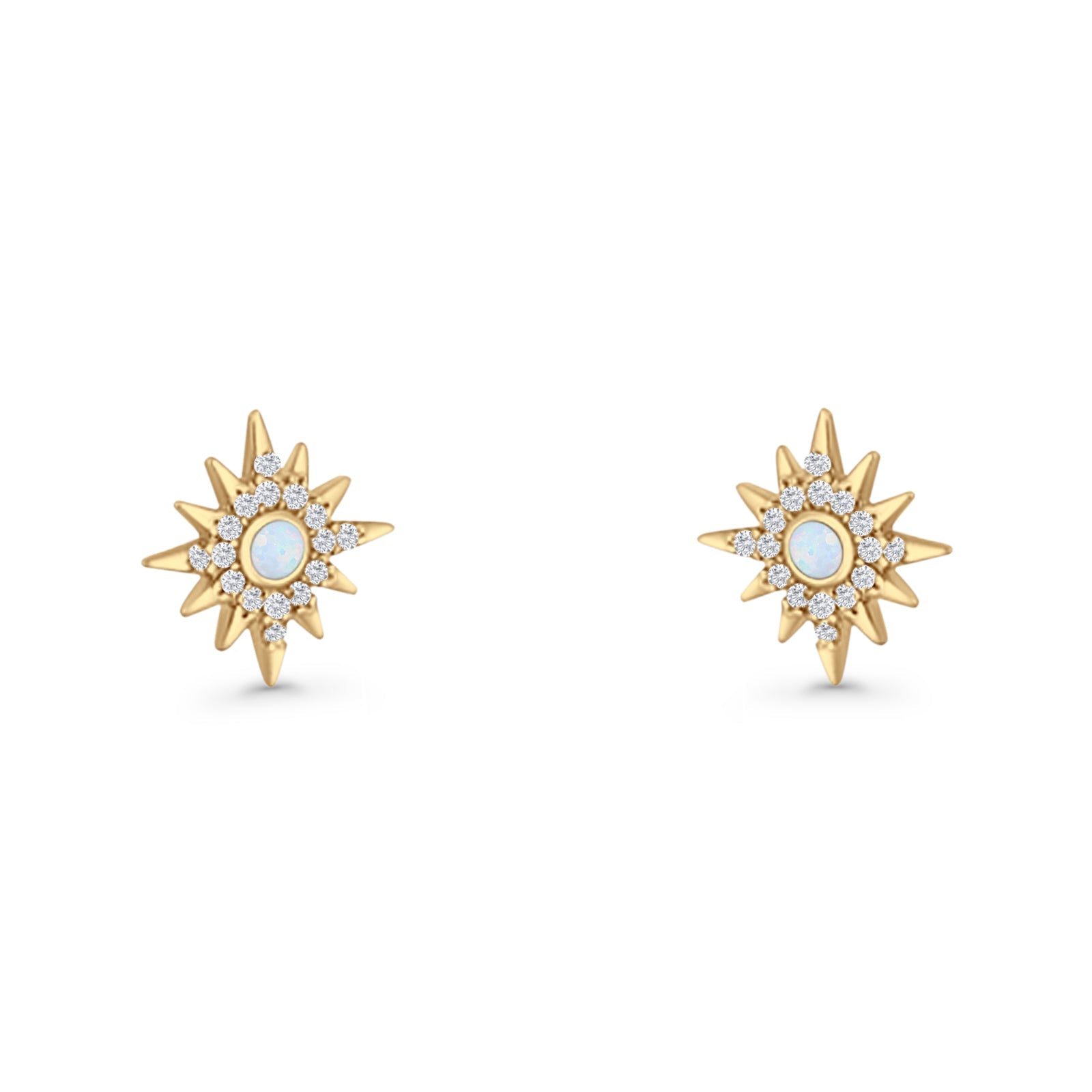 Starburst Stud Earring 10.7mm Lab Created Opal & Cubic Zirconia 925 Sterling Silver