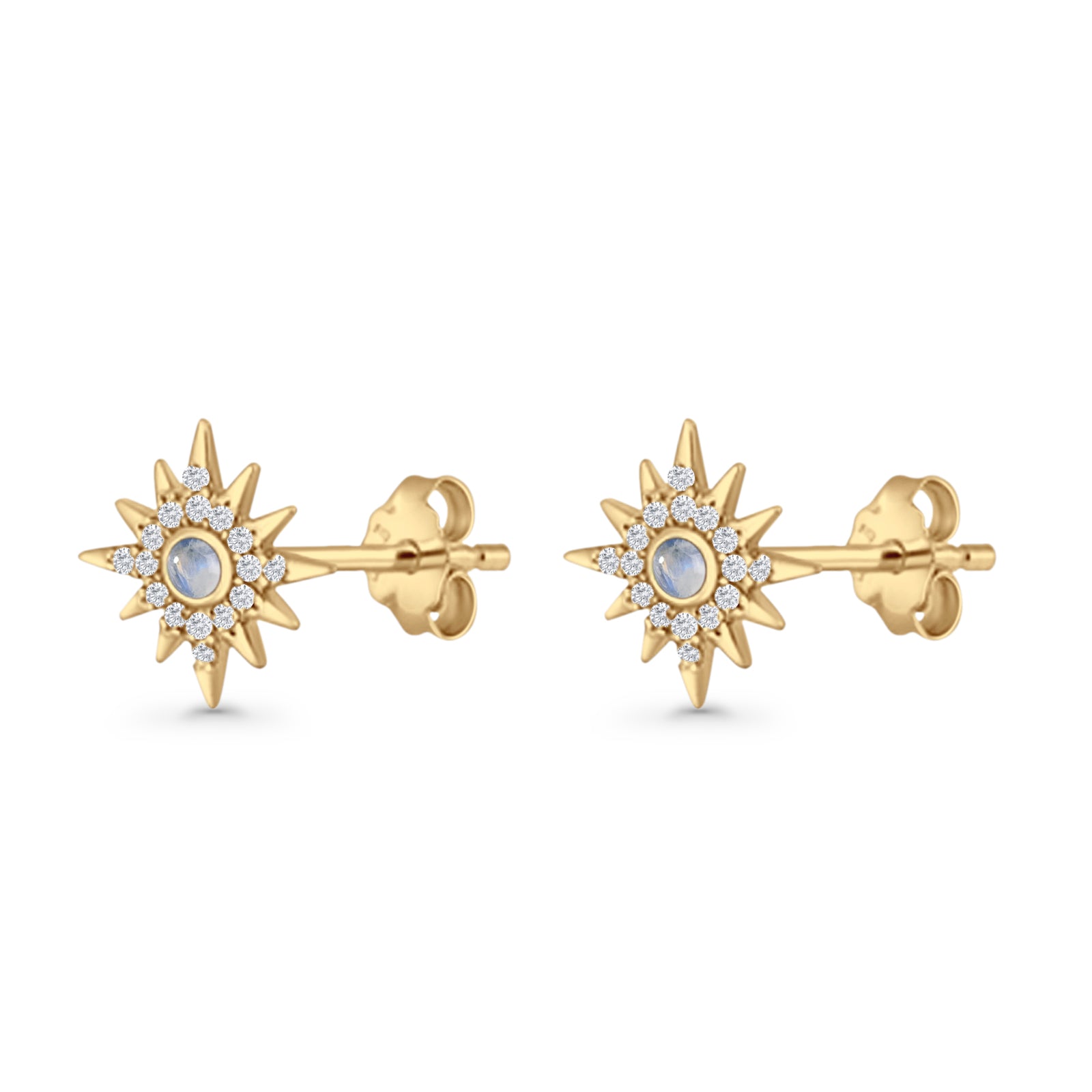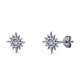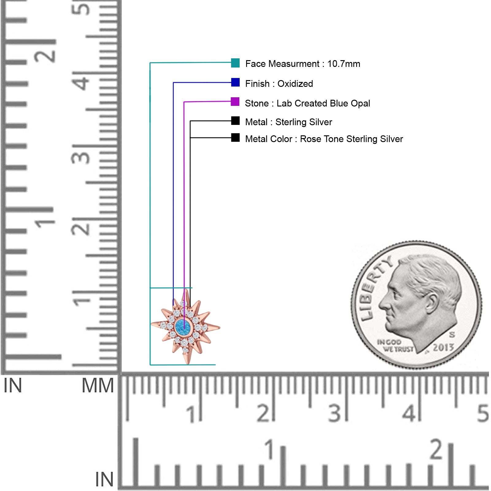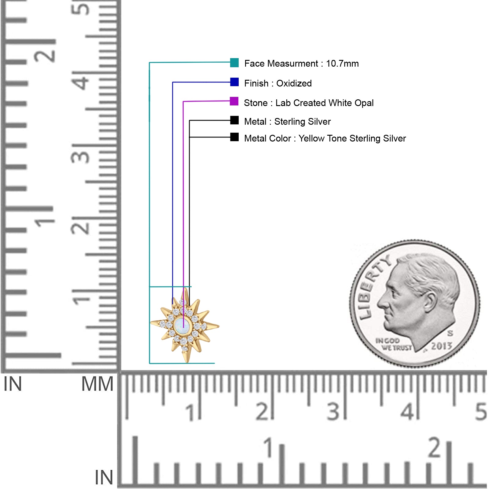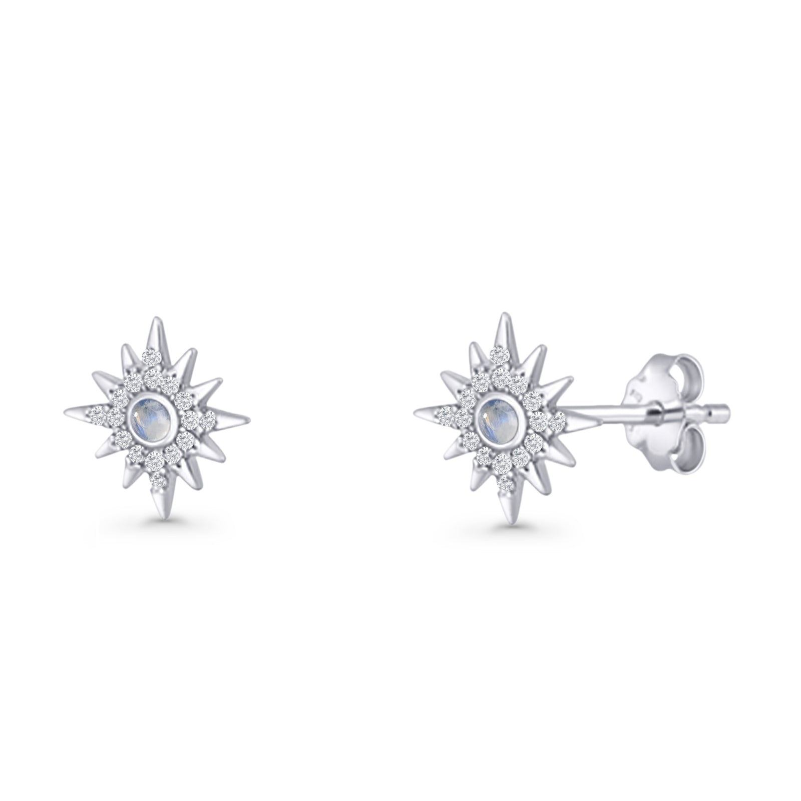 Starburst Stud Earring 10.7mm Lab Created Opal & Cubic Zirconia 925 Sterling Silver
