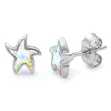 Starfish Earring Solid 925 Sterling Silver Lab Created Fire White Opal Inlay Nautical Starfish Stud Post Earrings Starfish Jewelry