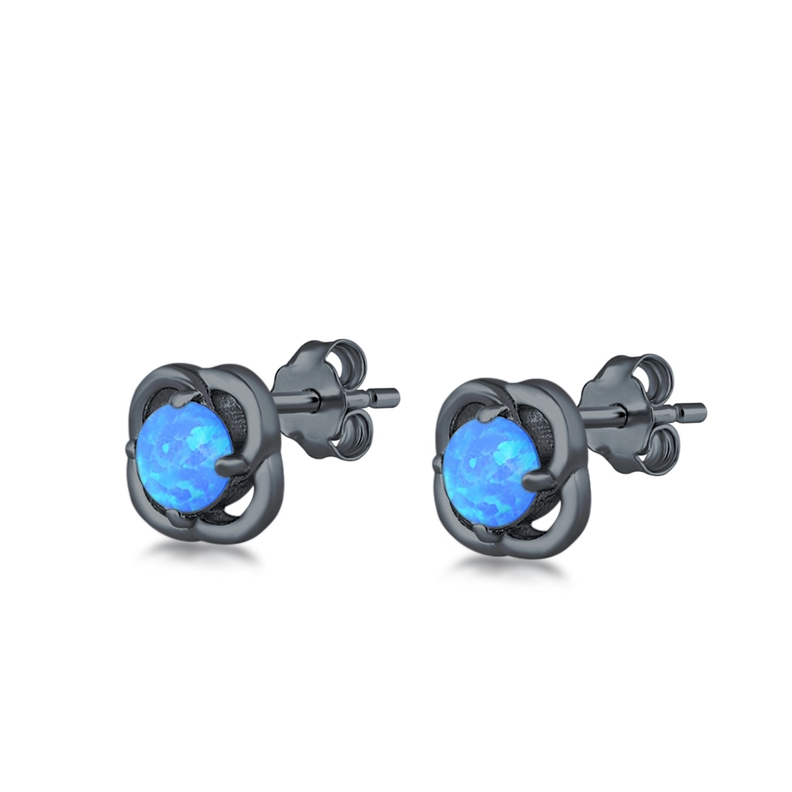 Stud Earrings Created Opal 925 Sterling Silver (6mm)