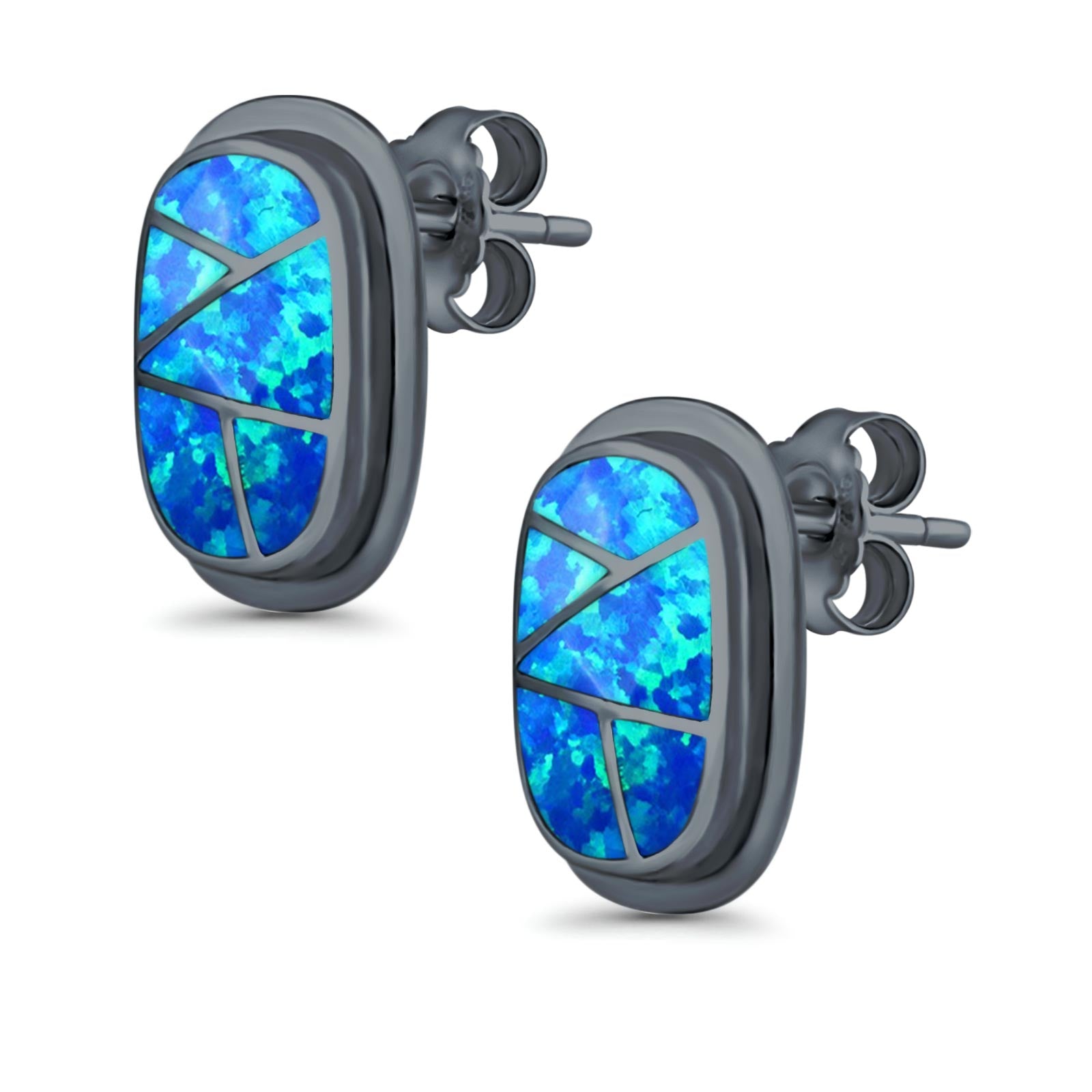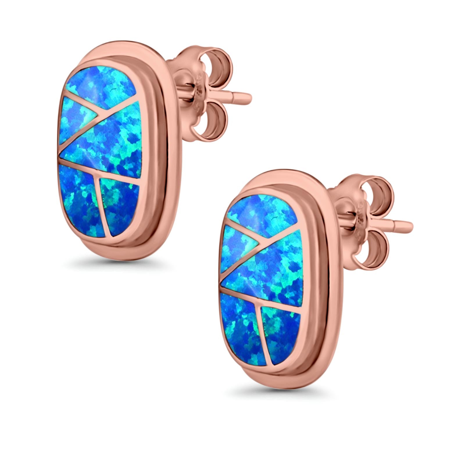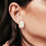 Stud Earrings Lab Created Opal 925 Sterling Silver (18mm)