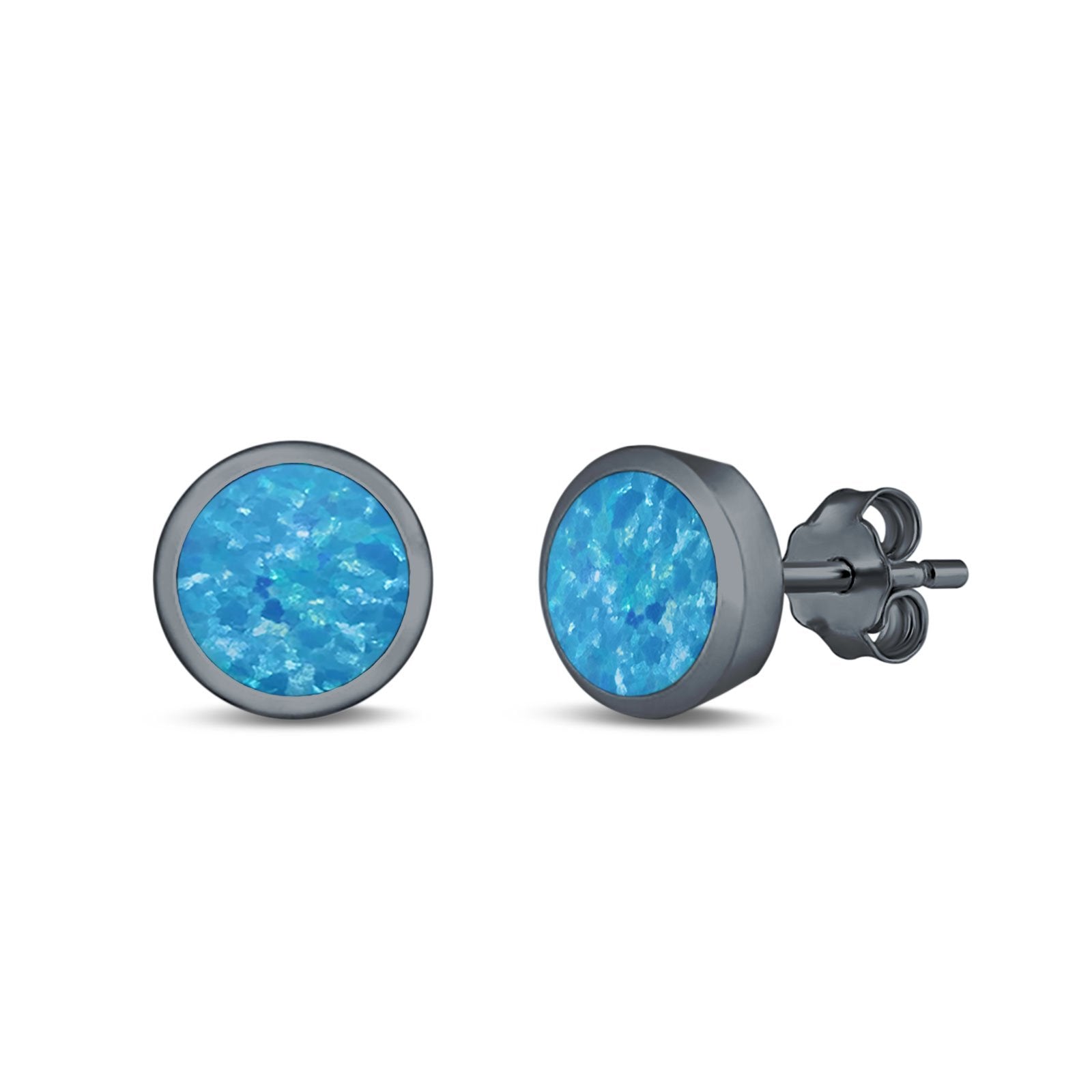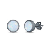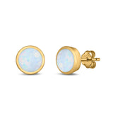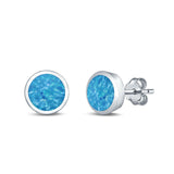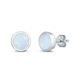 Stud Earrings Round Lab Created Opal 925 Sterling Silver (4mm-10mm)