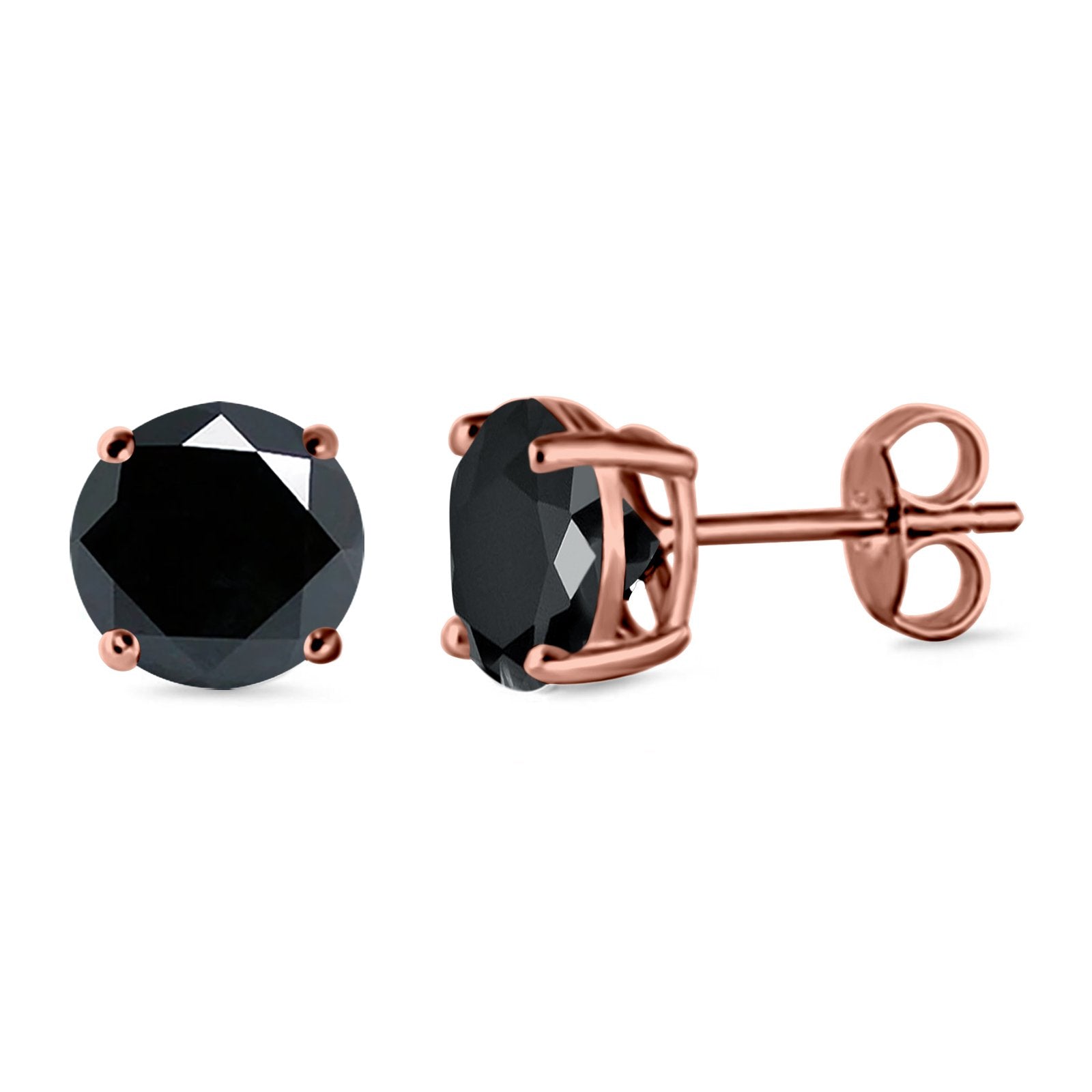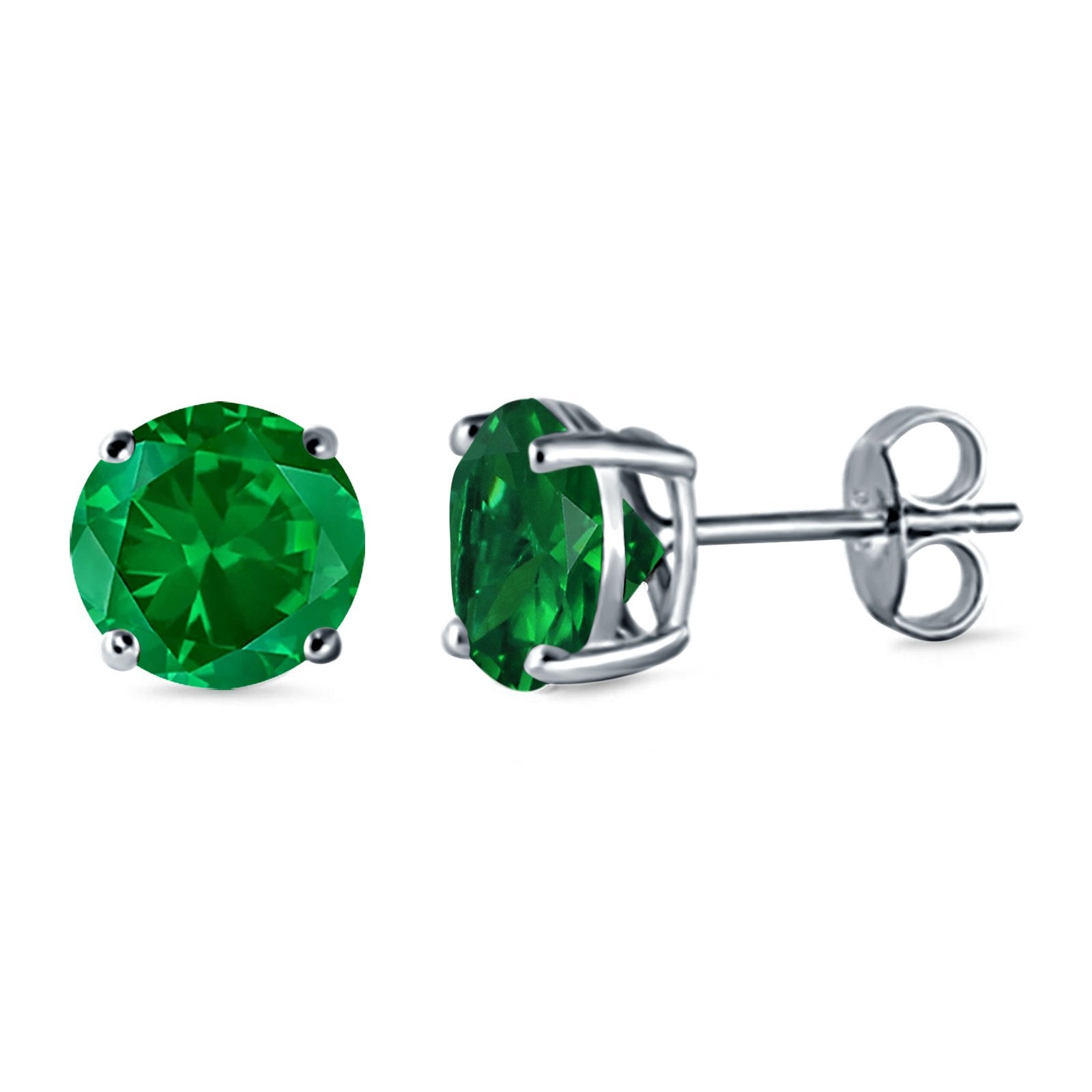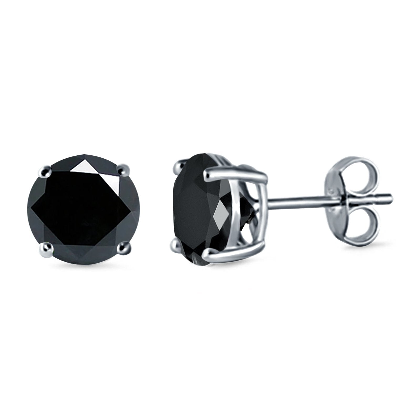 Stud Earrings Round Simulated Cubic Zirconia 925 Sterling Silver (3mm-12mm)