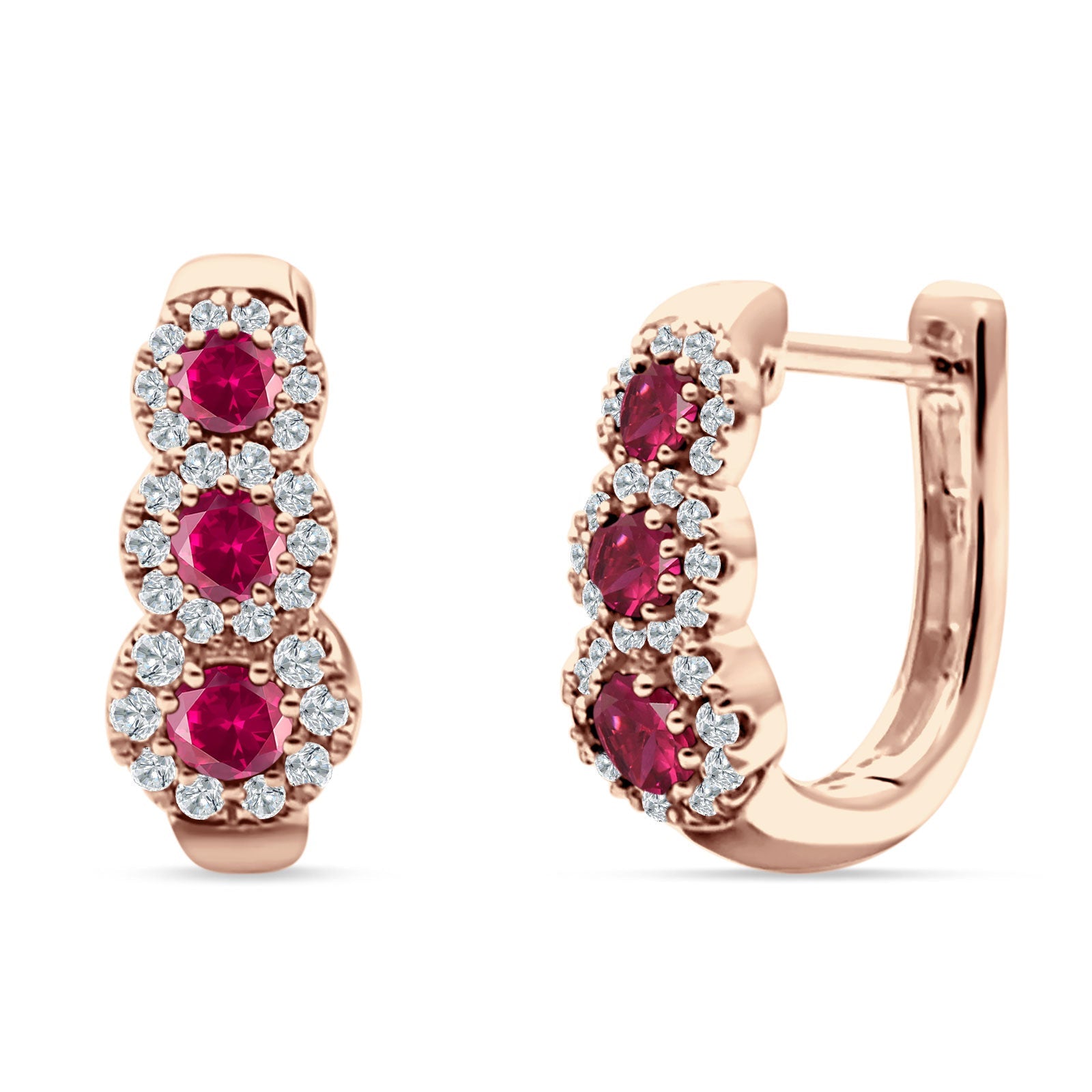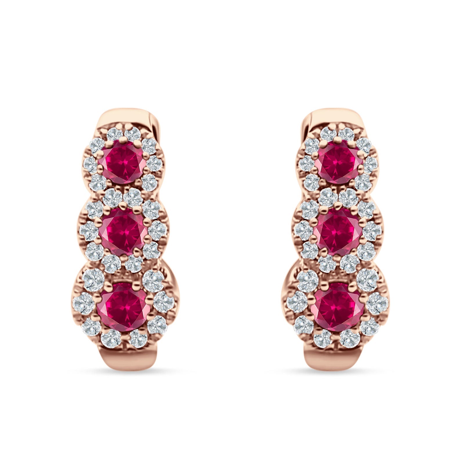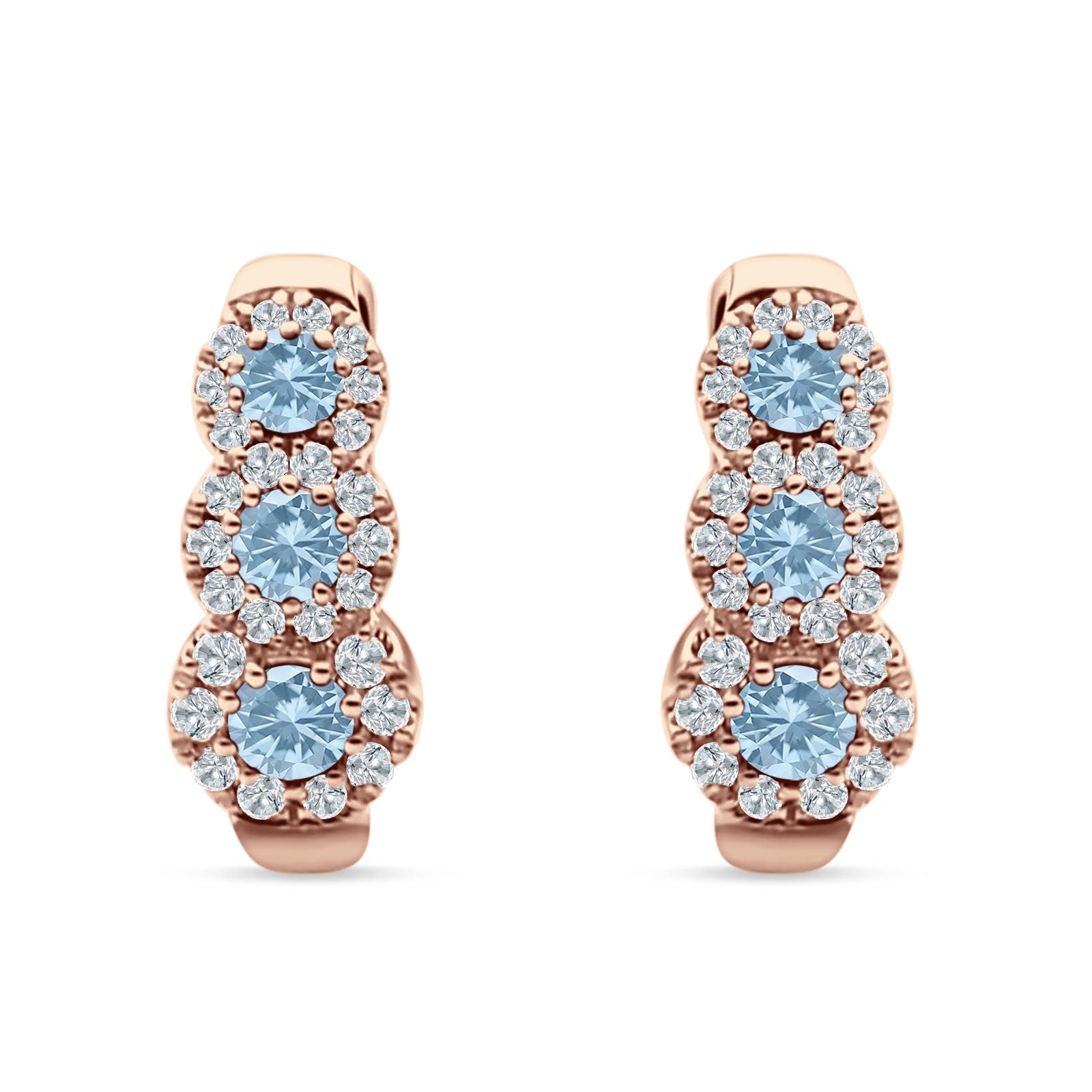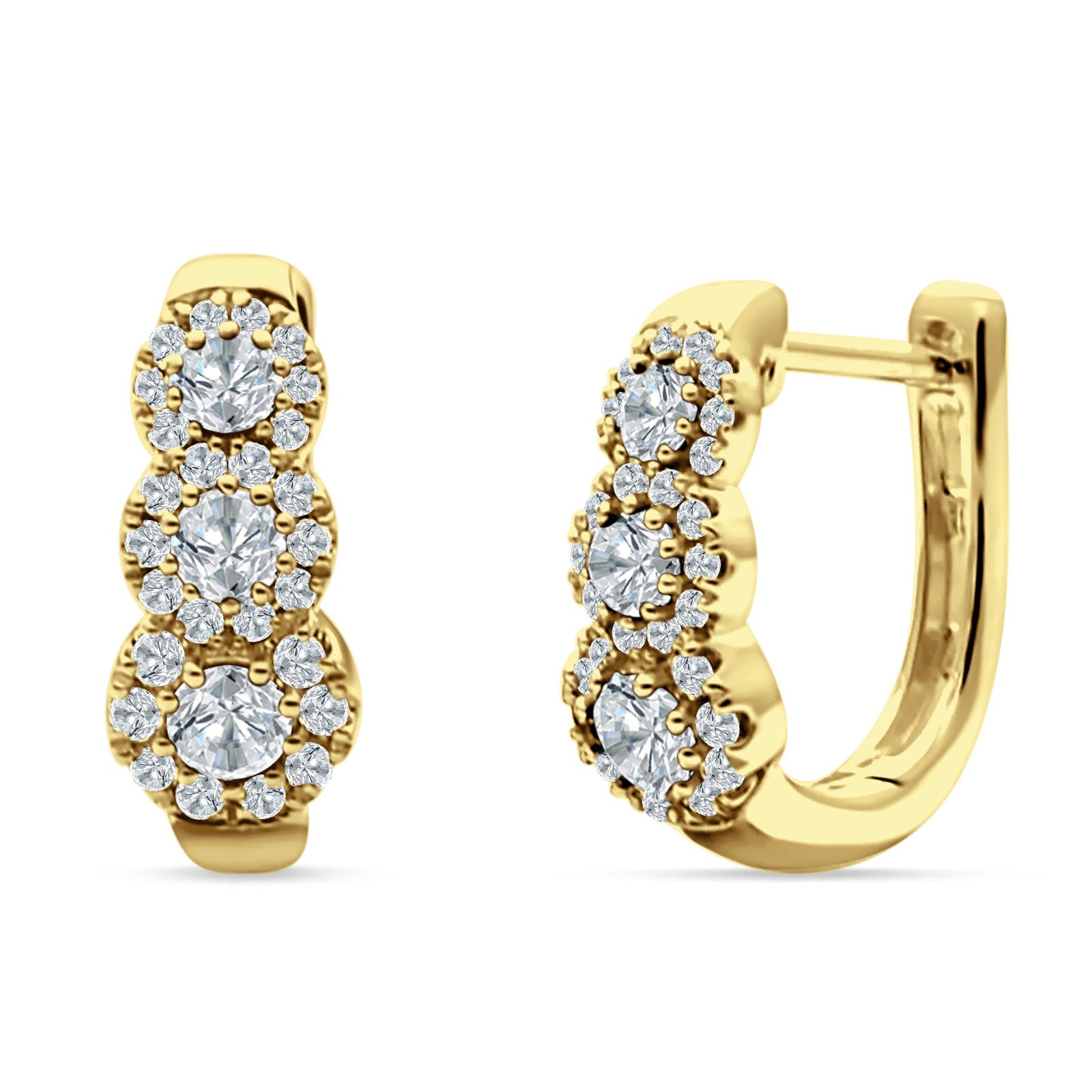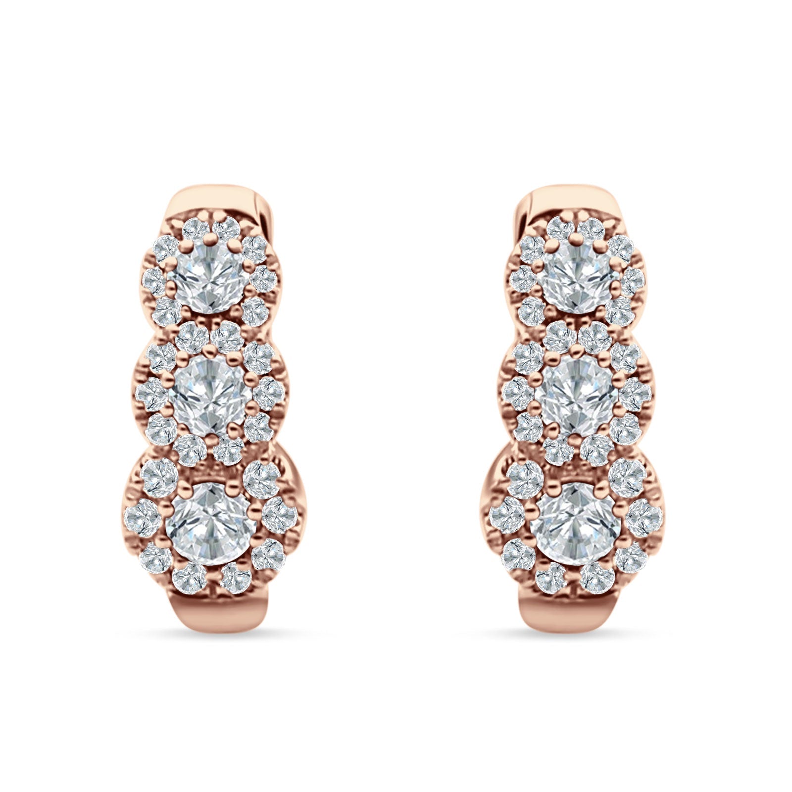 Style: Three Round Halo Floral Hoop Earring