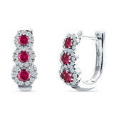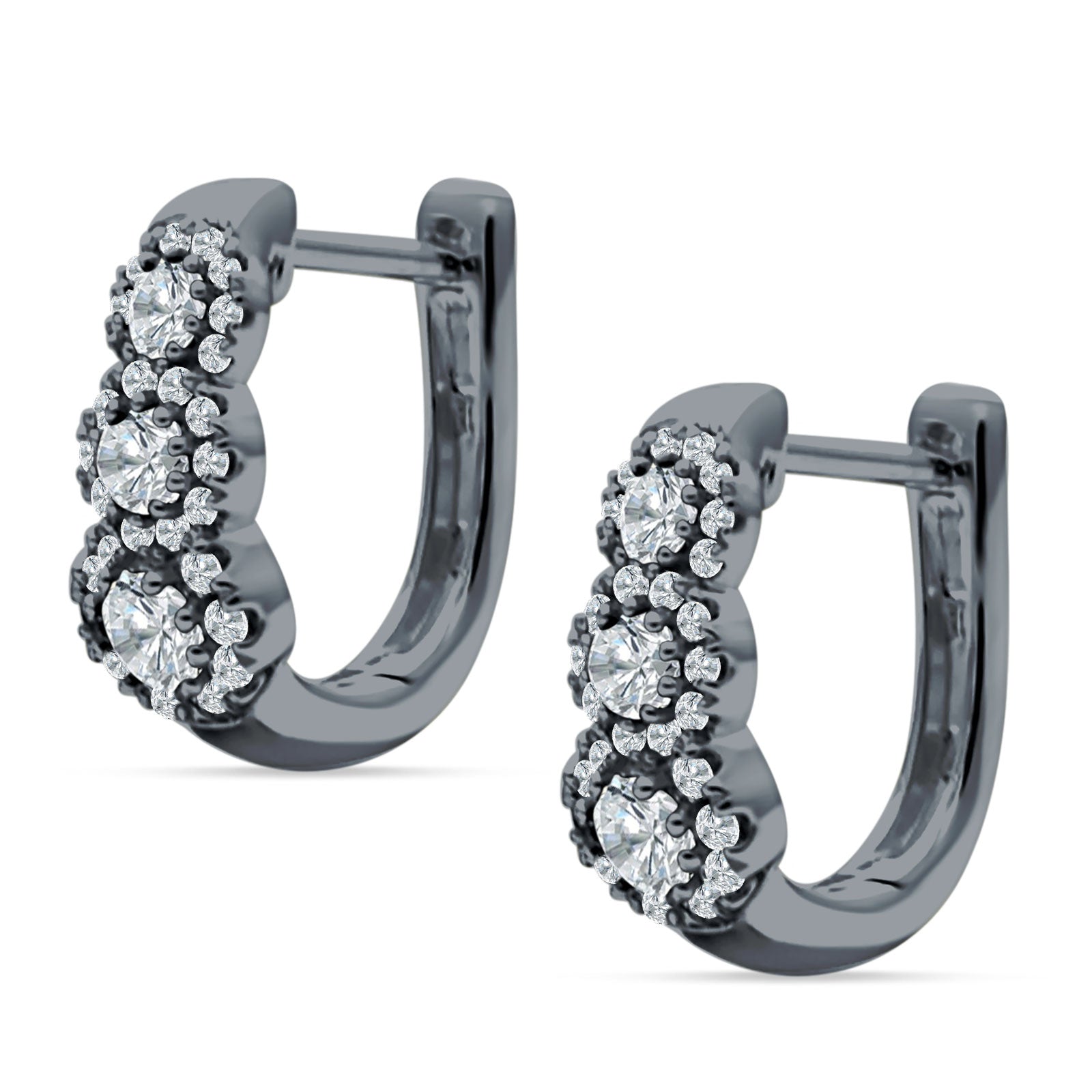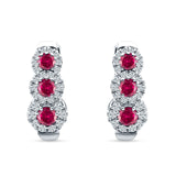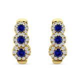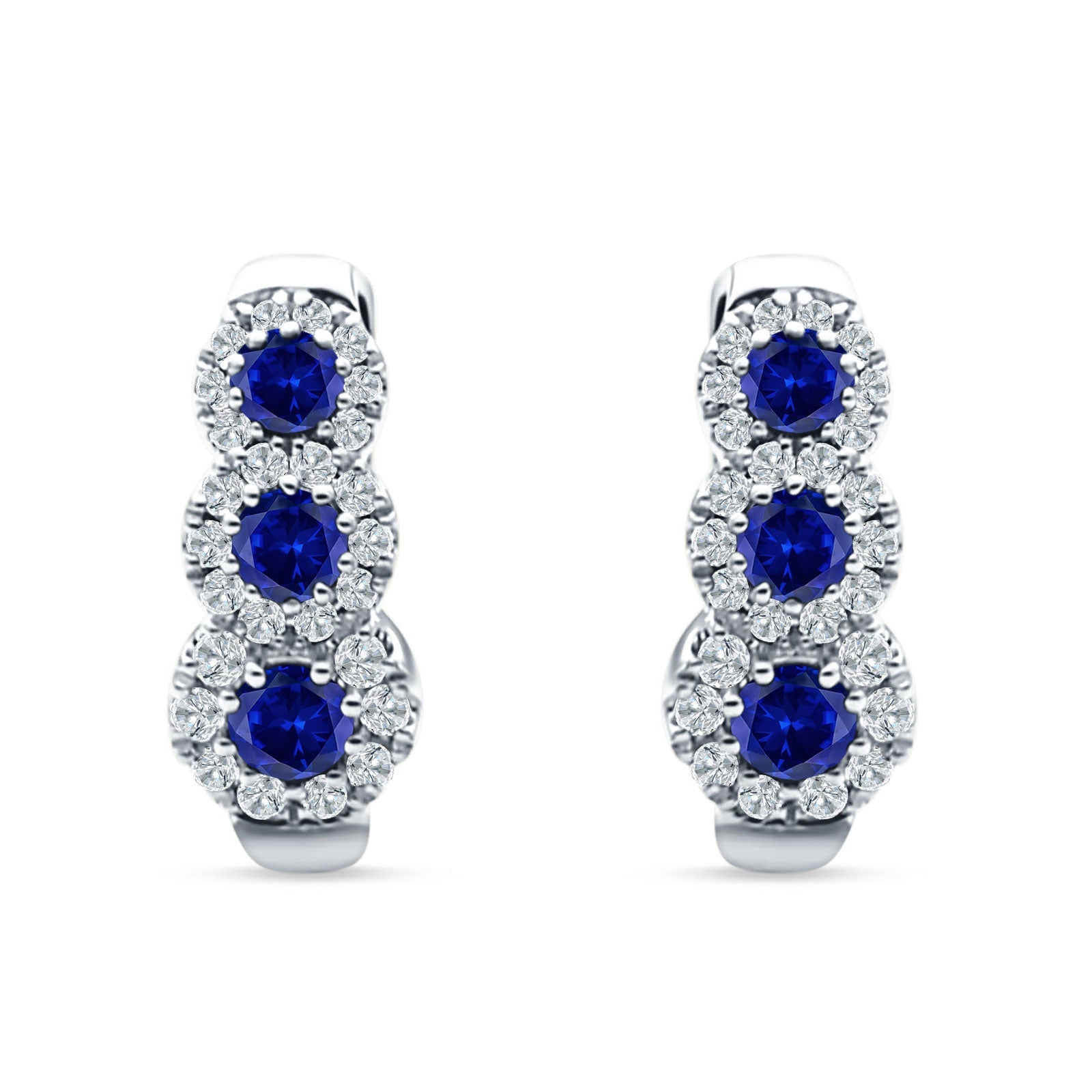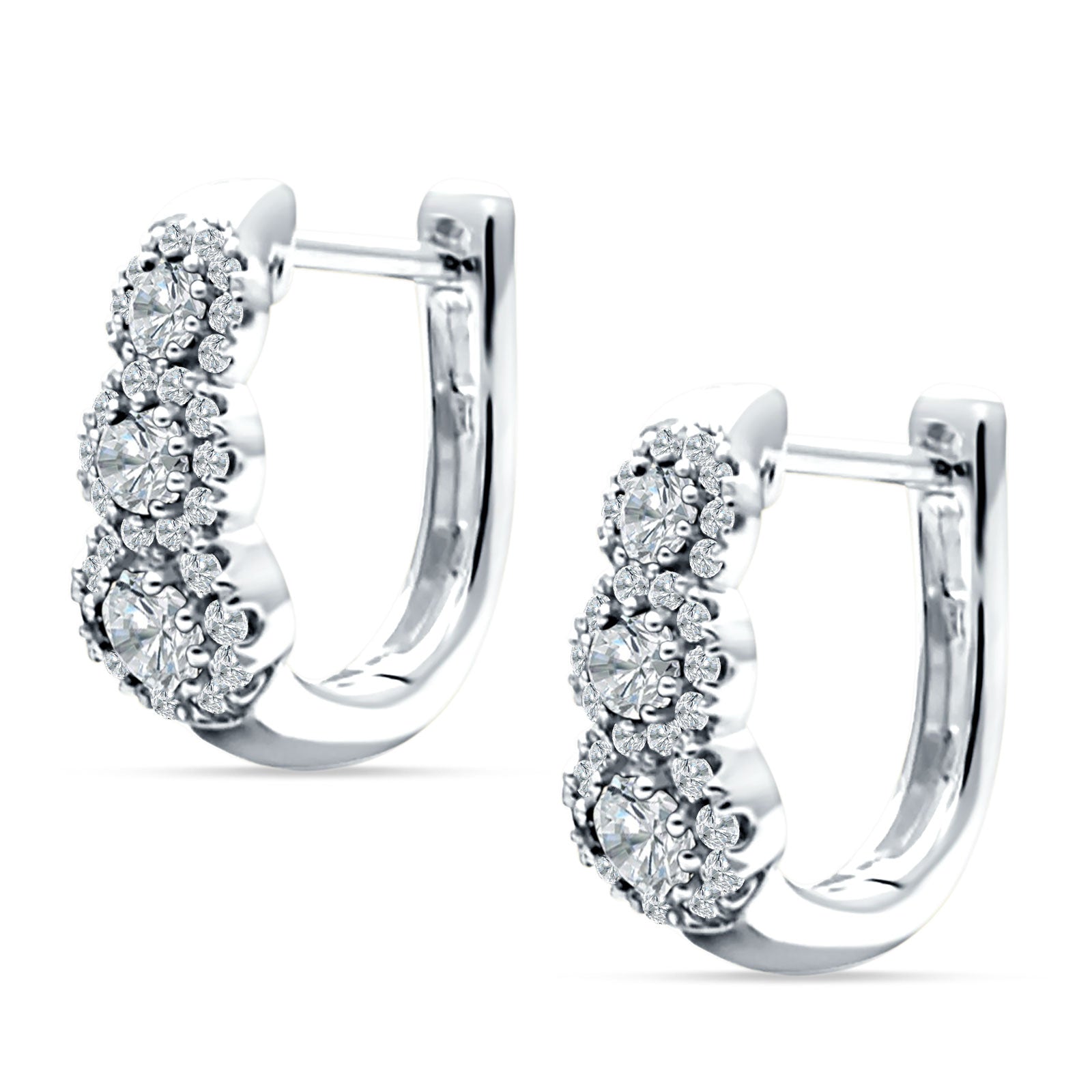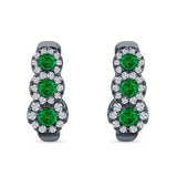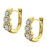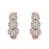 Three Round Halo Floral Hoop Earring Cubic Zirconia 925 Sterling Silver
