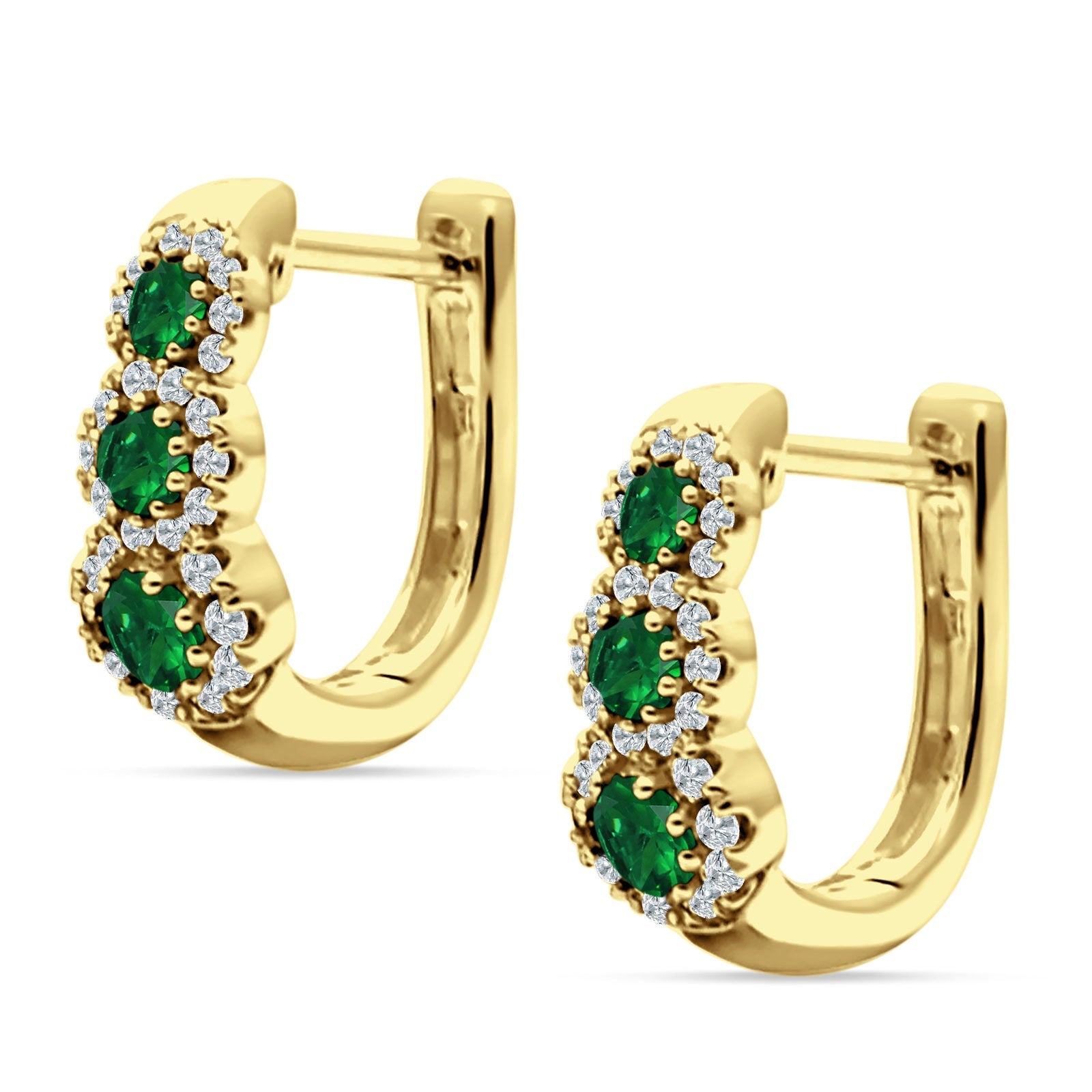 Green Emerald CZ Yellow Tone Silver