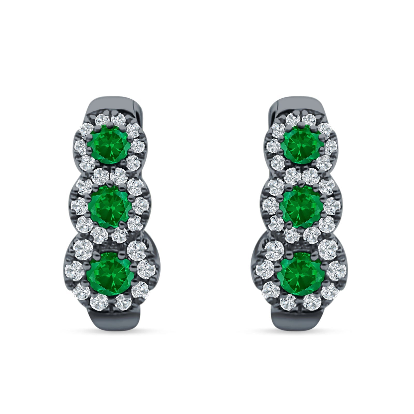 Green Emerald CZ Black Tone Silver