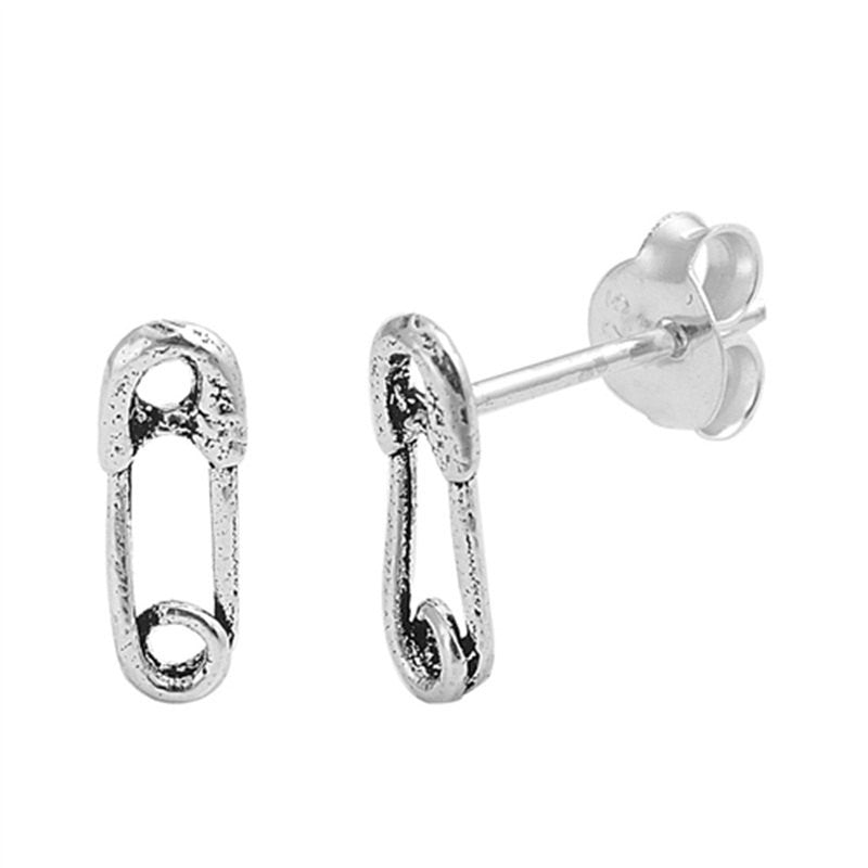 Simple Petite 10mm Small Tiny Cute Pair of Safety Pin Stud Post Earrings Solid 925 Sterling Silver Earrings Cartilage Piercing Kids Gift