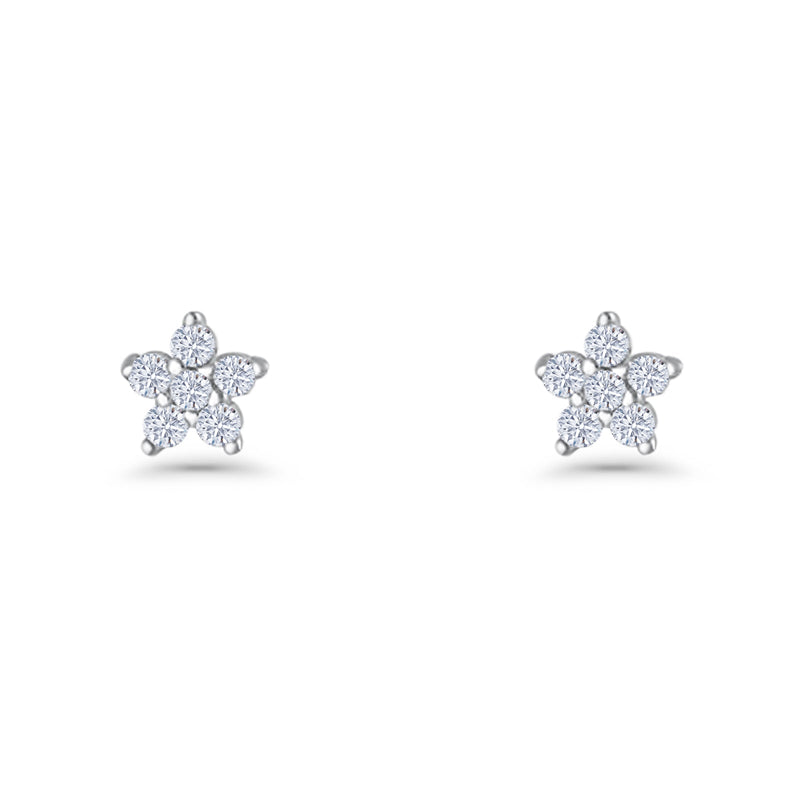 Star Flower Stud Earrings 3.5mm Cluster Cubic Zirconia 925 Sterling Silver