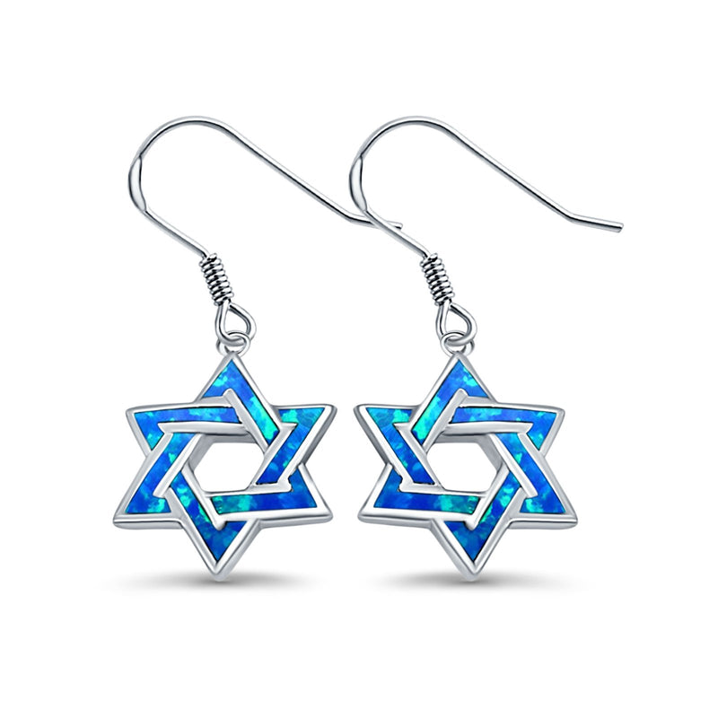 Star of David Drop Dangle Earrings Created Opal 925 Sterling Silver(21mm)
