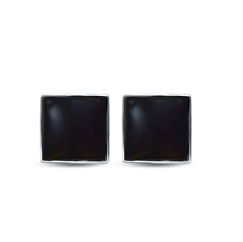 Square Shape Lab Blue Opal Inlay Solid 925 Sterling Silver Stud Post Earrings (6mm)