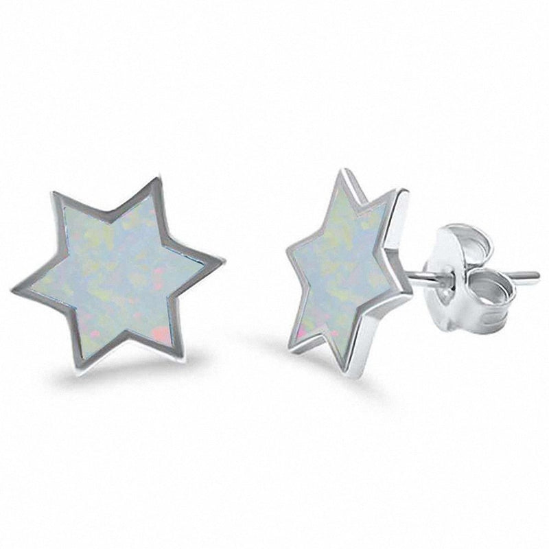 Star Stud Earrings Lab Created Opal 925 Sterling Silver (6mm)