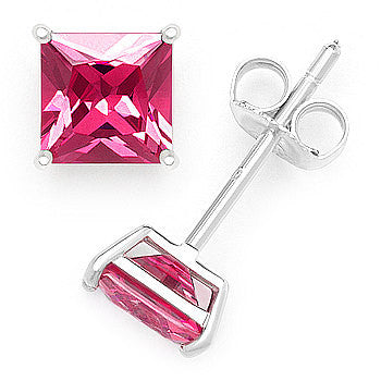 Square Stud Earrings Princess Cut Lab Created Opal 925 Sterling Silver (6mm)