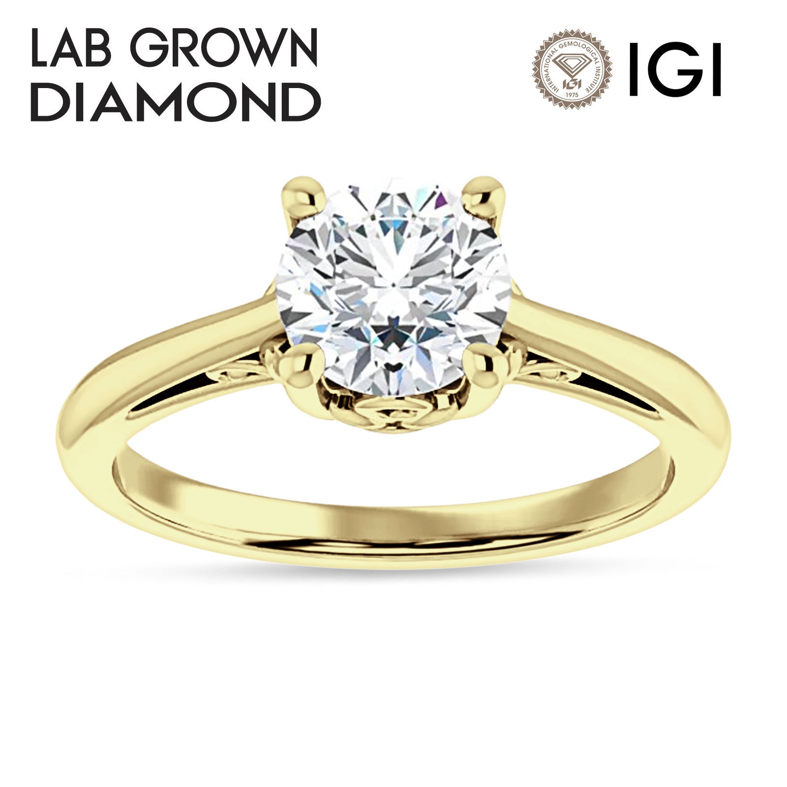 10K Gold IGI Certified Round 3 Carat Lab Grown Diamond Art Deco Solitaire Ring