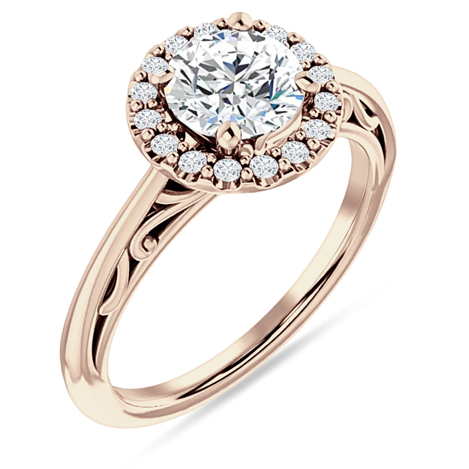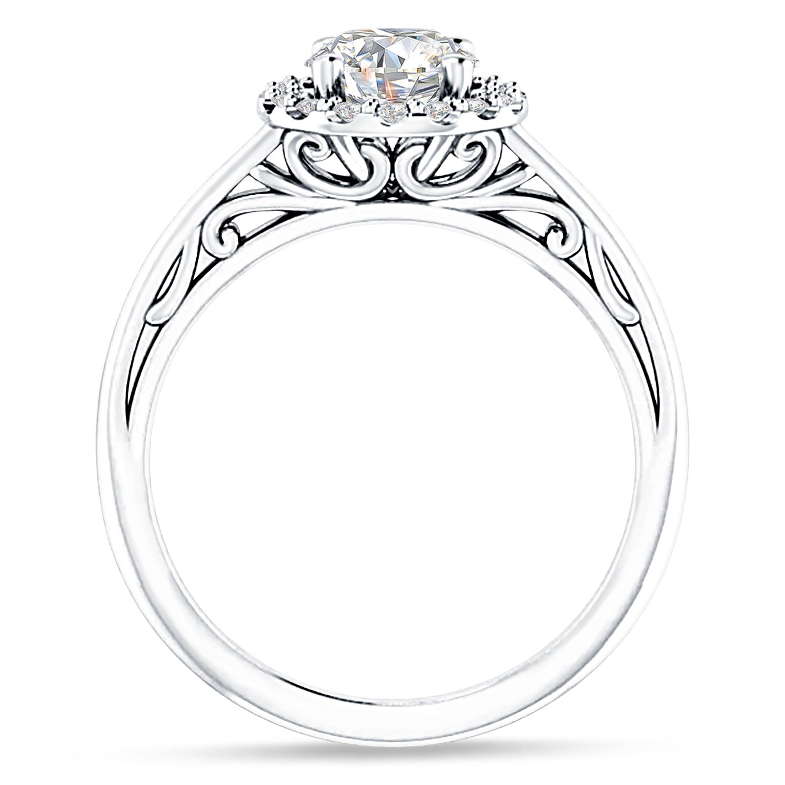 10K Gold IGI Certified Round 3 Carat Lab Grown Diamond Art Deco Halo Filigree Ring