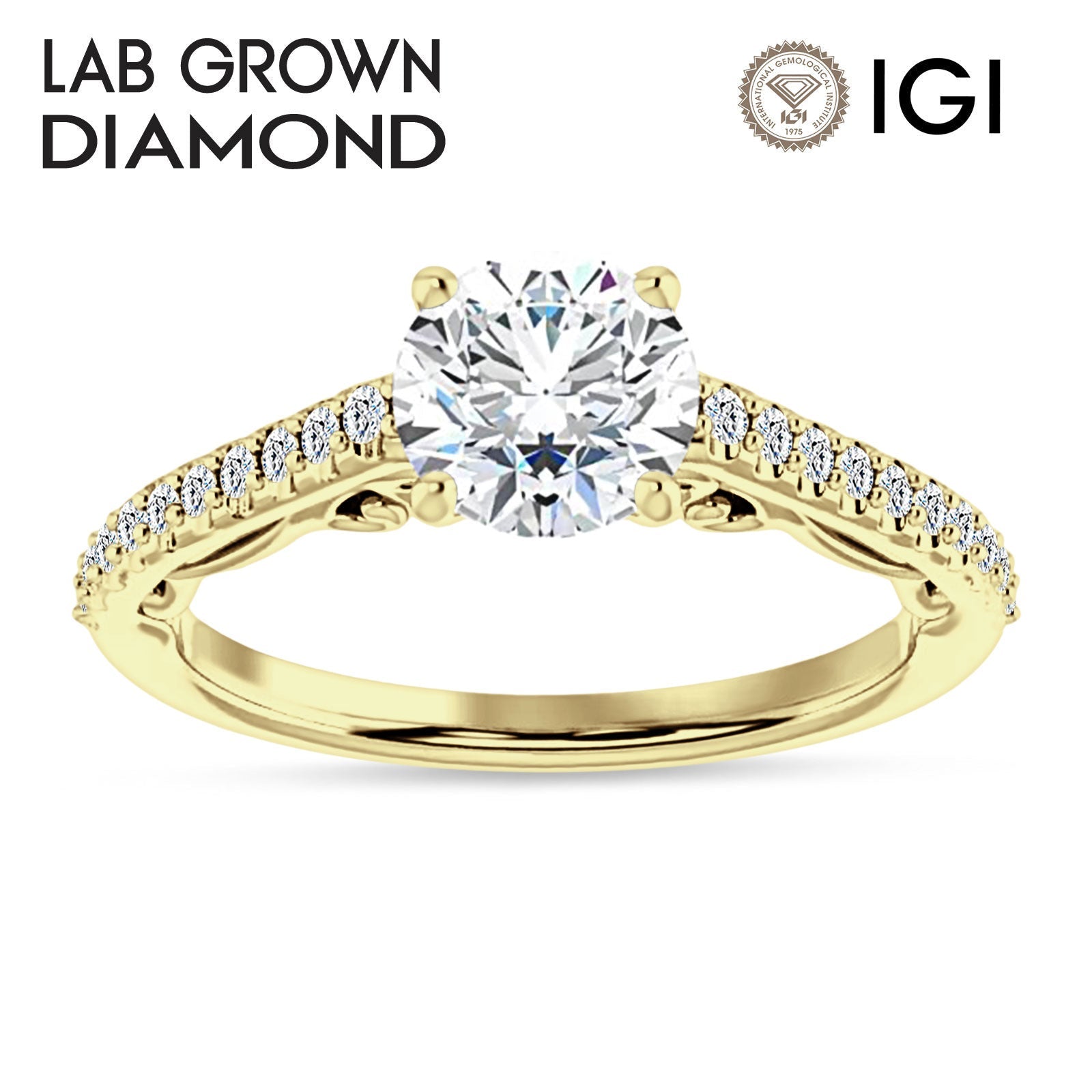 This lab grown diamond ring is available in three different carat weights and also comes in a choice of various metal types.(Tarnish Resistant Sterling Silver, 10K Gold & 14K Gold)