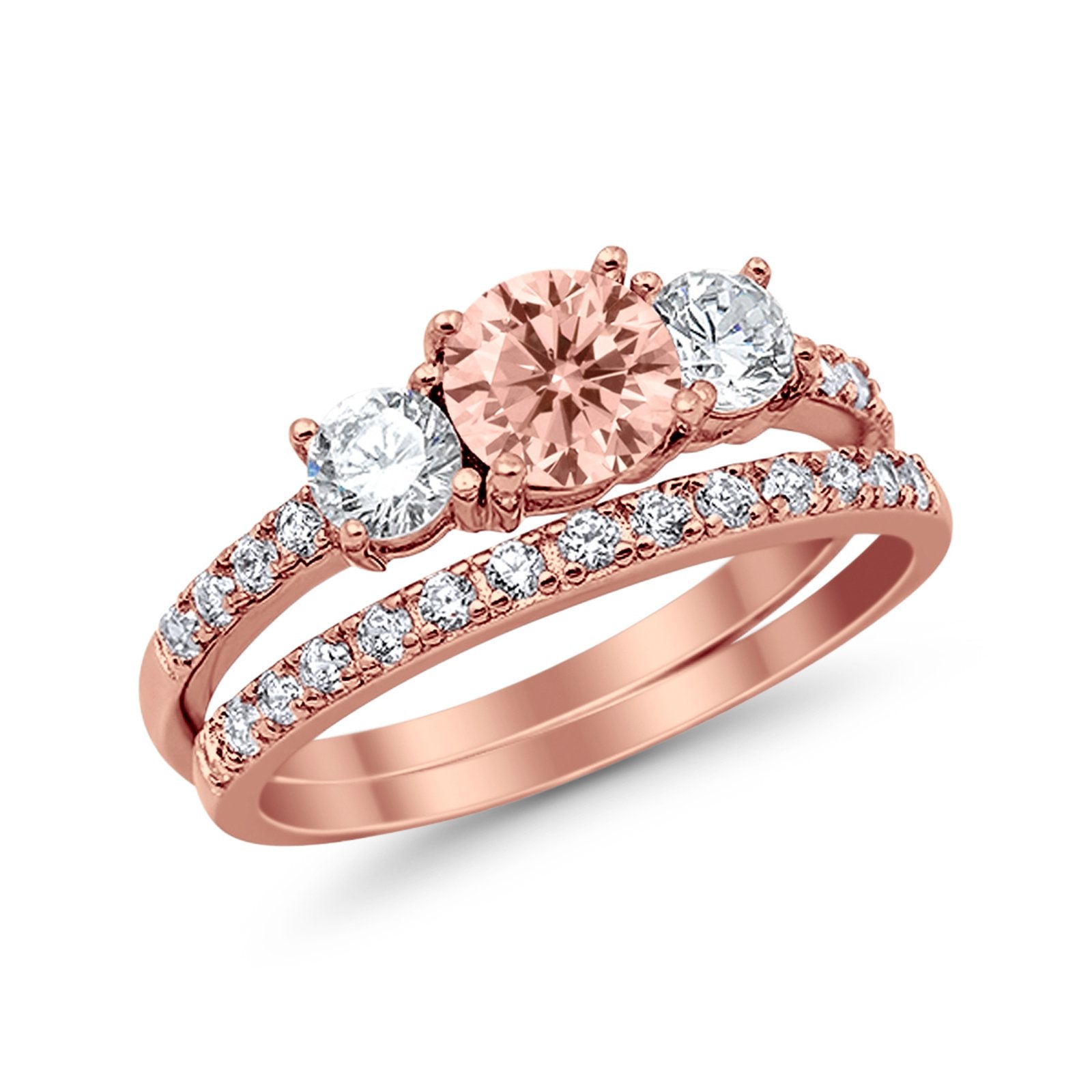CZ & Blue Sapphire CZ Rose Tone Silver