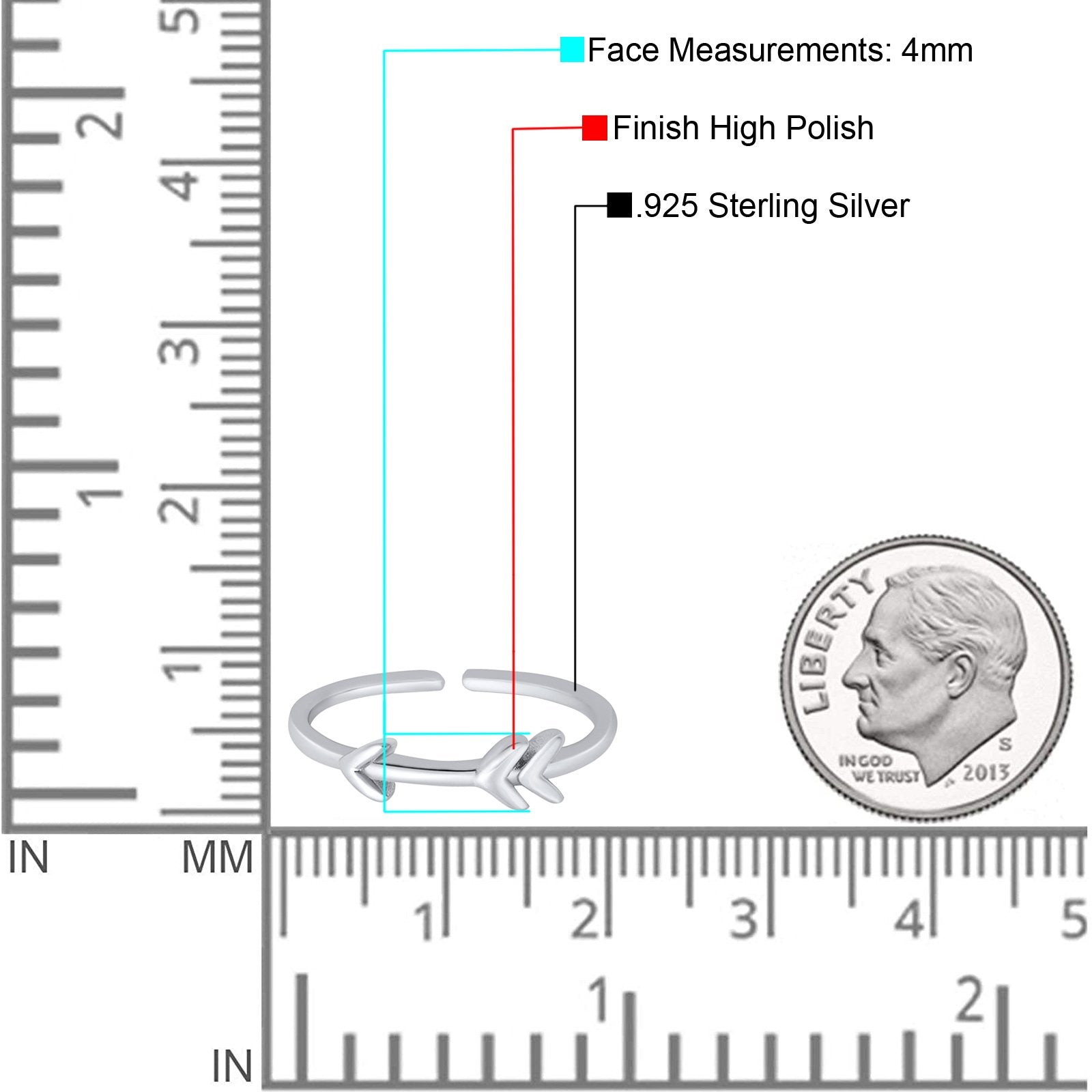 Arrow Plain Toe Ring Adjustable Band 925 Sterling Silver (4mm)