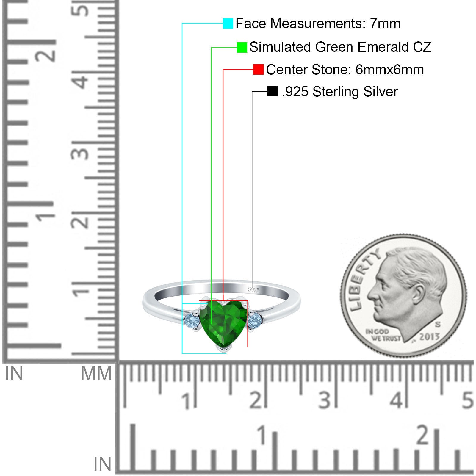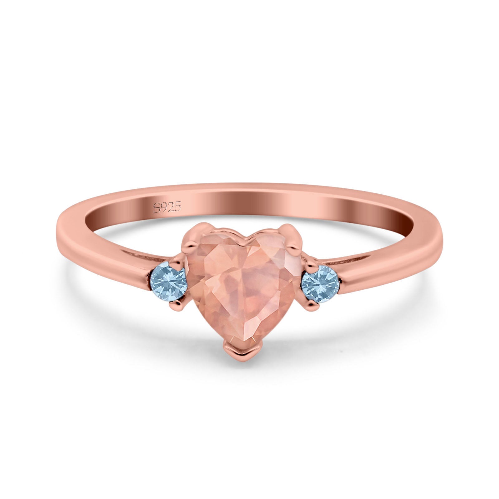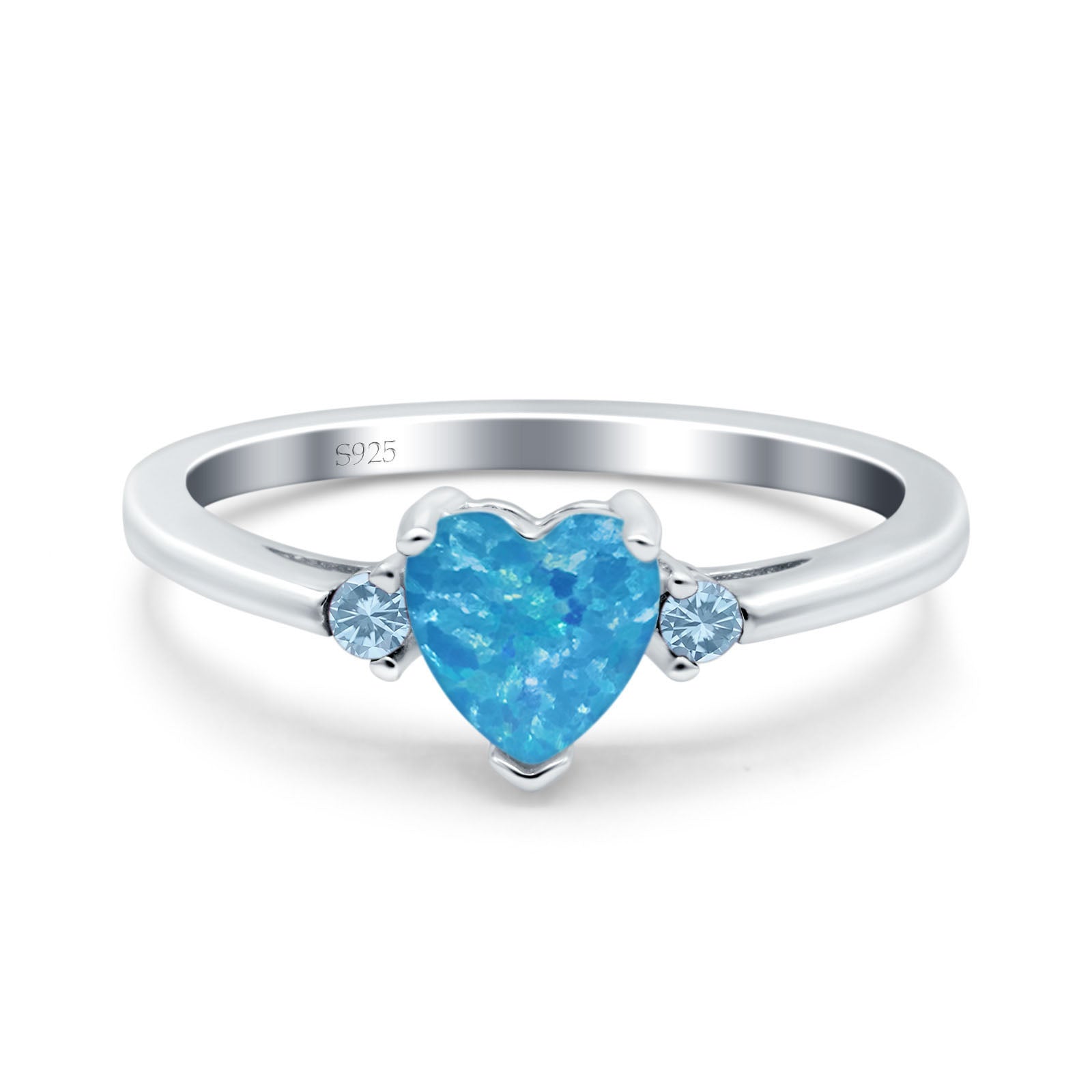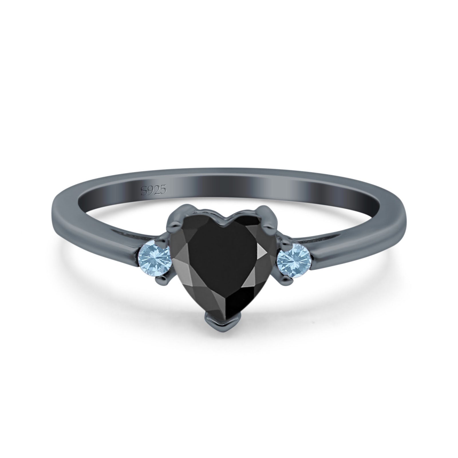Art Deco Heart Three Stone Wedding Bridal Ring Aquamarine Simulated Cubic Zirconia 925 Sterling Silver