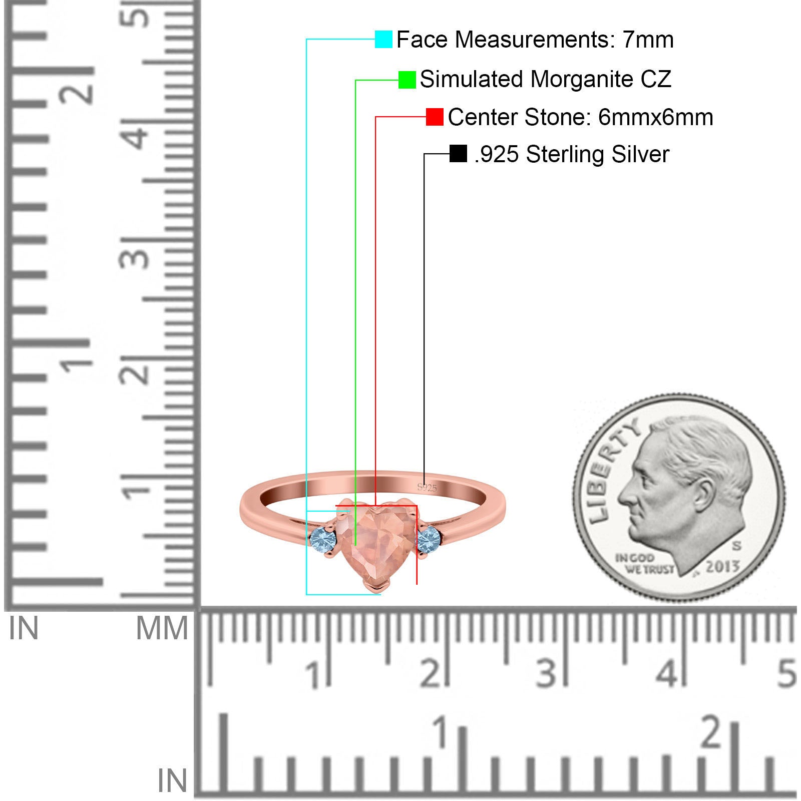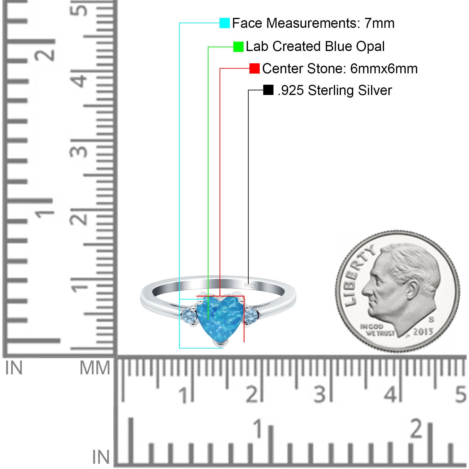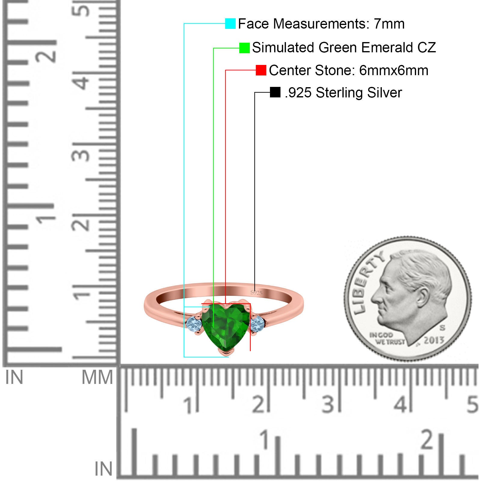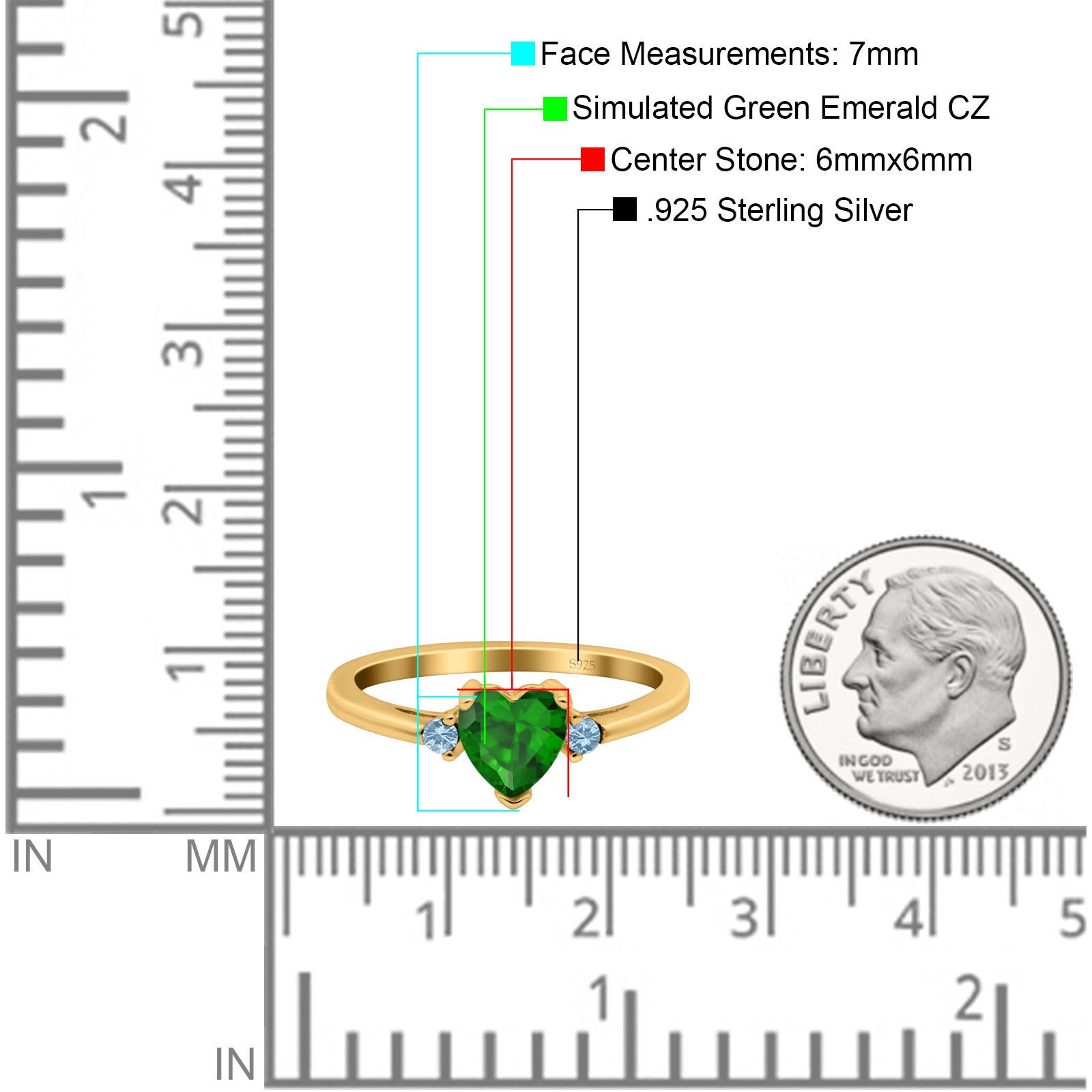 Art Deco Heart Three Stone Wedding Bridal Ring Aquamarine Simulated Cubic Zirconia 925 Sterling Silver