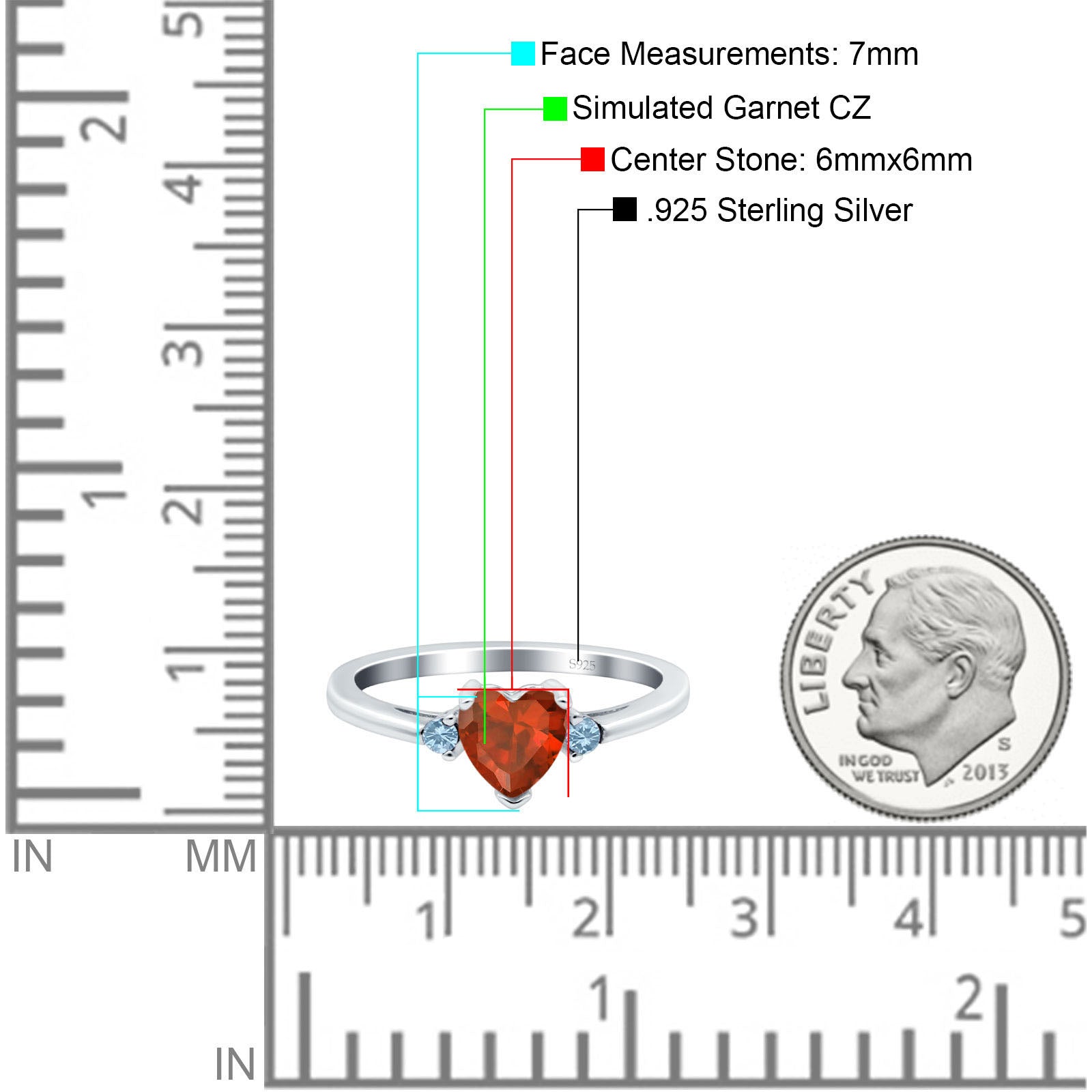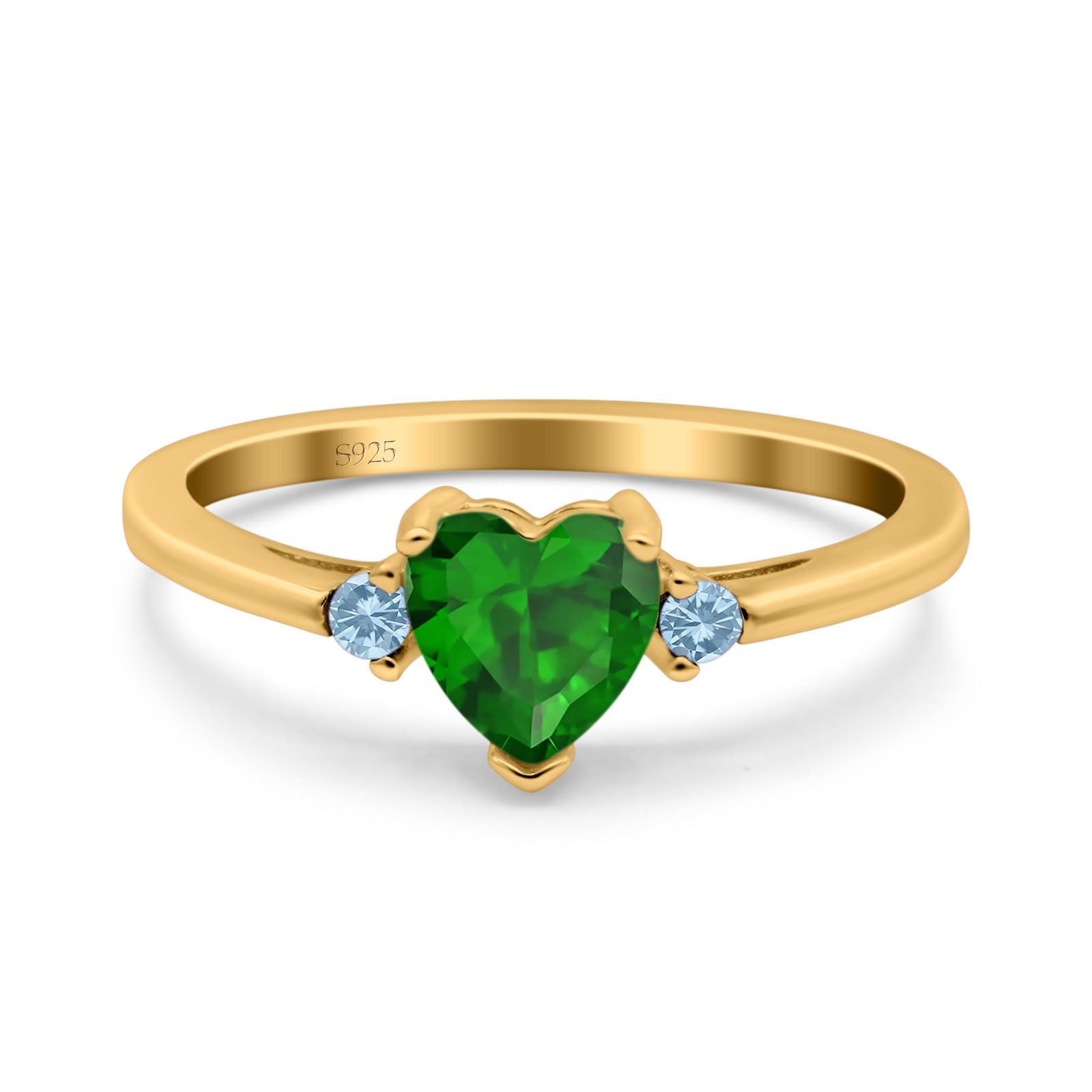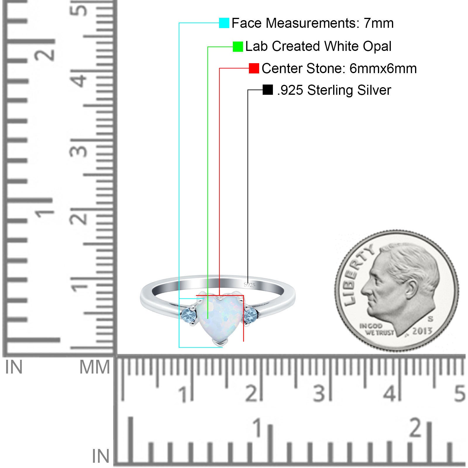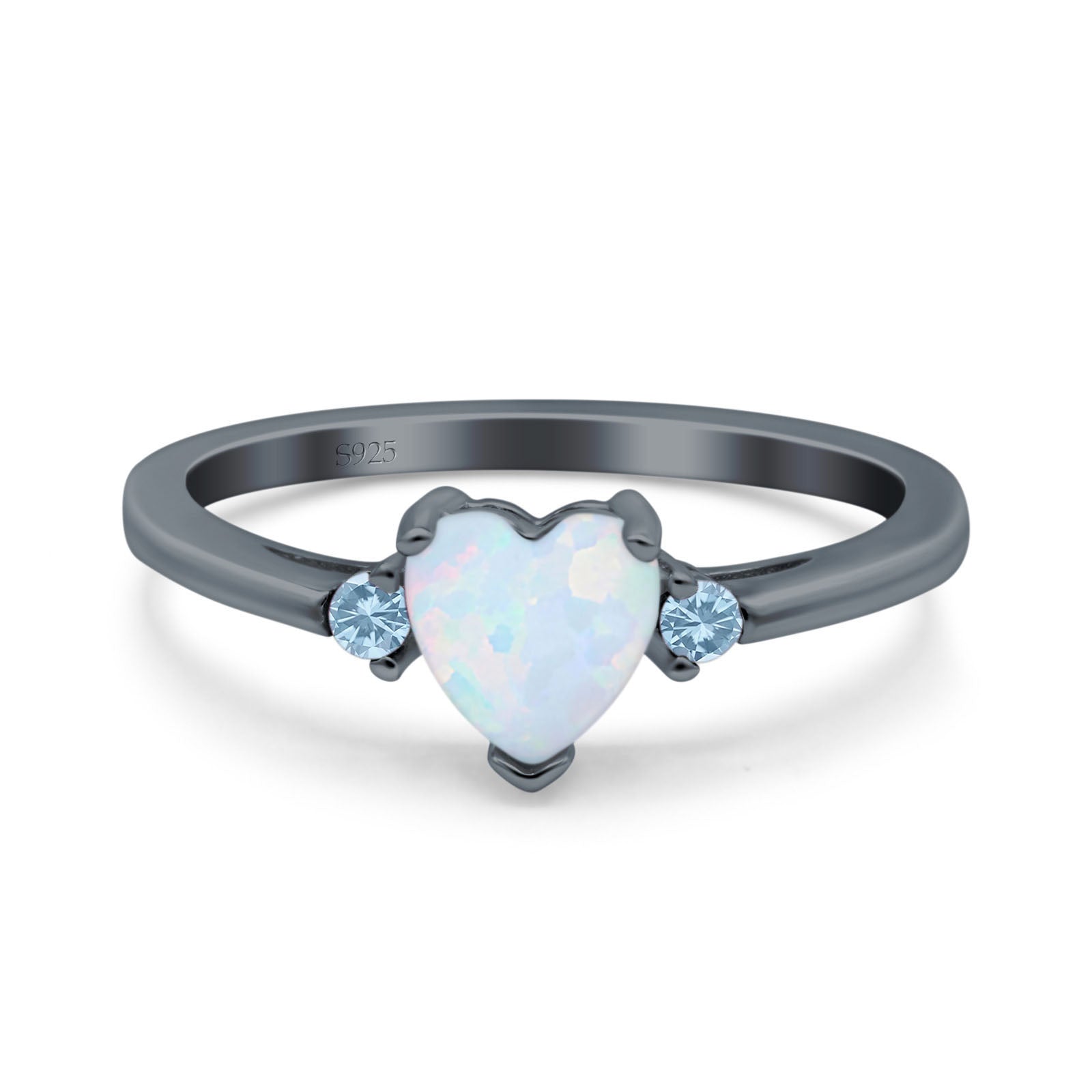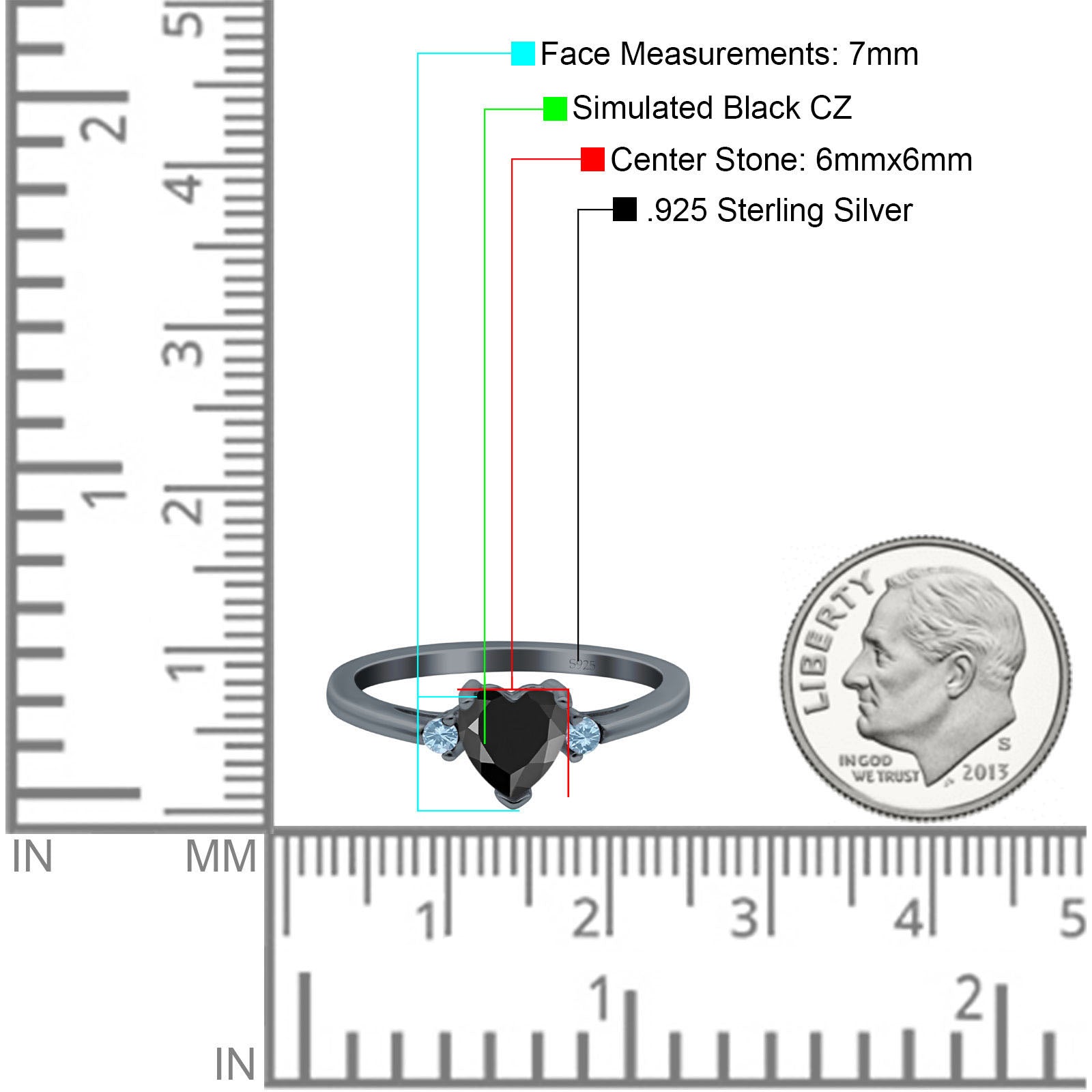 Art Deco Heart Three Stone Wedding Bridal Ring Aquamarine Simulated Cubic Zirconia 925 Sterling Silver