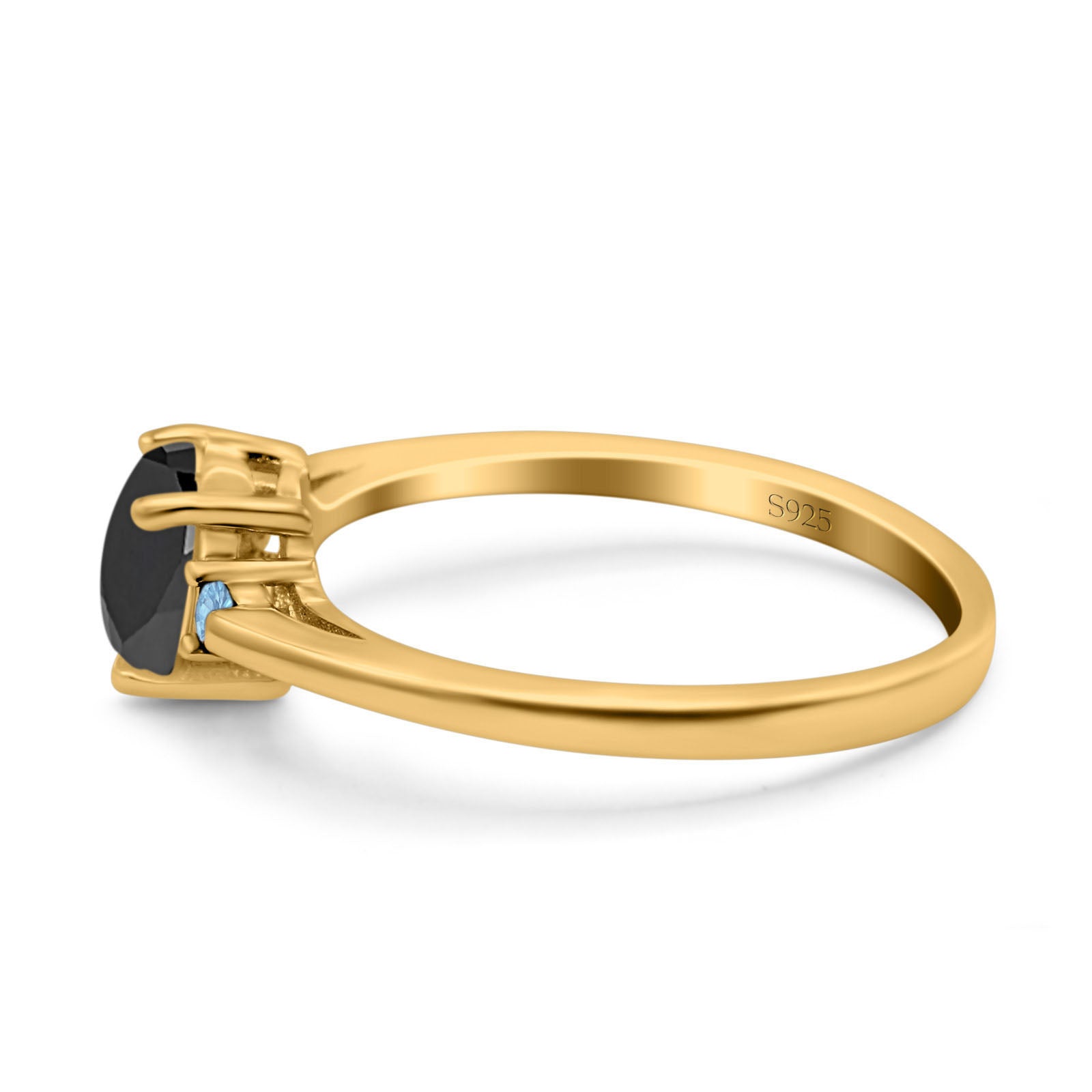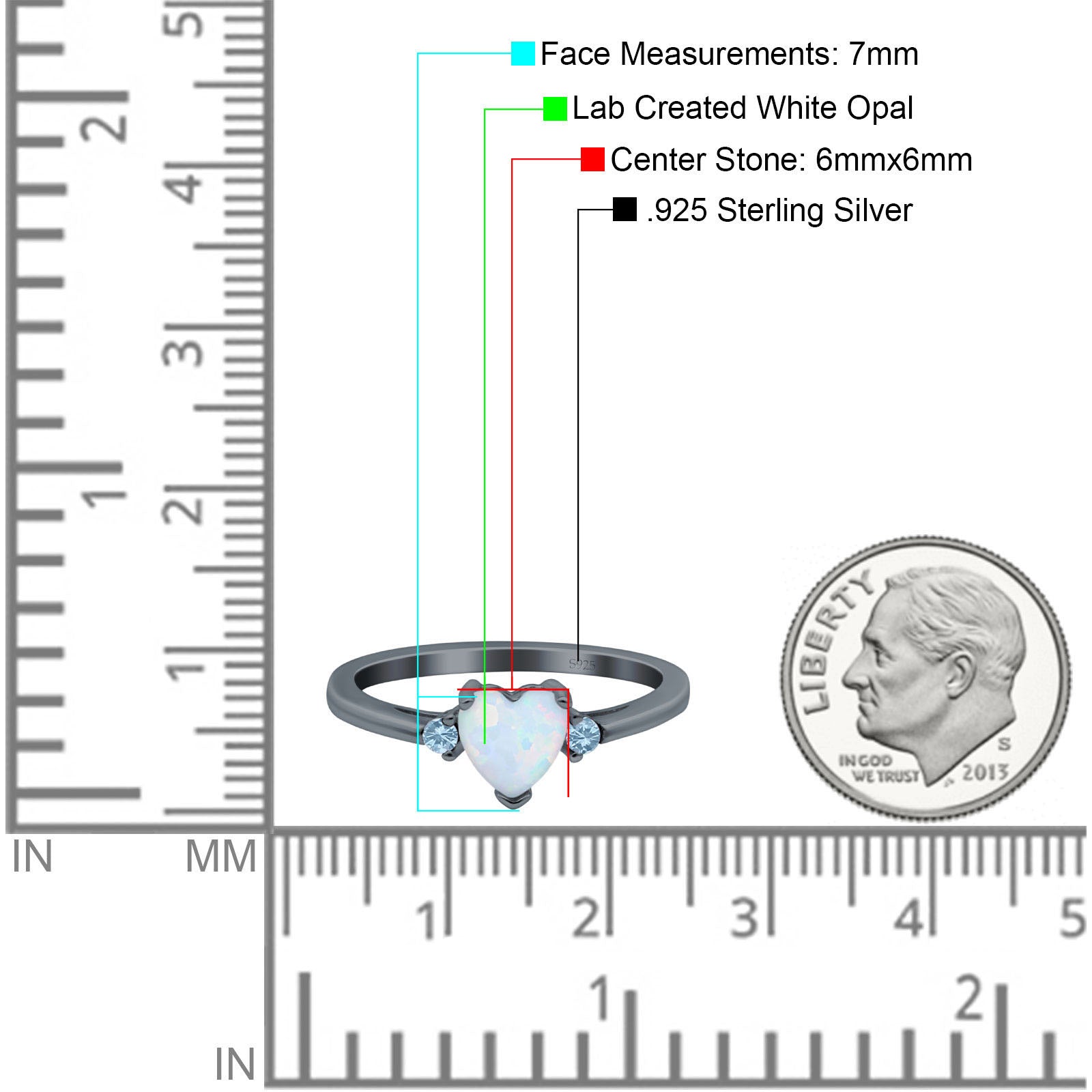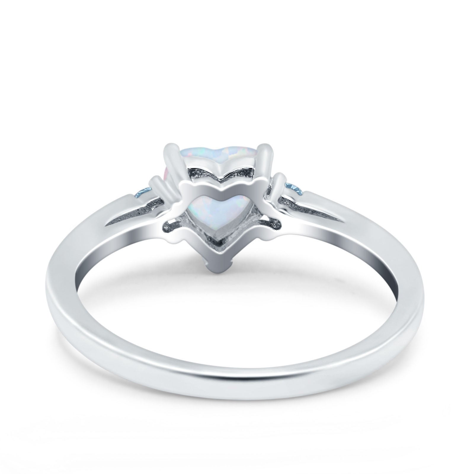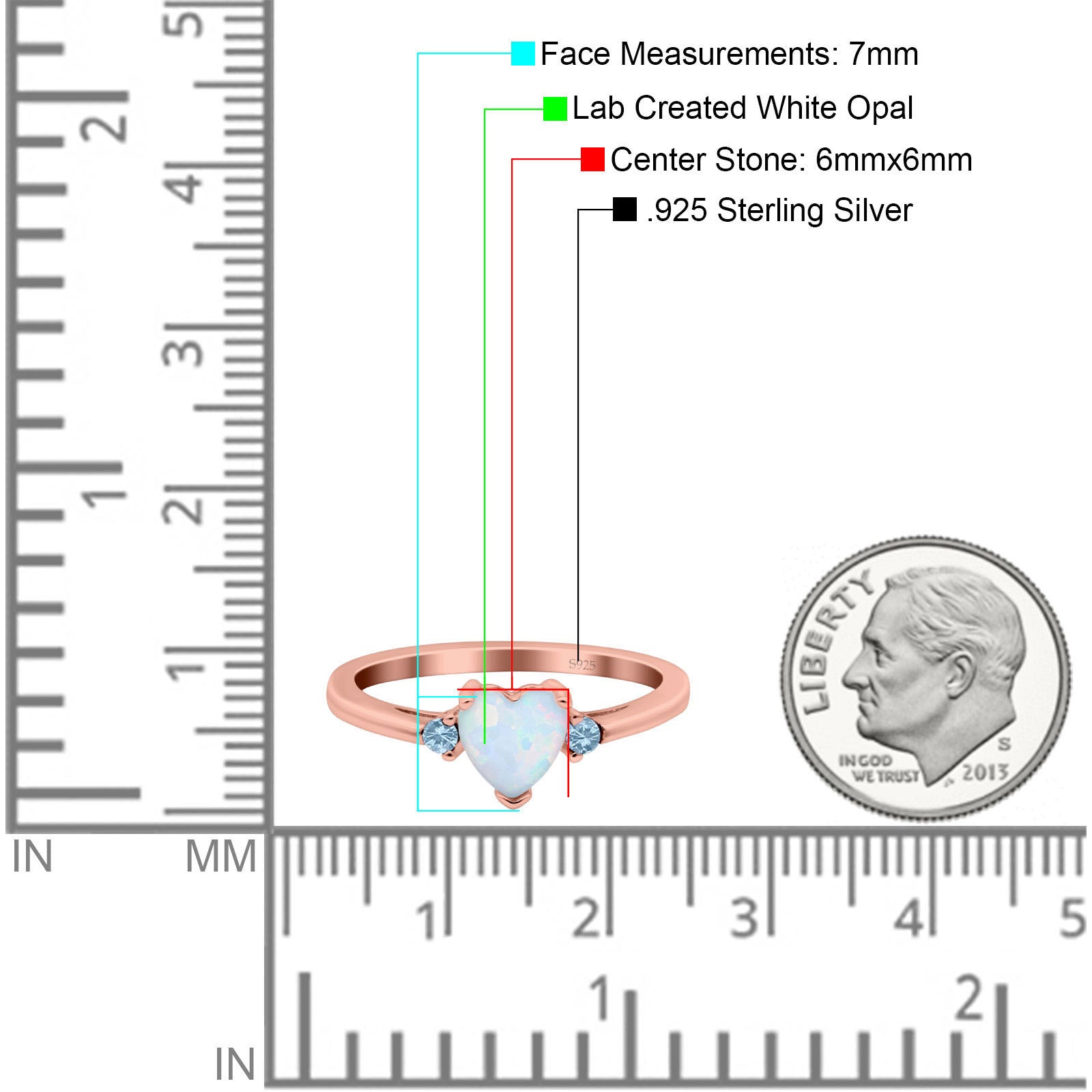 Art Deco Heart Three Stone Wedding Bridal Ring Aquamarine Simulated Cubic Zirconia 925 Sterling Silver