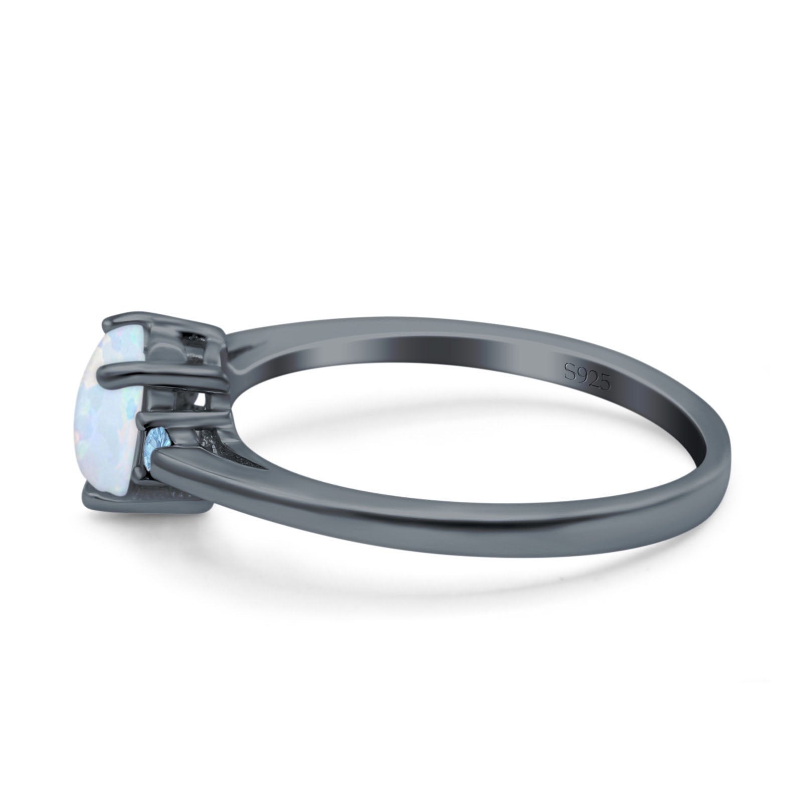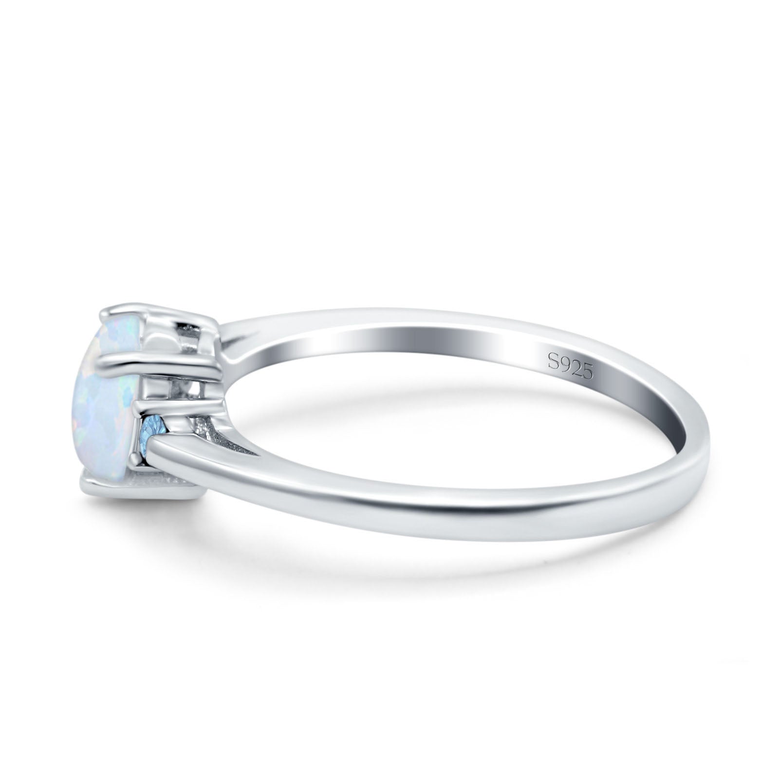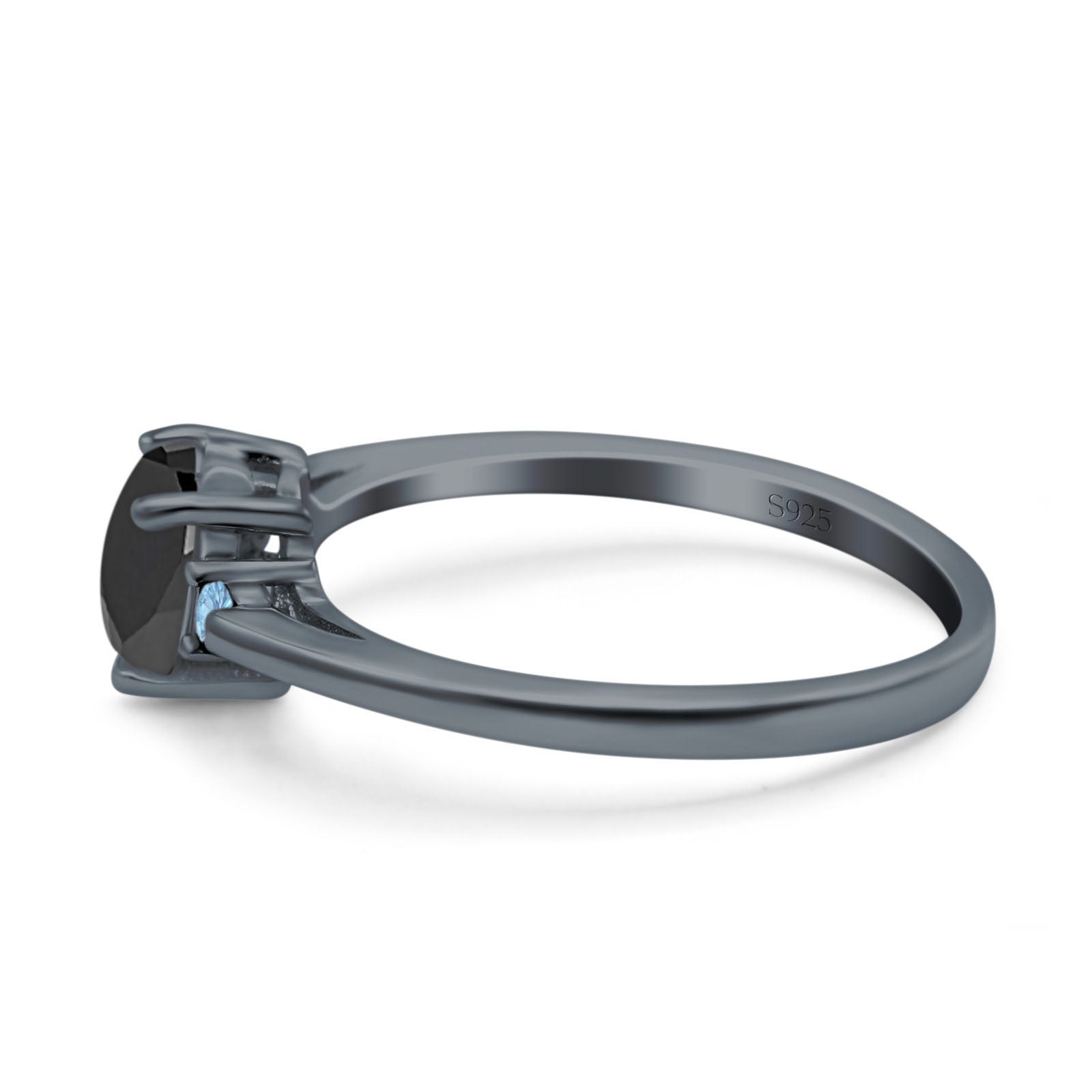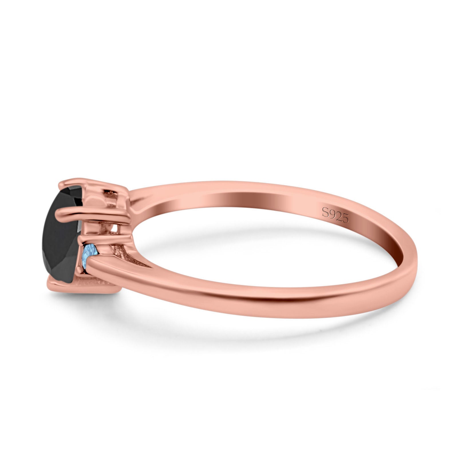 Art Deco Heart Three Stone Wedding Bridal Ring Aquamarine Simulated Cubic Zirconia 925 Sterling Silver