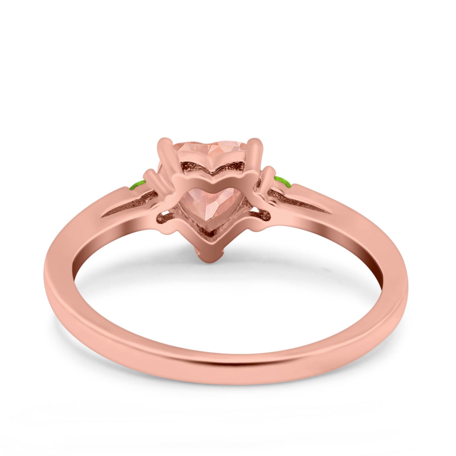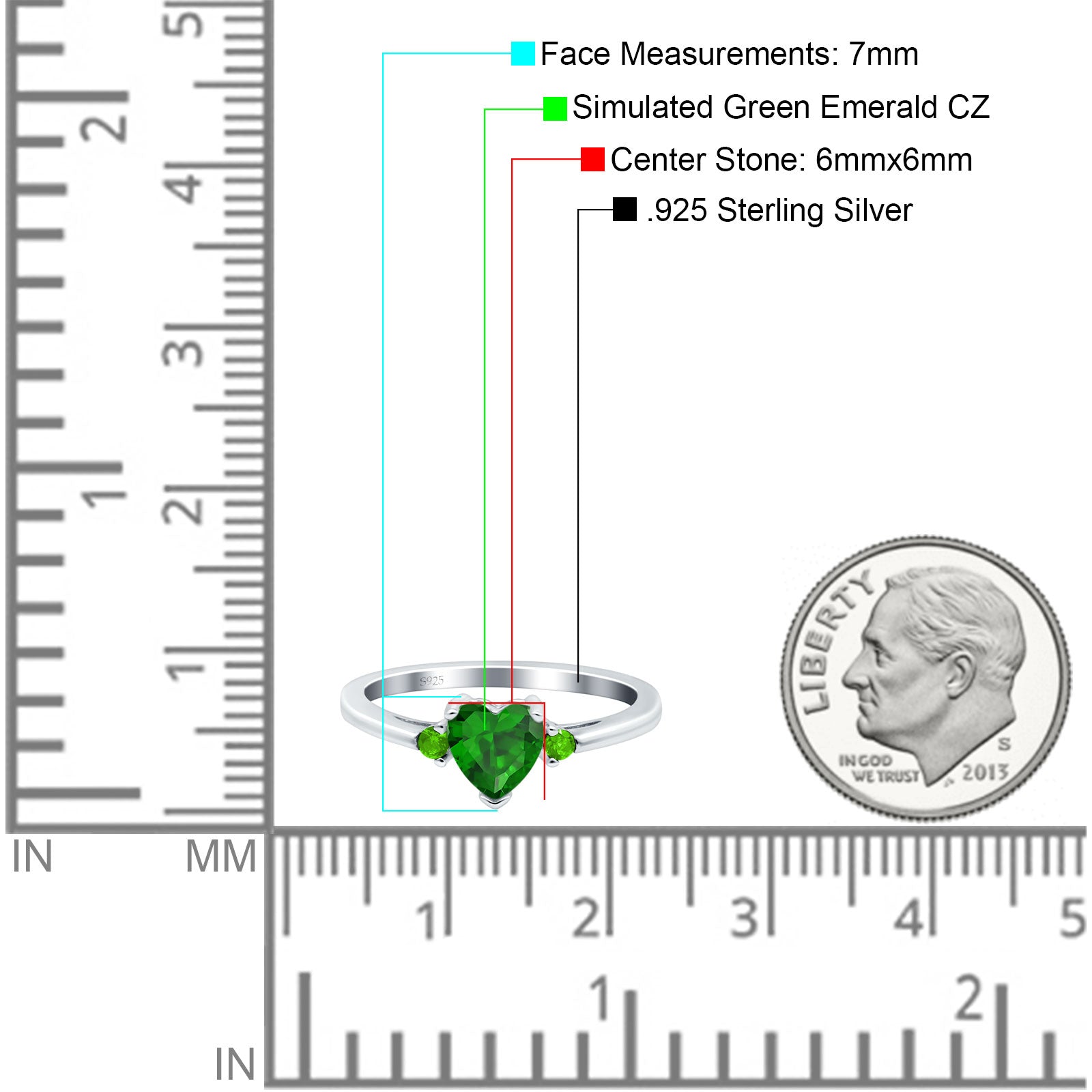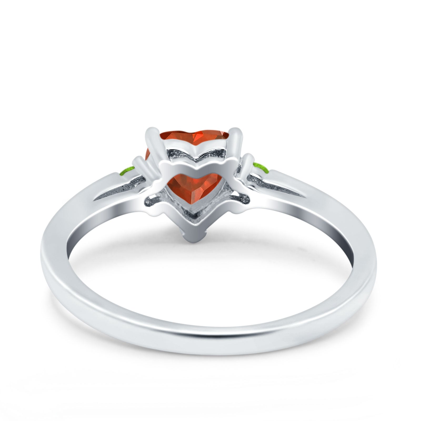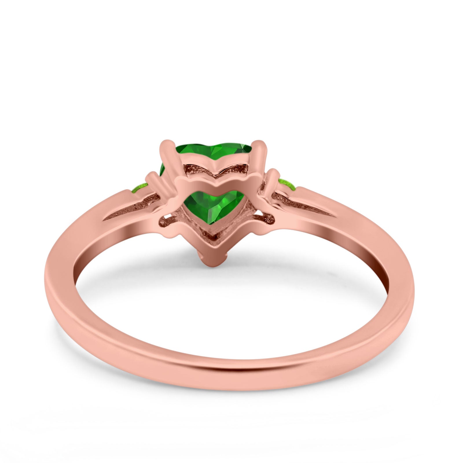 Art Deco Heart Three Stone Wedding Bridal Ring Peridot Simulated Cubic Zirconia 925 Sterling Silver