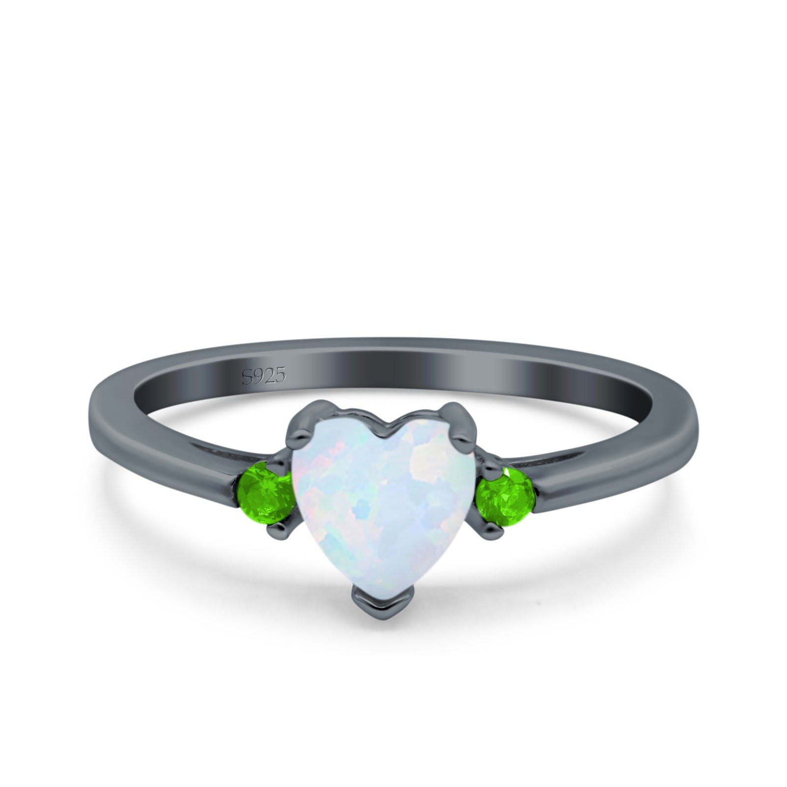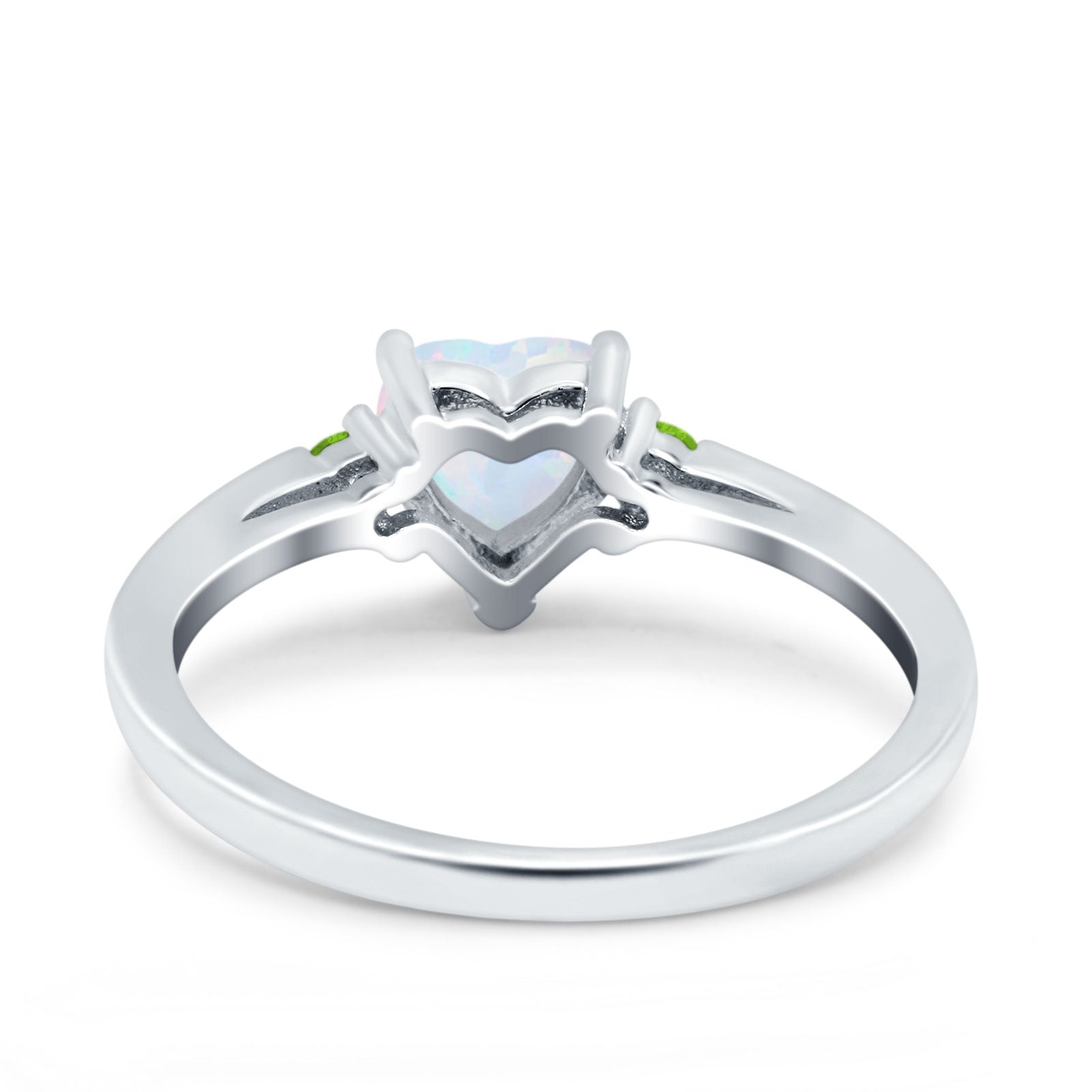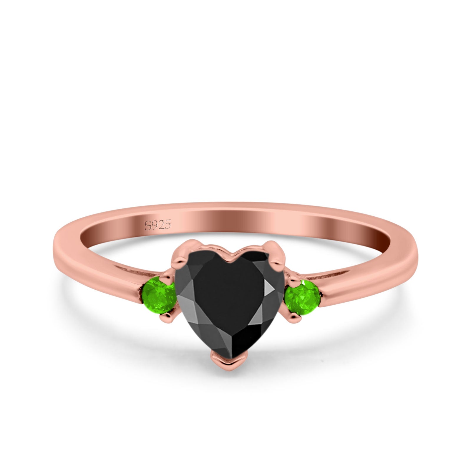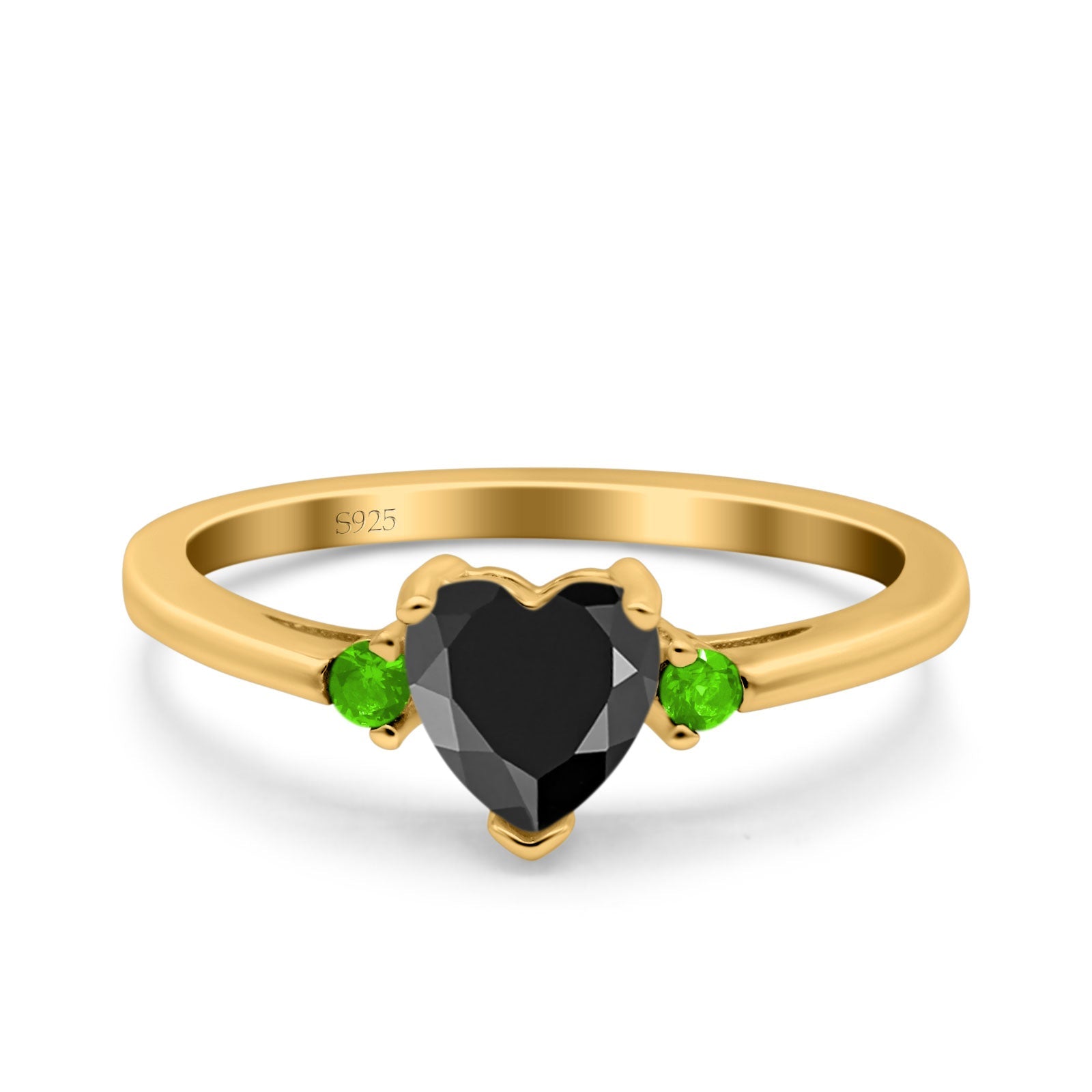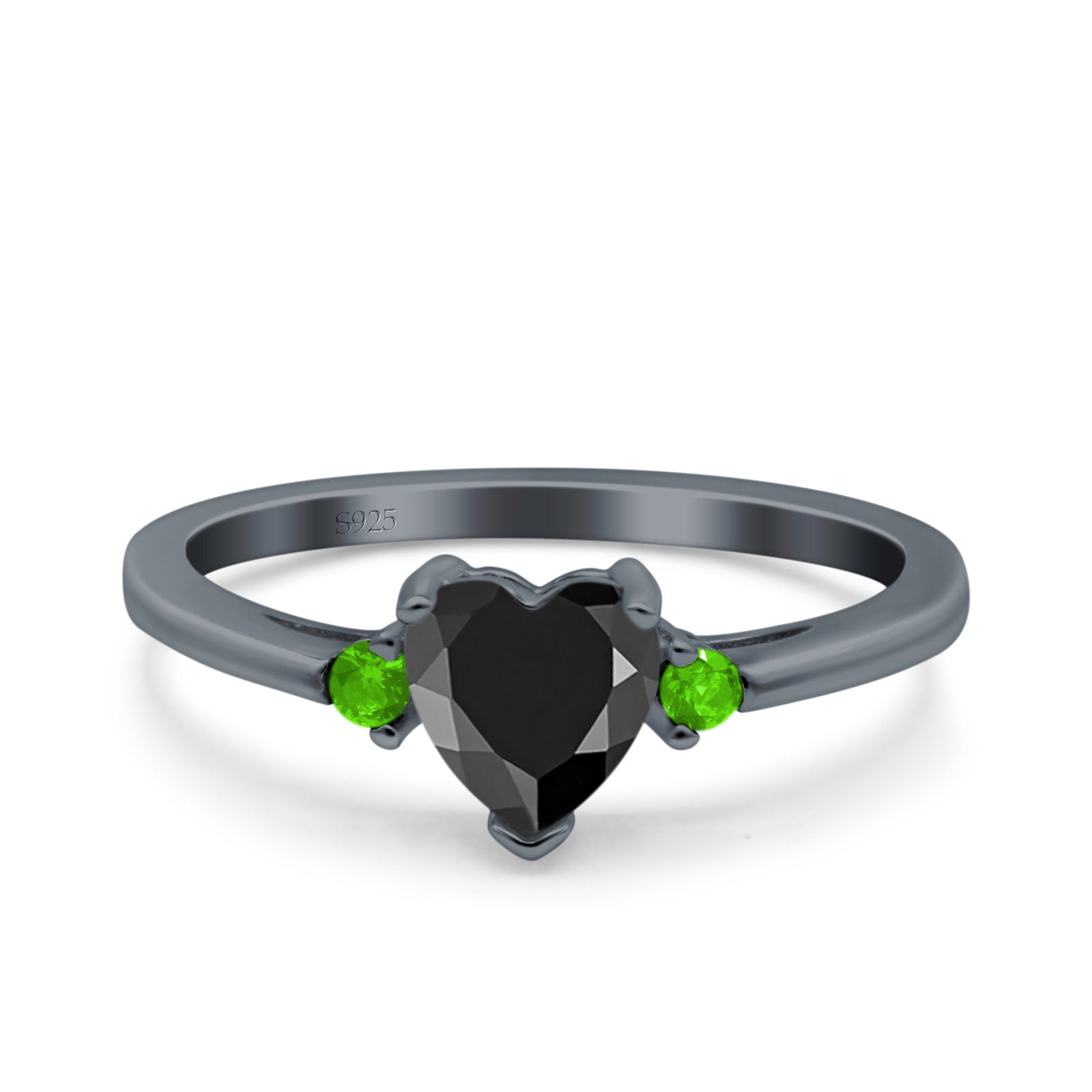 Art Deco Heart Three Stone Wedding Bridal Ring Peridot Simulated Cubic Zirconia 925 Sterling Silver