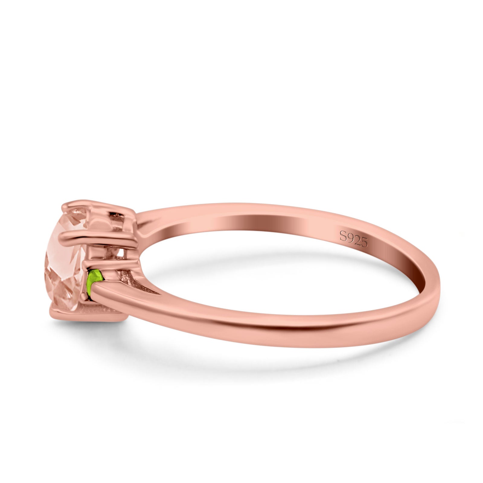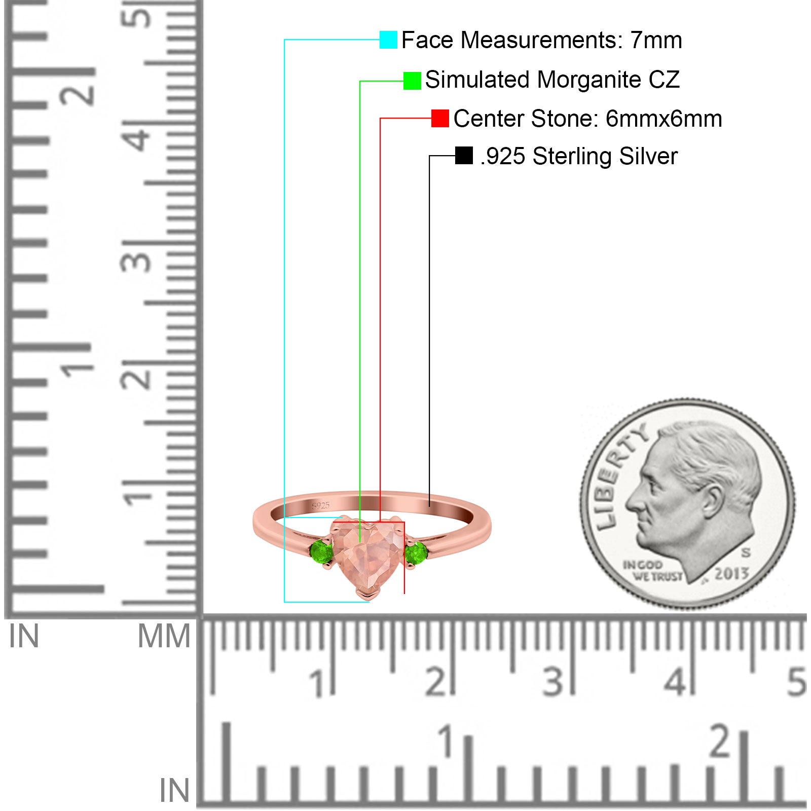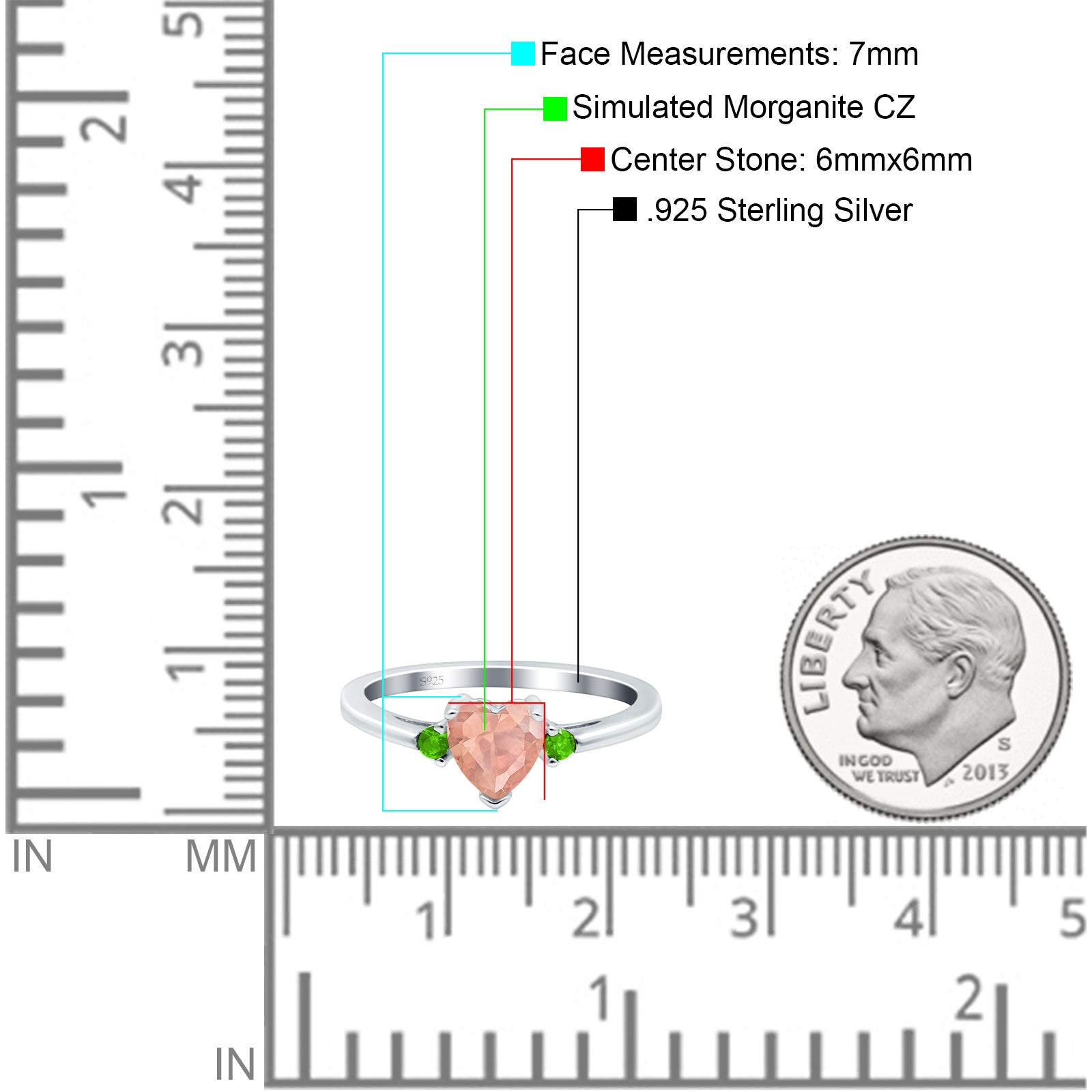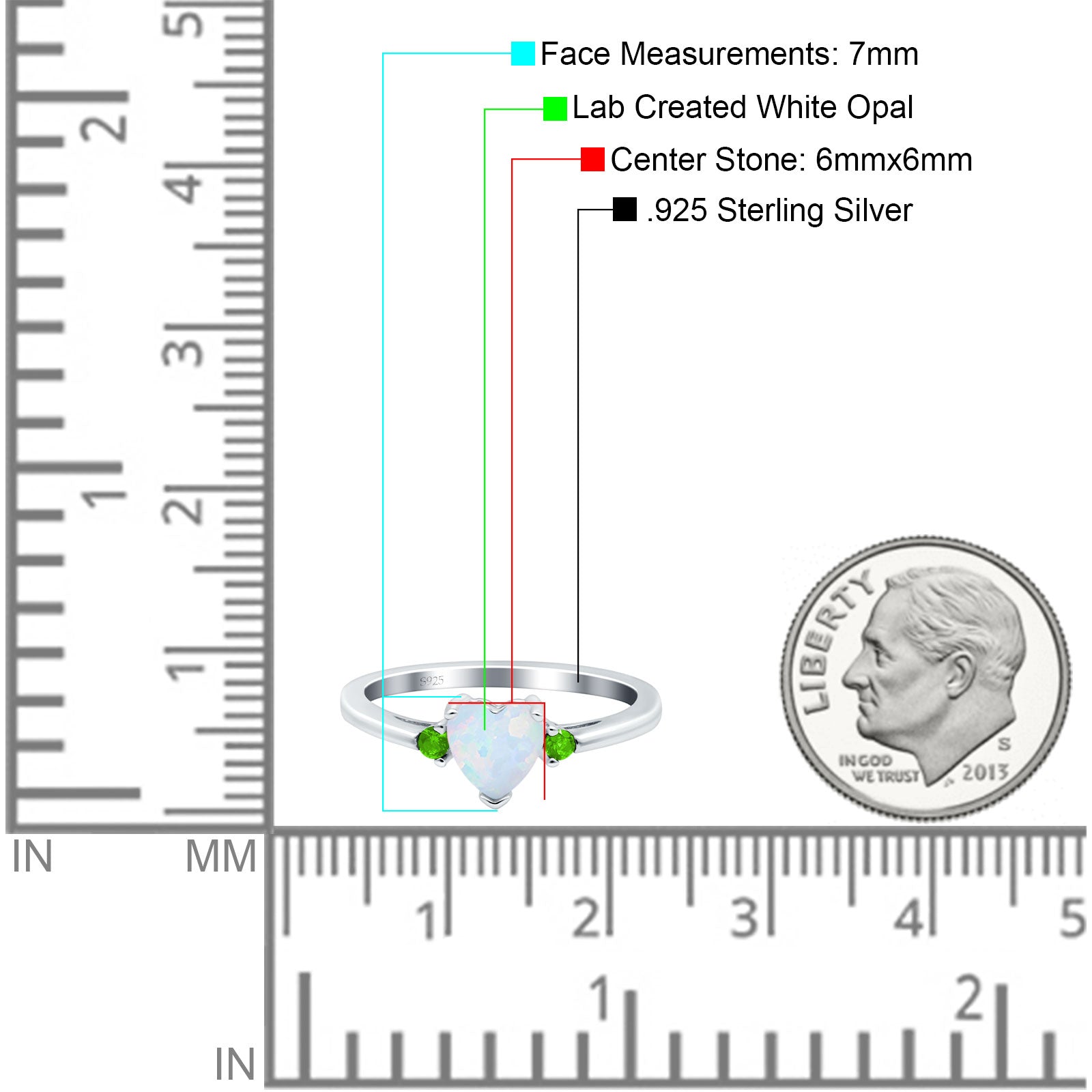 Art Deco Heart Three Stone Wedding Bridal Ring Peridot Simulated Cubic Zirconia 925 Sterling Silver