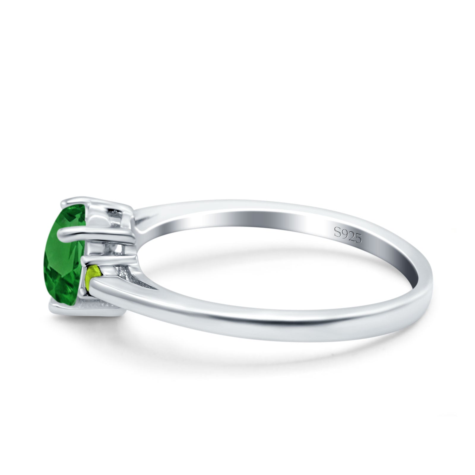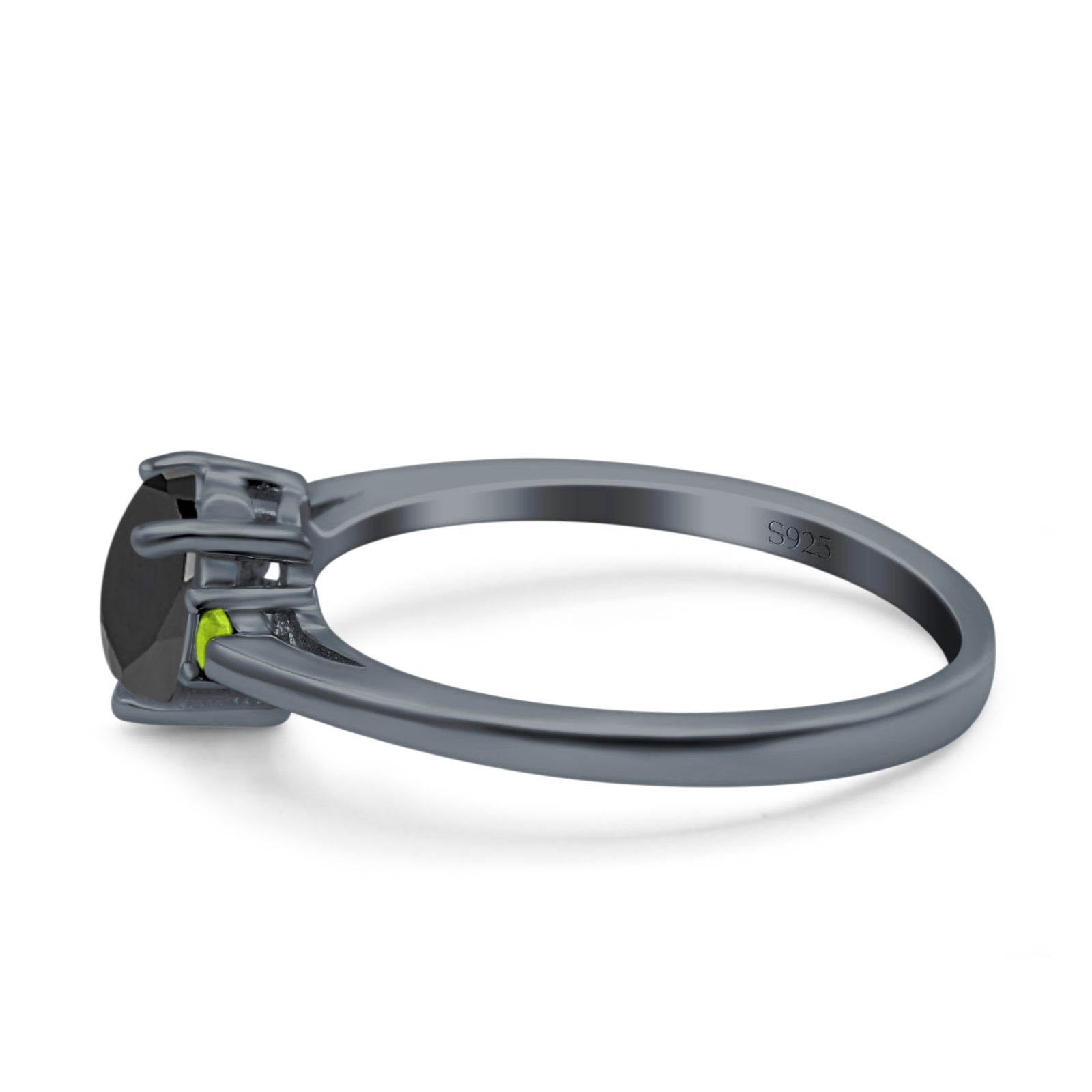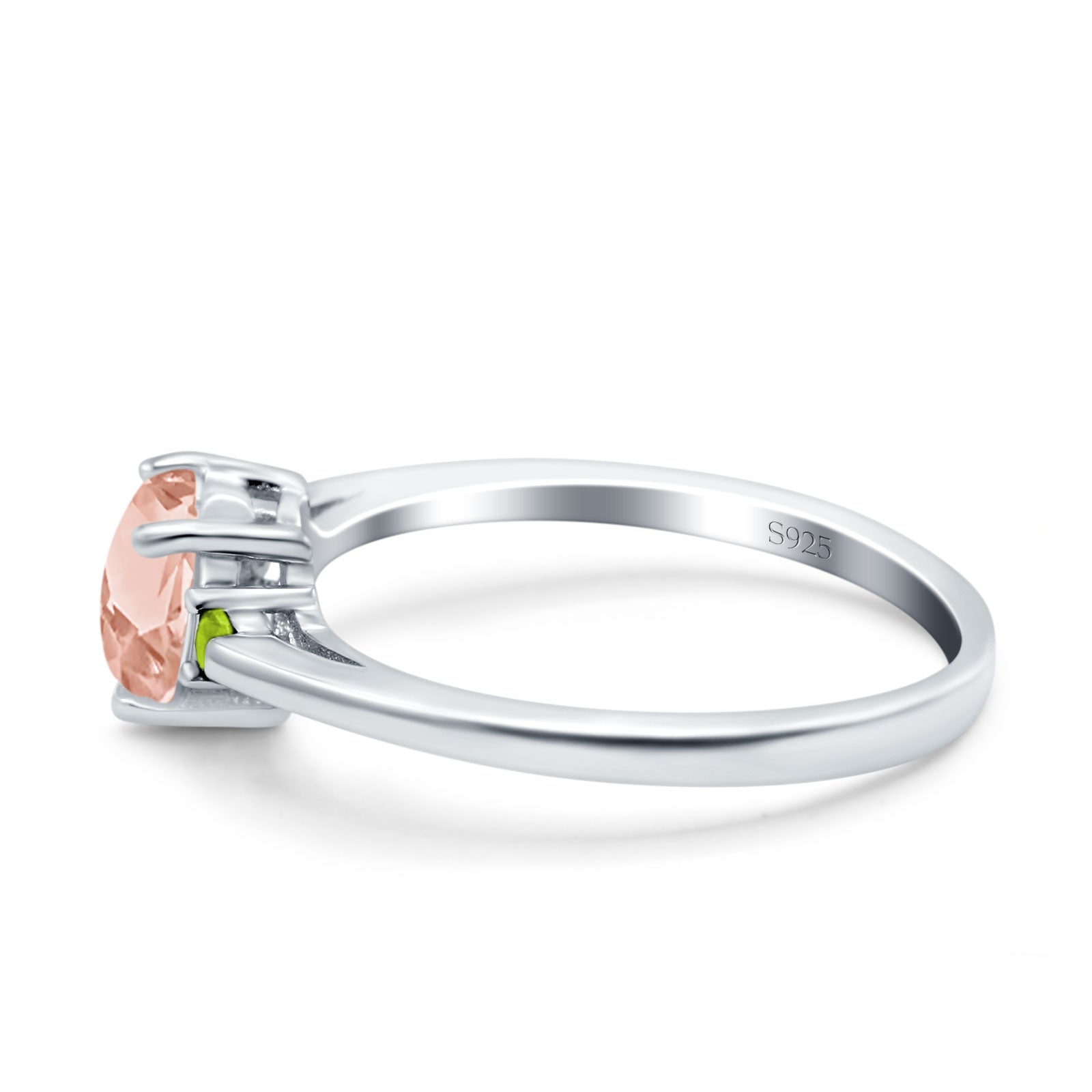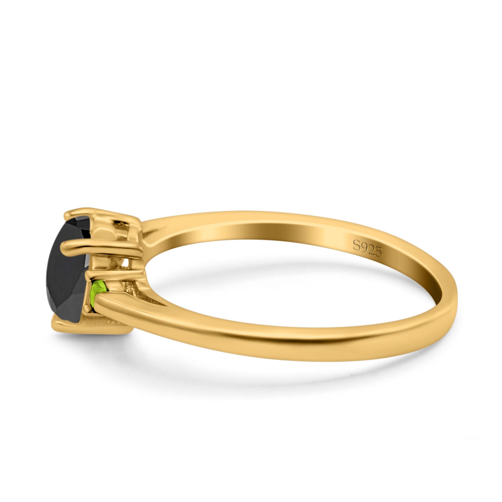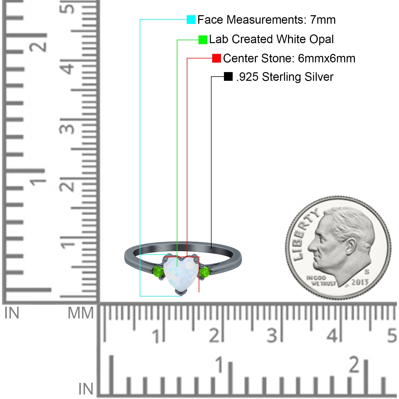 Art Deco Heart Three Stone Wedding Bridal Ring Peridot Simulated Cubic Zirconia 925 Sterling Silver