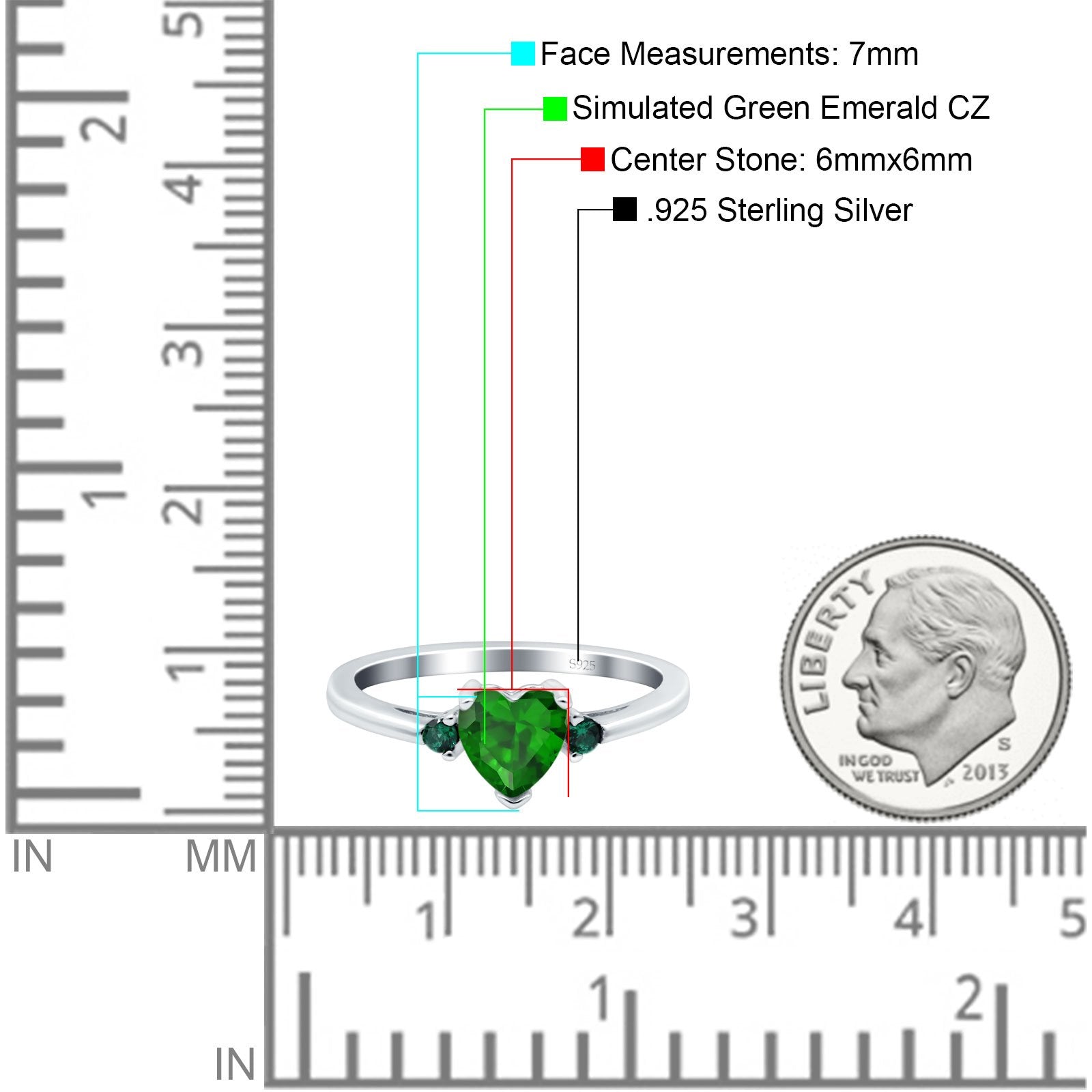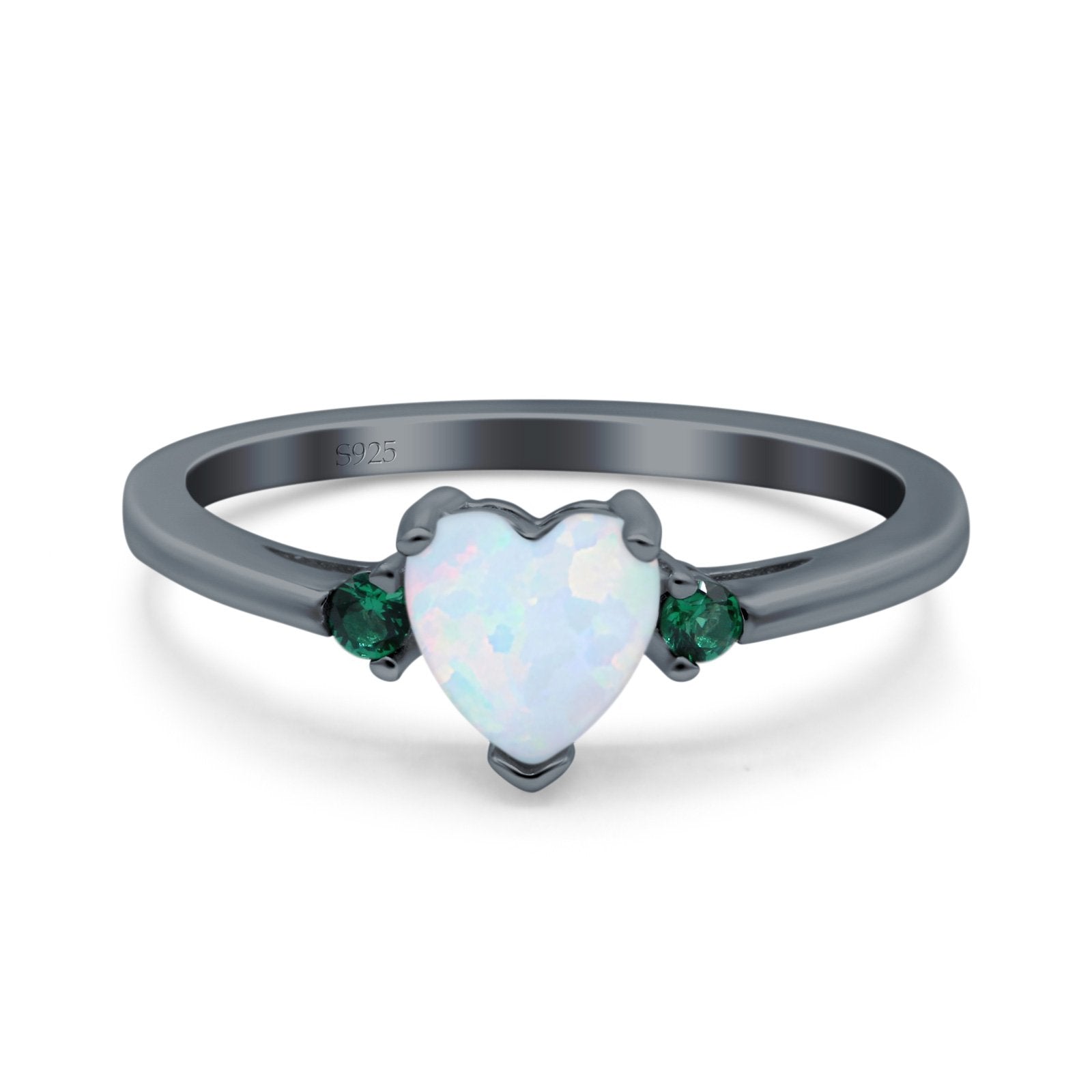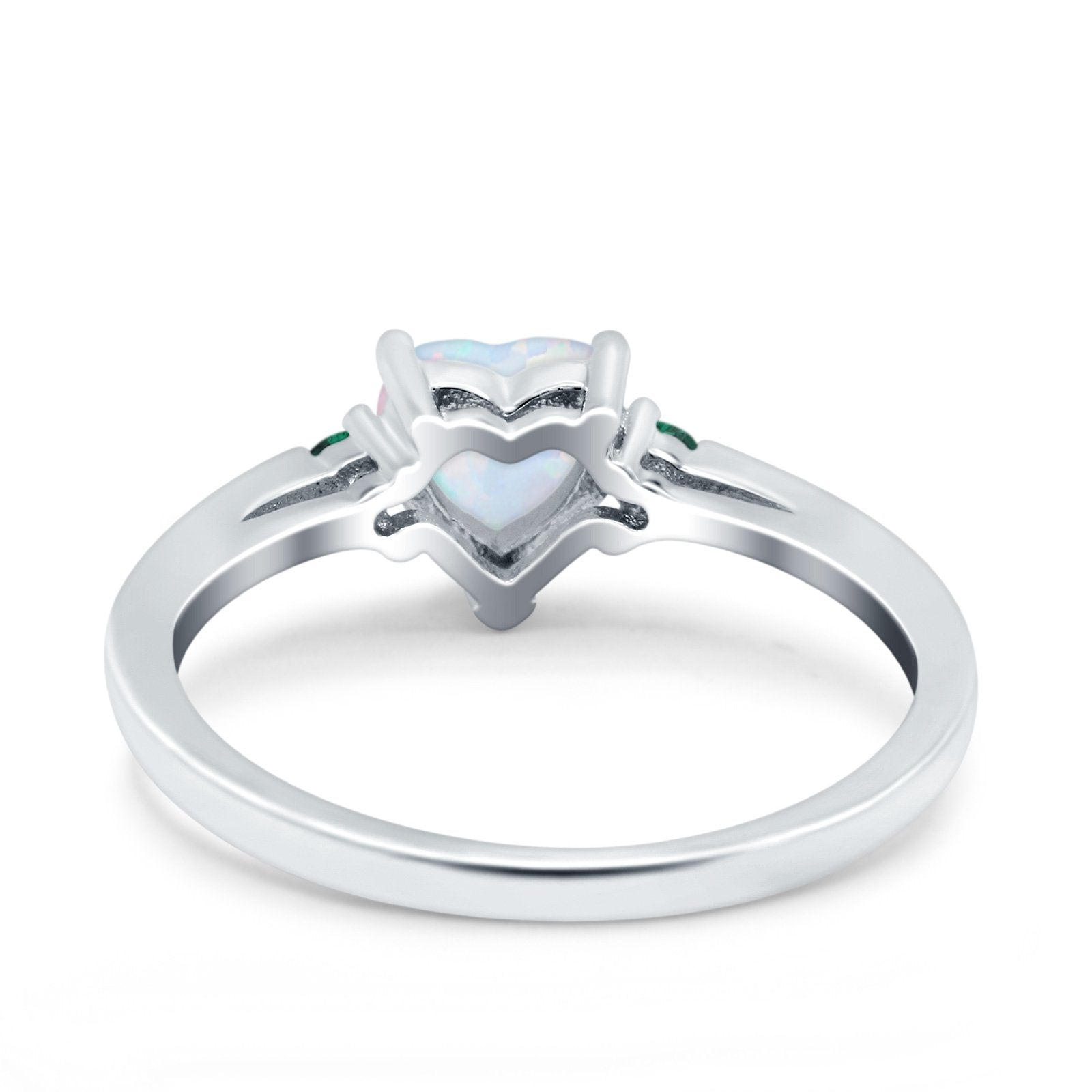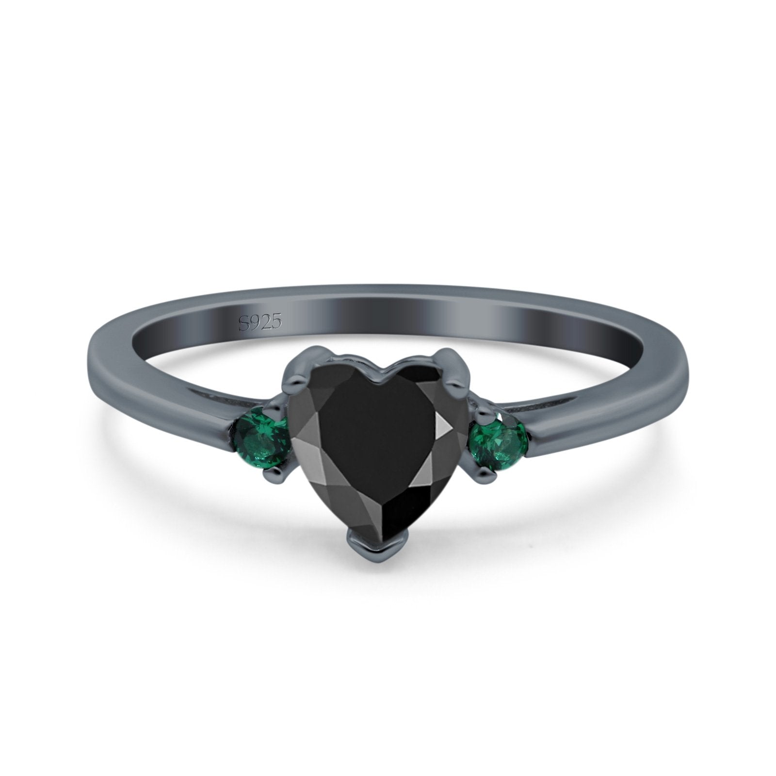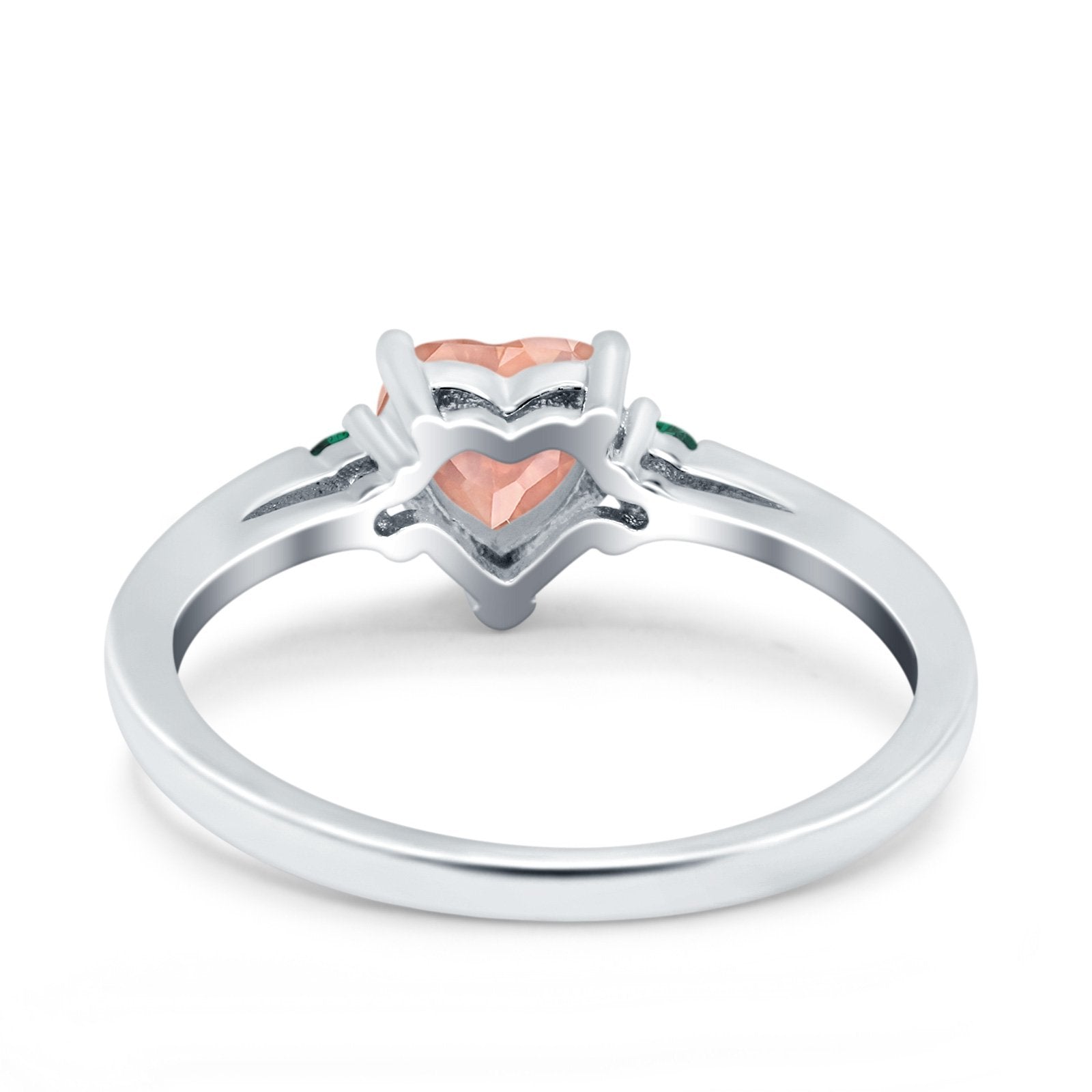 Art Deco Heart Three Stone Wedding Bridal Ring Round Green Emerald Simulated Cubic Zirconia 925 Sterling Silver