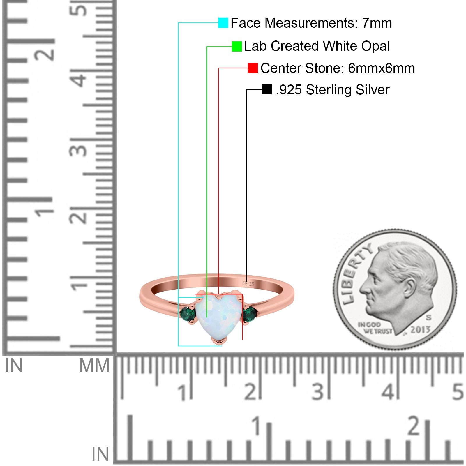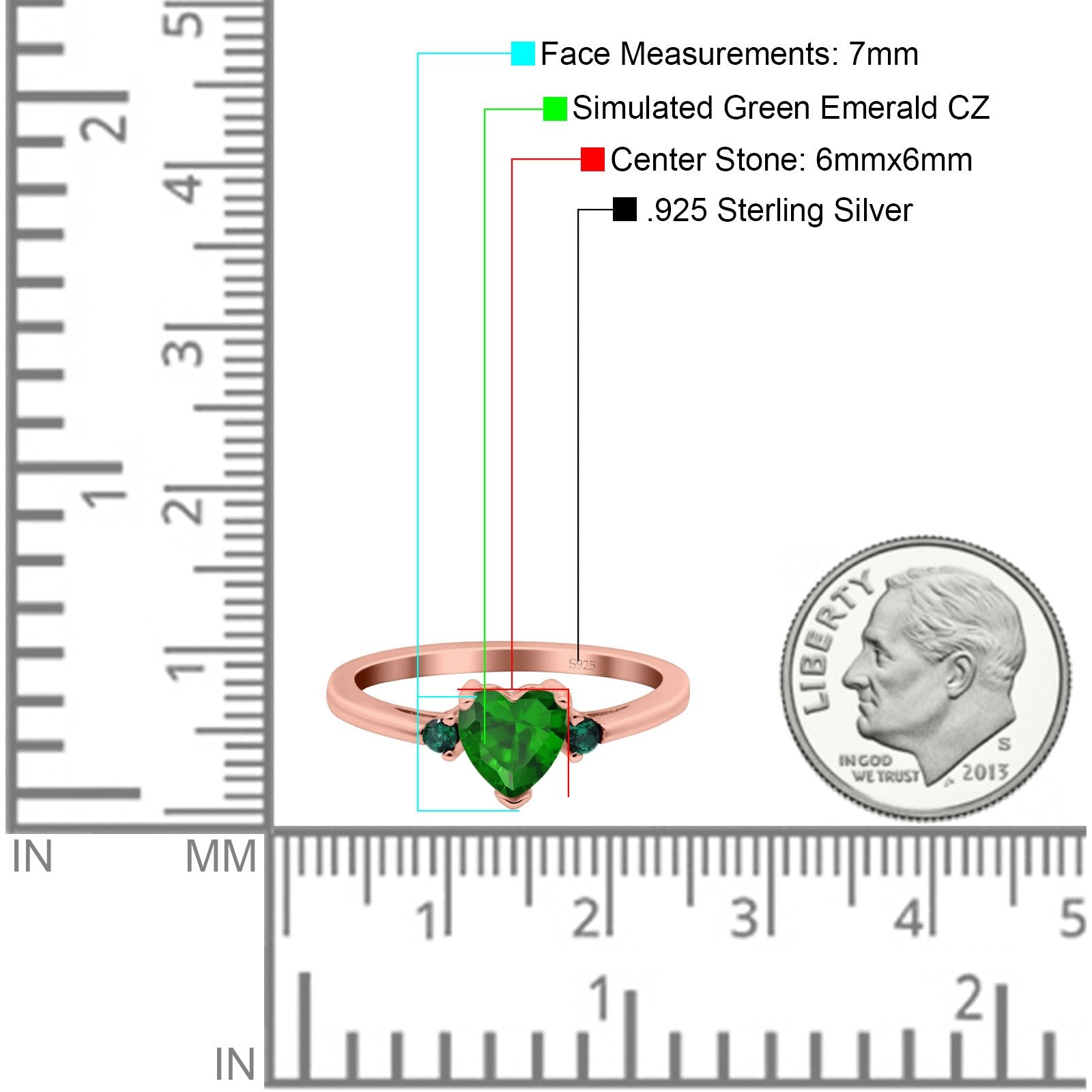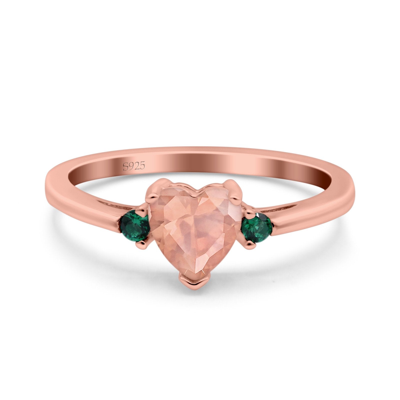 Rose Tone, Simulated Green Emerald CZ